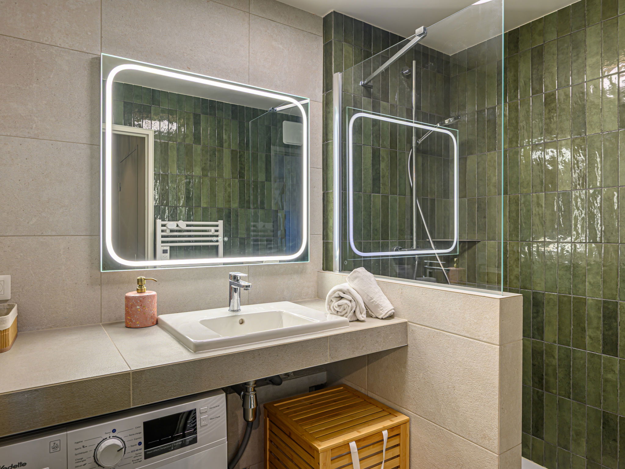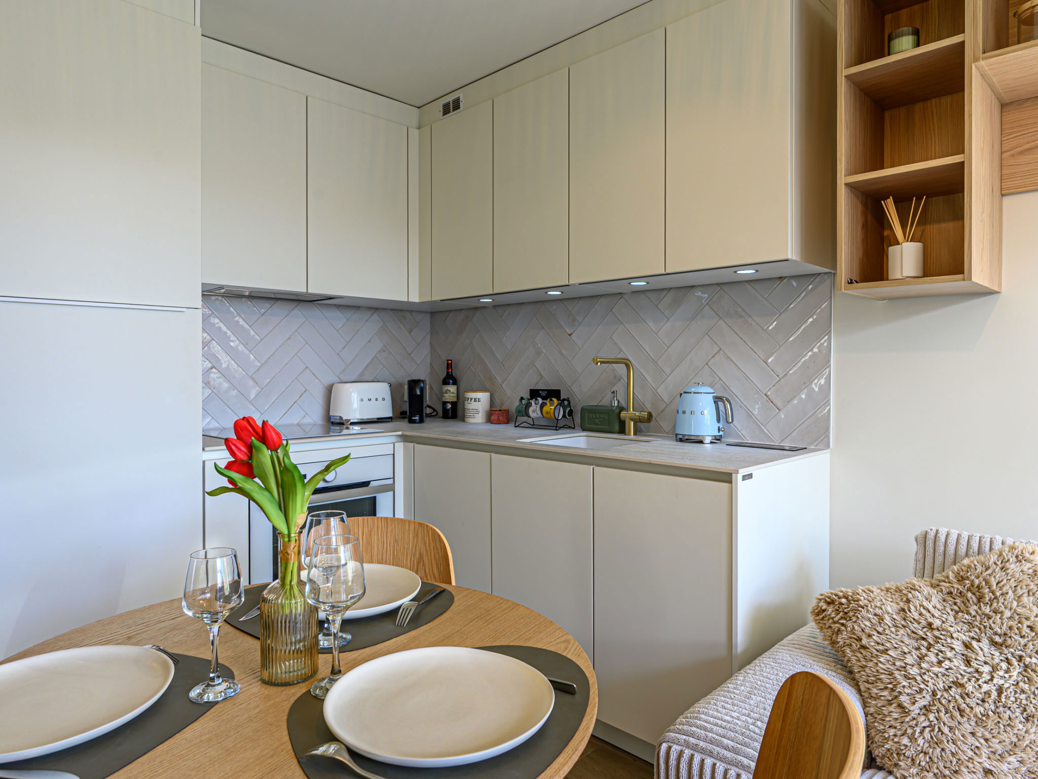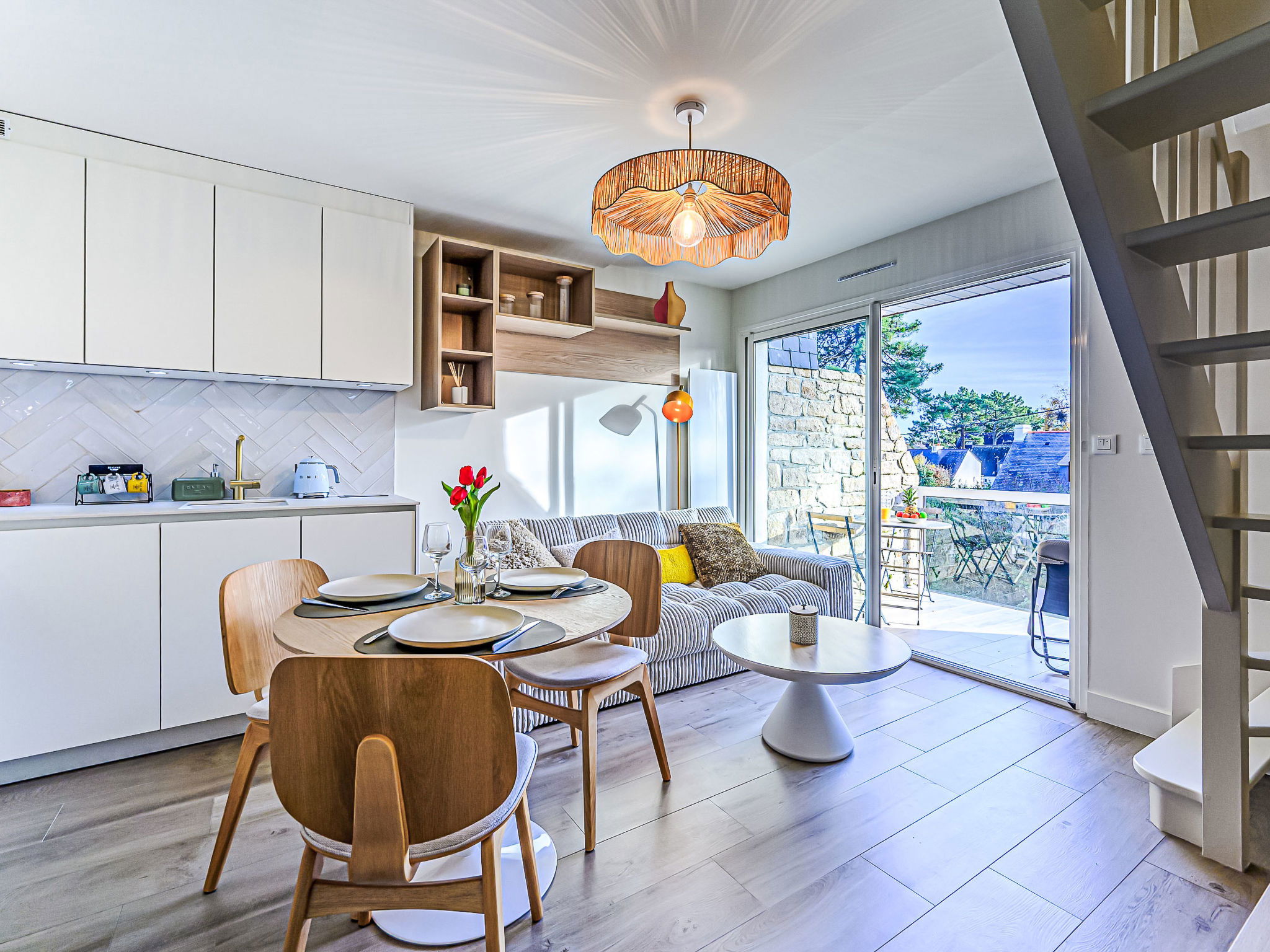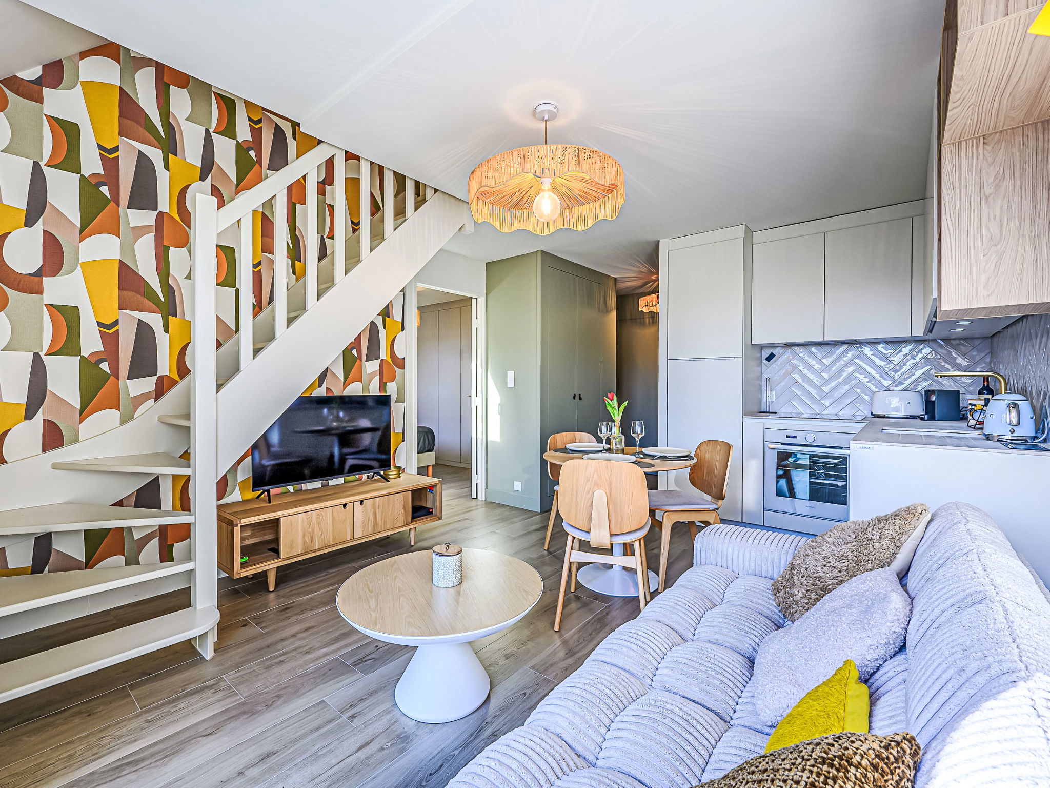 3-room maisonette 33 m2 on 1st floor. Fully renovated in 2025, comfortable furnishings: living/dining room with TV (flat screen). Exit to the balcony. 1 room with 1 french bed (1 x 160 cm, length 200 cm). Kitchenette (3 hot plates, oven, dishwasher, toaster, kettle, electric coffee machine). Shower, sep. WC. Upper floor: 1 room with 2 beds (90 cm, length 190 cm). Balcony 5 m2, south facing position. Balcony furniture. Facilities: washing machine, iron, hair dryer. Internet (WiFi, free). Parking at the house. Please note: non-smokers only. Smoke alarm. Offer by a private individual according to Art. 155, IV of CGI. 56034000937DA