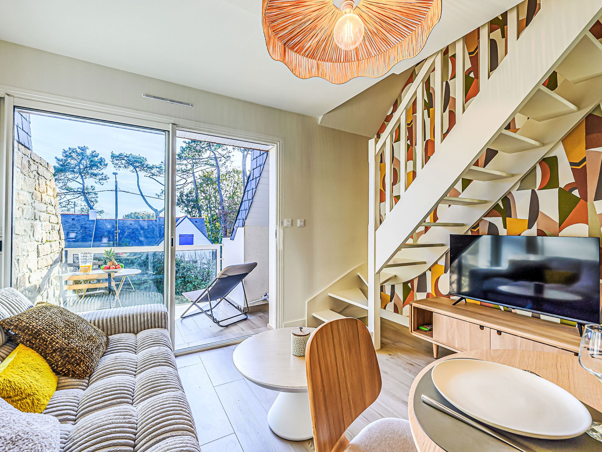Residence "Astrida", 2 storeys. In the resort 1.2 km from the centre of Carnac Plage, in the residential district, 400 m from the sea, 400 m from the beach. In the complex: storage room for bicycles. Shop 800 m, supermarket 300 m, restaurant 600 m, sandy beach "Grande Plage" 400 m, thermal baths "Thalassothérapie Thalazur" 1.5 km. Sports harbour 4 km, golf course (18 hole) 15 km, surf school 8 km, sailing school 1.5 km, tennis 500 m. Nearby attractions: Les Alignements de Carnac 4 km, La Presqu'Ile de Quiberon 12 km, Belle Ile en Mer, Houat et Hoedic, Vannes 35 km, Lorient 55 km. Hiking paths: Le Golfe du Morbihan.