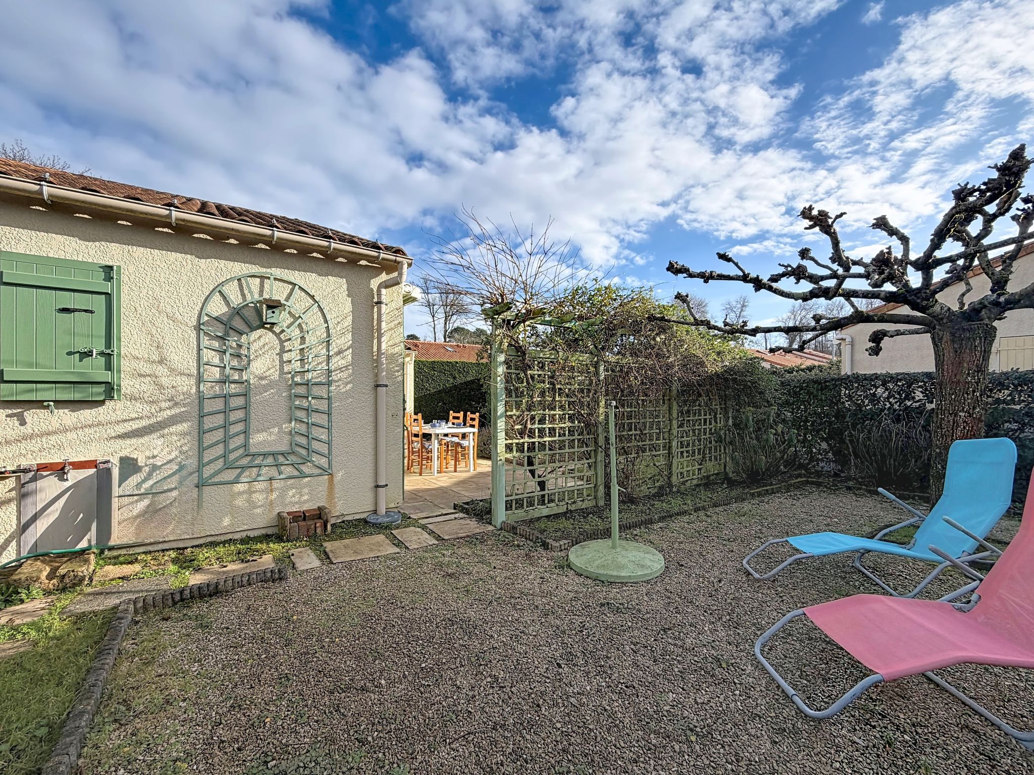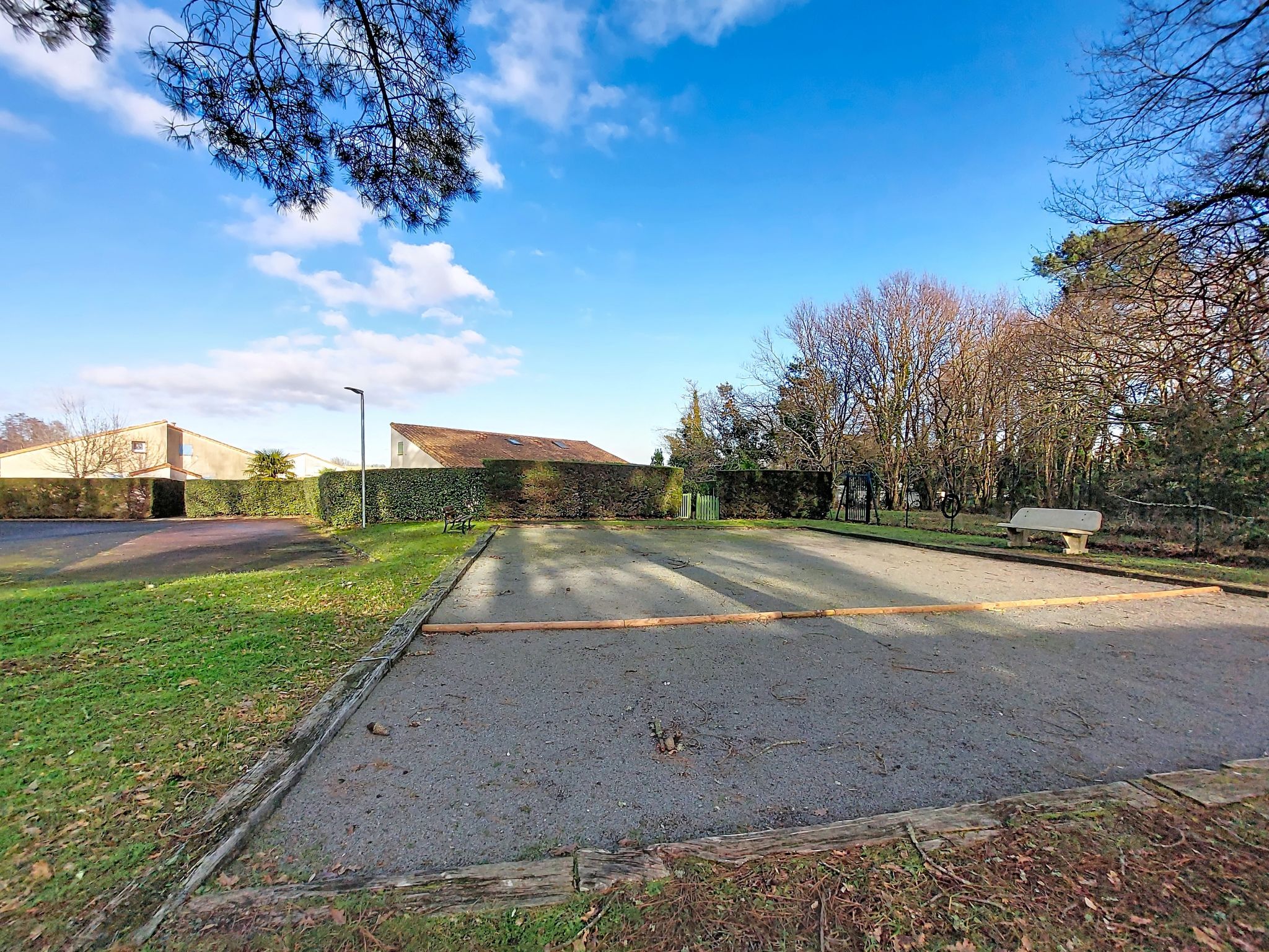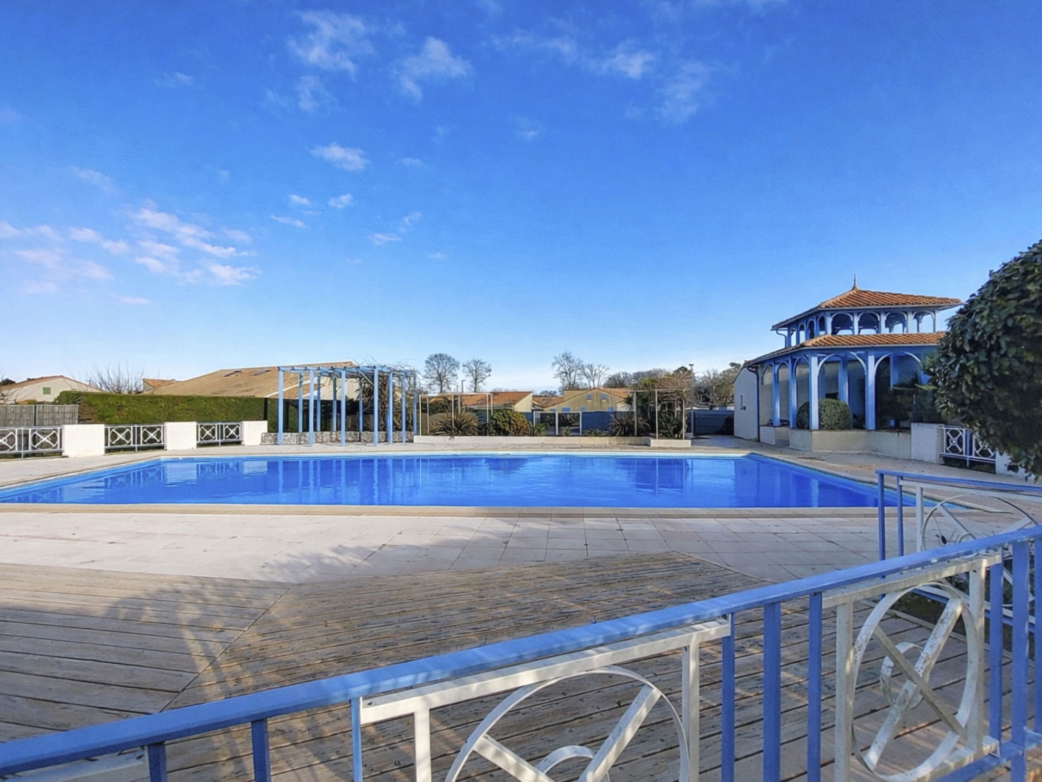 Les Mathes: Large residence "Le Clos des Chênes". 160 houses in the residence. On the outskirts, 1.6 km from the centre of Les Mathes, 4.5 km from the sea, 4.5 km from the beach. For shared use: property, trees, natural pond, swimming pool fenced (seasonal availability: 01.Jul. - 30.Aug.). Tennis, table tennis, boccia, volleyball, children's playground, parking (limited number of spaces). Shop 1.6 km, grocery 1.3 km, supermarket 1.3 km, restaurant 1.6 km, bakery 1.6 km, café 1.6 km, bicycle rental 1.1 km, bus stop "Montsouci" 50 m, railway station "Royan" 19 km, sandy beach "Plage de La Palmyre" 4.5 km, thermal baths "Thalassothérapie Thalazur Royan" 20 km. Sports harbour 4.5 km, golf course (9 hole) 6 km, surf school 3.5 km, riding stable 1.5 km, cycle lane 50 m. Nearby attractions: Centre Poney Découverte 300 m, Karting Les Mathes 1 km, Parc attractions LunaPark (Juillet-Août) 1.5 km, Zagal Cabaret équestre 1.5 km, Hippodrome Royan Atlantique - La Palmyre 4 km, Zoo de La Palmyre 4.5 km. The keys‘ handover takes place by the agency in La Palmyre, 4 km.