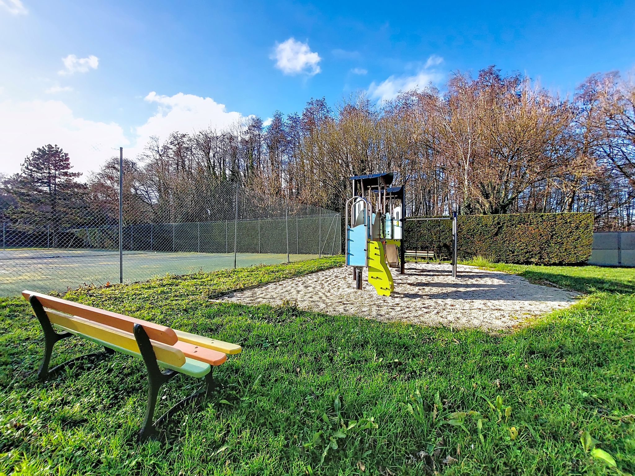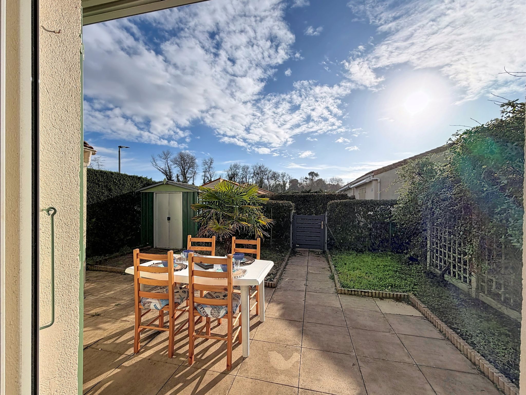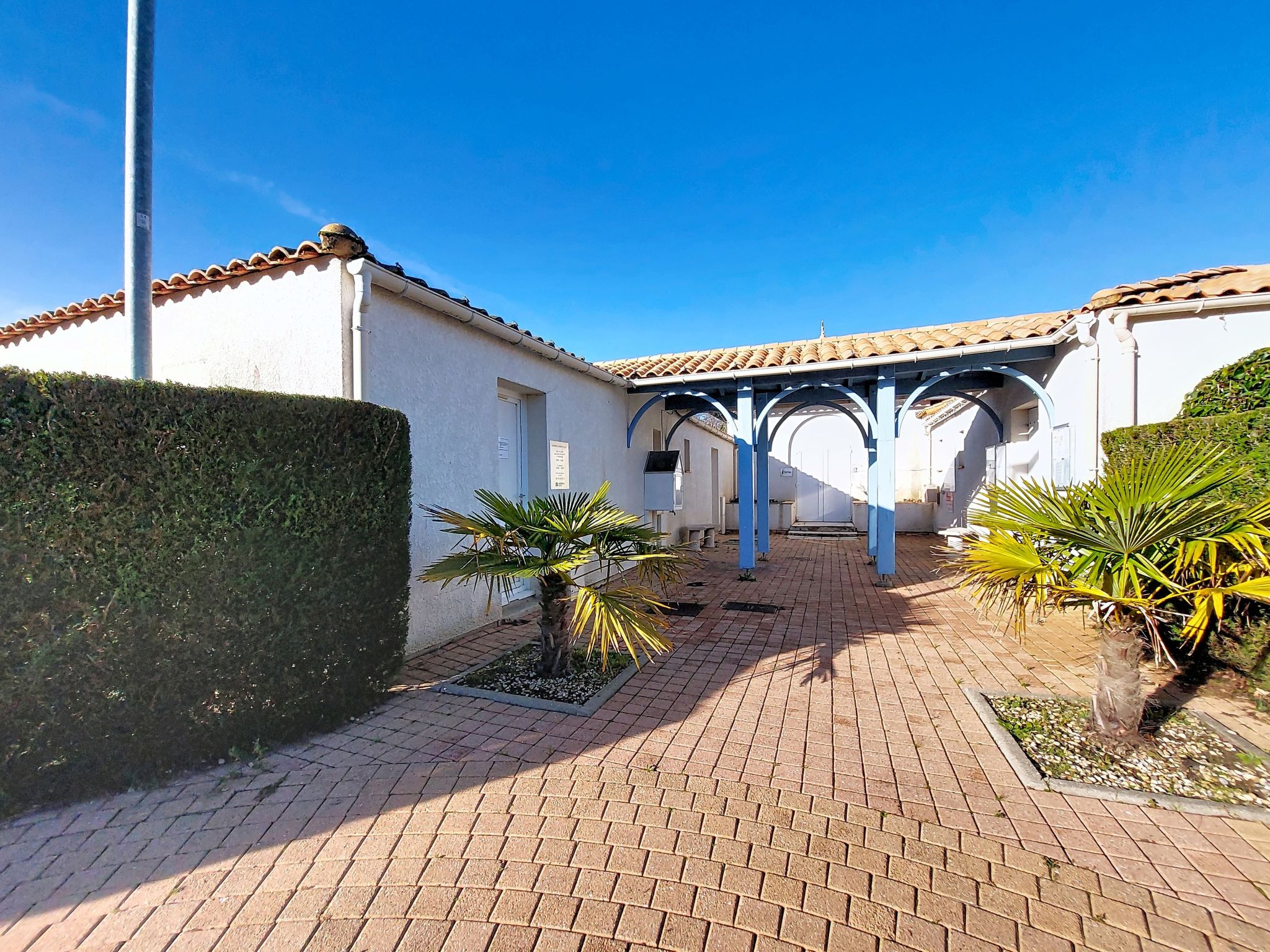 Les Mathes: Large residence "Le Clos des Chênes". 160 houses in the residence. On the outskirts, 1.6 km from the centre of Les Mathes, 4.5 km from the sea, 4.5 km from the beach. For shared use: property, trees, natural pond, swimming pool fenced (seasonal availability: 01.Jul. - 30.Aug.). Tennis, table tennis, boccia, volleyball, children's playground, parking (limited number of spaces). Shop 1.6 km, grocery 1.3 km, supermarket 1.3 km, restaurant 1.6 km, bakery 1.6 km, café 1.6 km, bicycle rental 1.1 km, bus stop "Montsouci" 50 m, railway station "Royan" 19 km, sandy beach "Plage de La Palmyre" 4.5 km, thermal baths "Thalassothérapie Thalazur Royan" 20 km. Sports harbour 4.5 km, golf course (9 hole) 6 km, surf school 3.5 km, riding stable 1.5 km, cycle lane 50 m. Nearby attractions: Centre Poney Découverte 300 m, Karting Les Mathes 1 km, Parc attractions LunaPark (Juillet-Août) 1.5 km, Zagal Cabaret équestre 1.5 km, Hippodrome Royan Atlantique - La Palmyre 4 km, Zoo de La Palmyre 4.5 km. The keys‘ handover takes place by the agency in La Palmyre, 4 km.