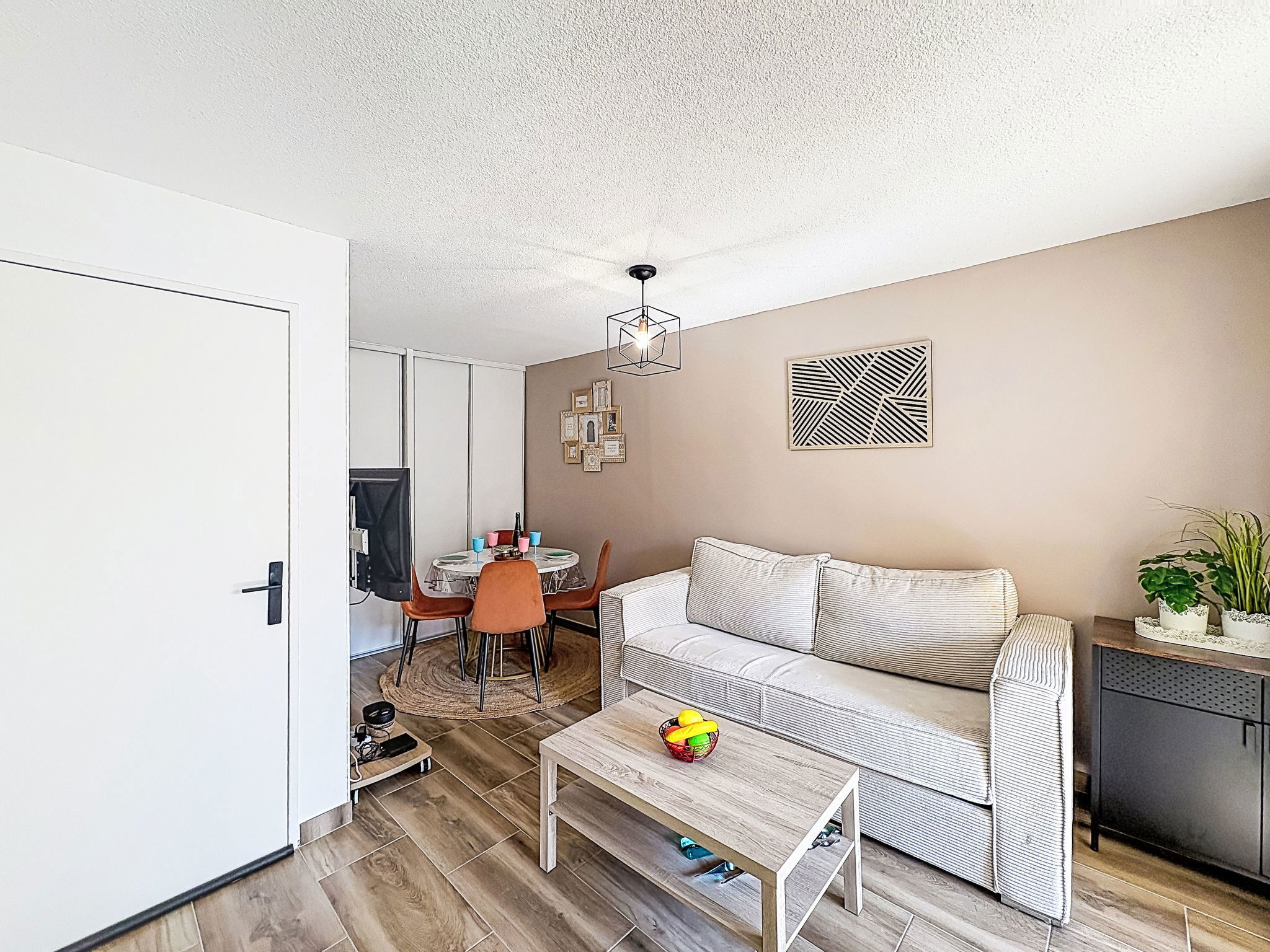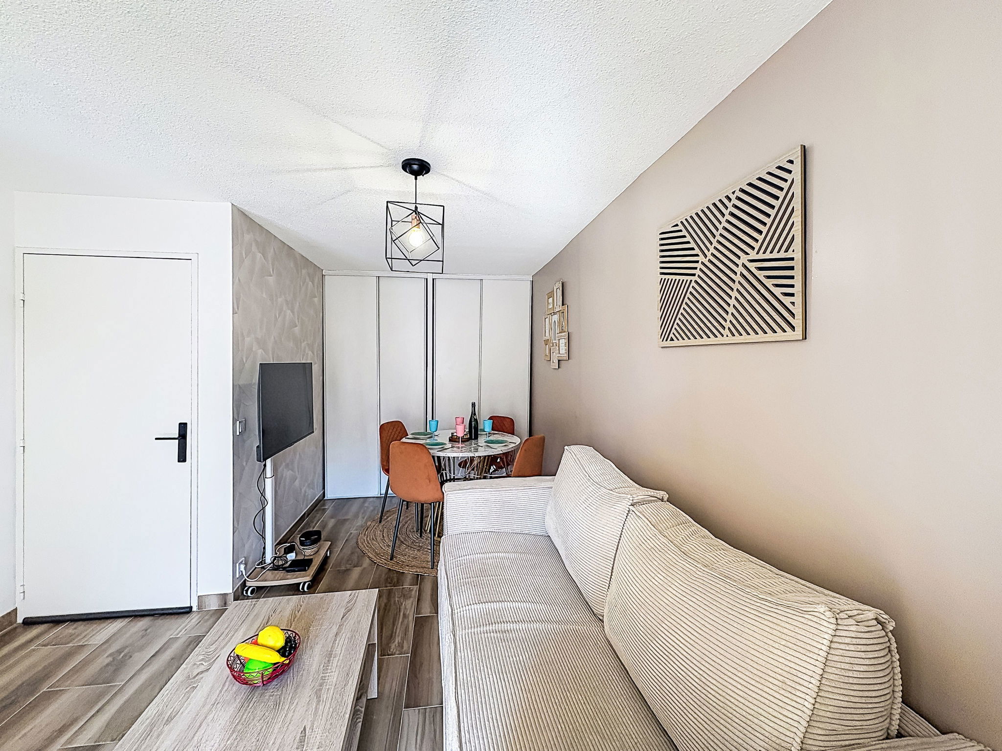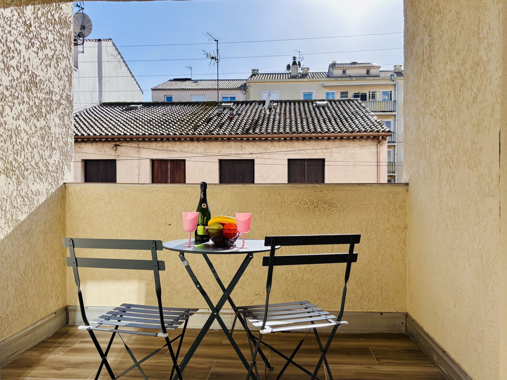 2-room apartment 35 m2 on 1st floor. Fully renovated in 2026, tasteful furnishings: living/dining room with 1 double sofabed (1 x 140 cm, length 190 cm), TV (flat screen), fan. Exit to the balcony. 1 room with 1 double sofabed (1 x 140 cm, length 190 cm), fan. Kitchenette (oven, 2 ceramic glass hob hotplates, kettle, microwave, freezer, electric coffee machine, Capsules for coffee machine (BOSH) extra). Shower, sep. WC. Heating. Balcony 5 m2. Facilities: washing machine, iron, hair dryer. Internet (WiFi, free). Parking space n 32. Please note: non-smokers only. TV only FR. Smoke alarm. Offer by a private individual according to Art. 155, IV of CGI.