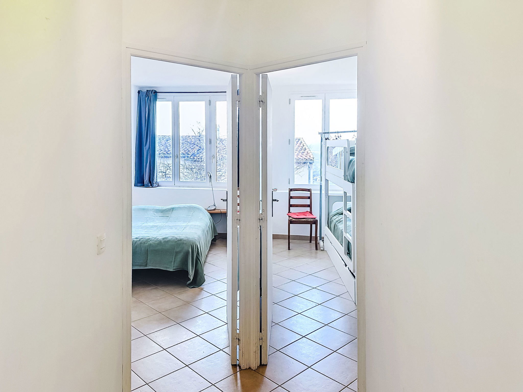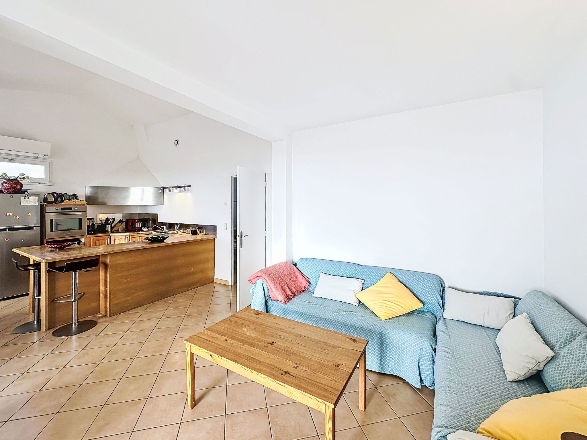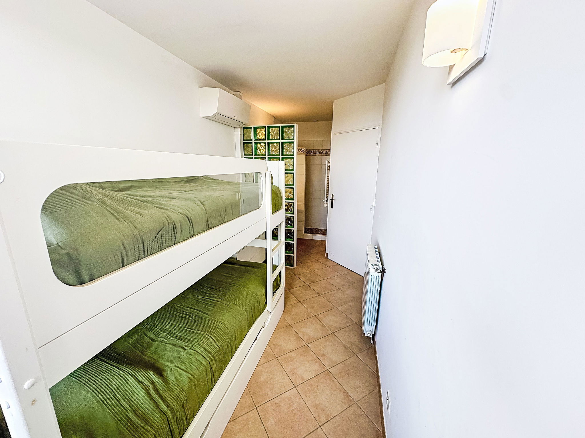 4-room house 110 m2 on 3 levels. Spacious and bright, comfortable furnishings: entrance hall. On the lower ground floor: 1 room with 1 french bed (140 cm, length 190 cm), shower. 1 room with 1 x 2 bunk beds (80 cm, length 190 cm), shower and air conditioning. Sep. WC. Upper floor: living room with veranda with TV (flat screen), air conditioning. Exit to the balcony. 1 room with 1 french bed (140 cm, length 190 cm), fan. Open kitchen (oven, dishwasher, 4 ceramic glass hob hotplates, toaster, kettle, microwave, freezer, electric coffee machine) with dining table. Bath/WC, double hand-basin. Balcony 10 m2, south-east facing position. Side view of the sea. Facilities: washing machine, iron, hair dryer. Internet (WiFi, free). Please note: not suitable for small children. Non-smoking house, no parking. Maximum 1 small pet/ dog allowed. Smoke alarm. Offer by a private individual according to Art. 155, IV of CGI. 83019001520KN