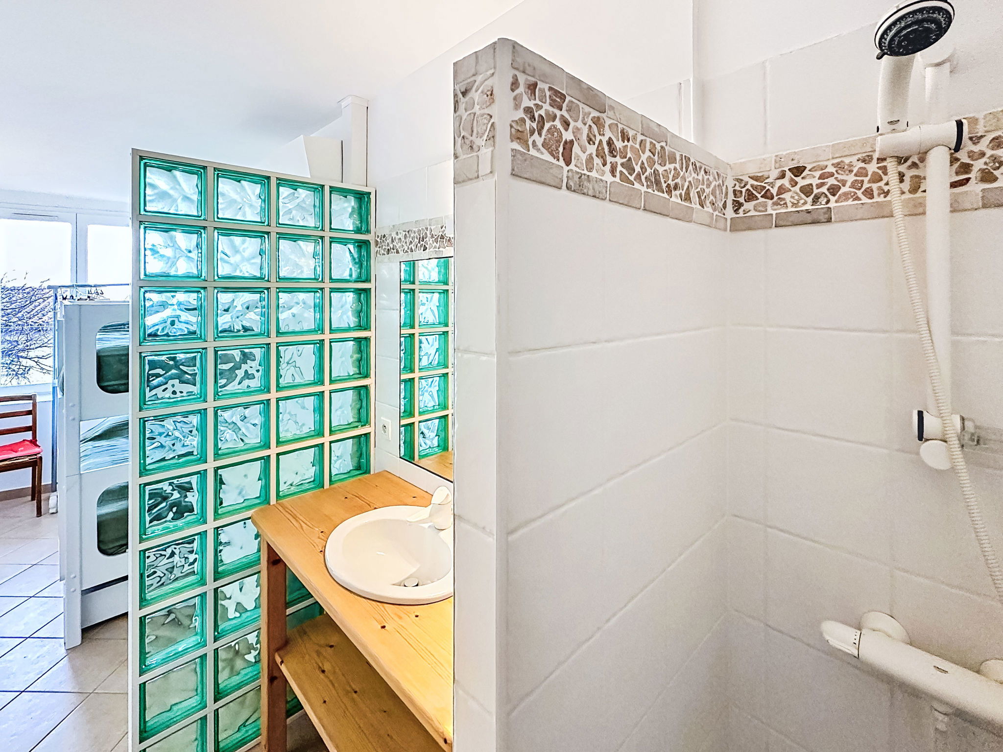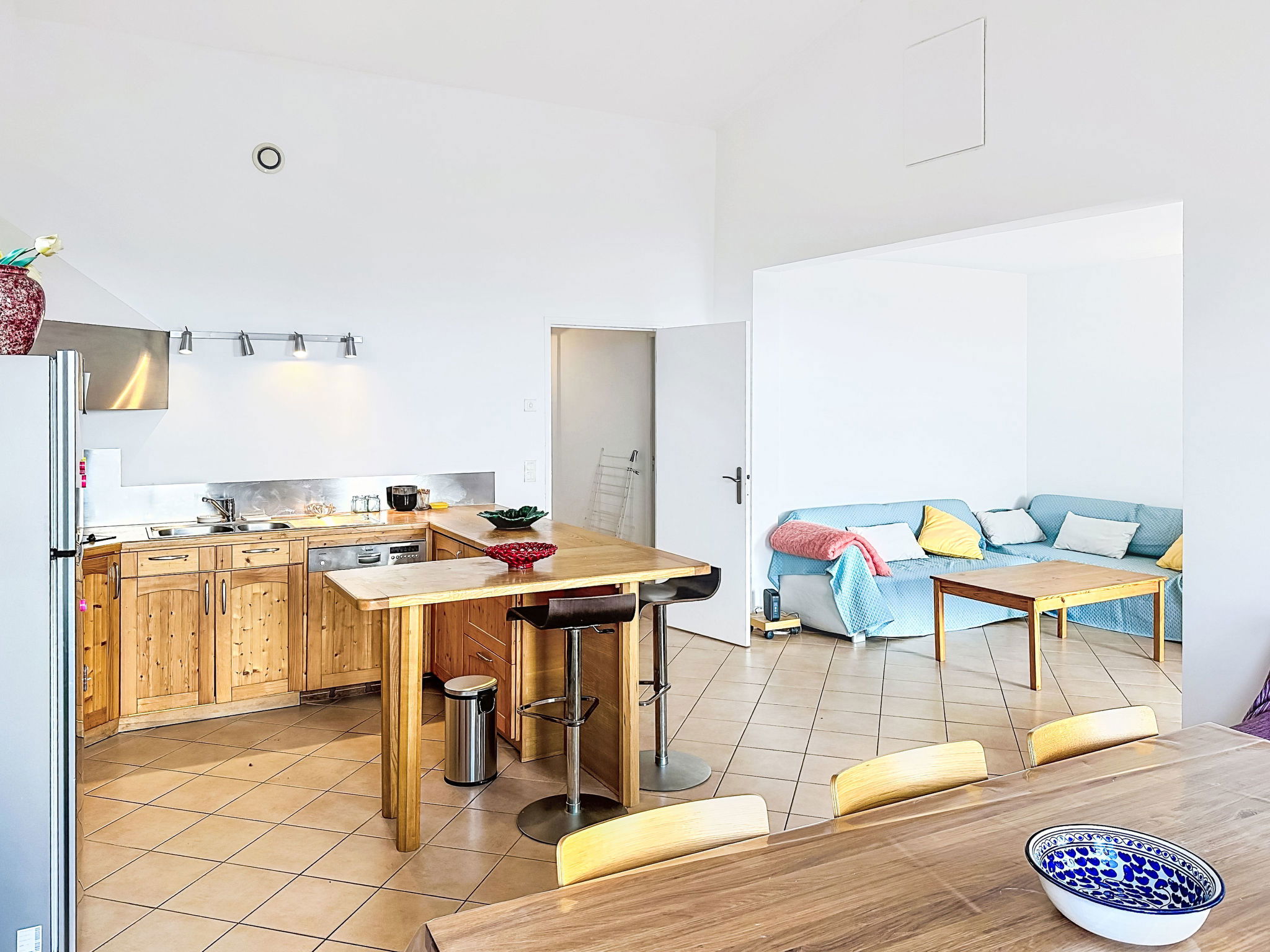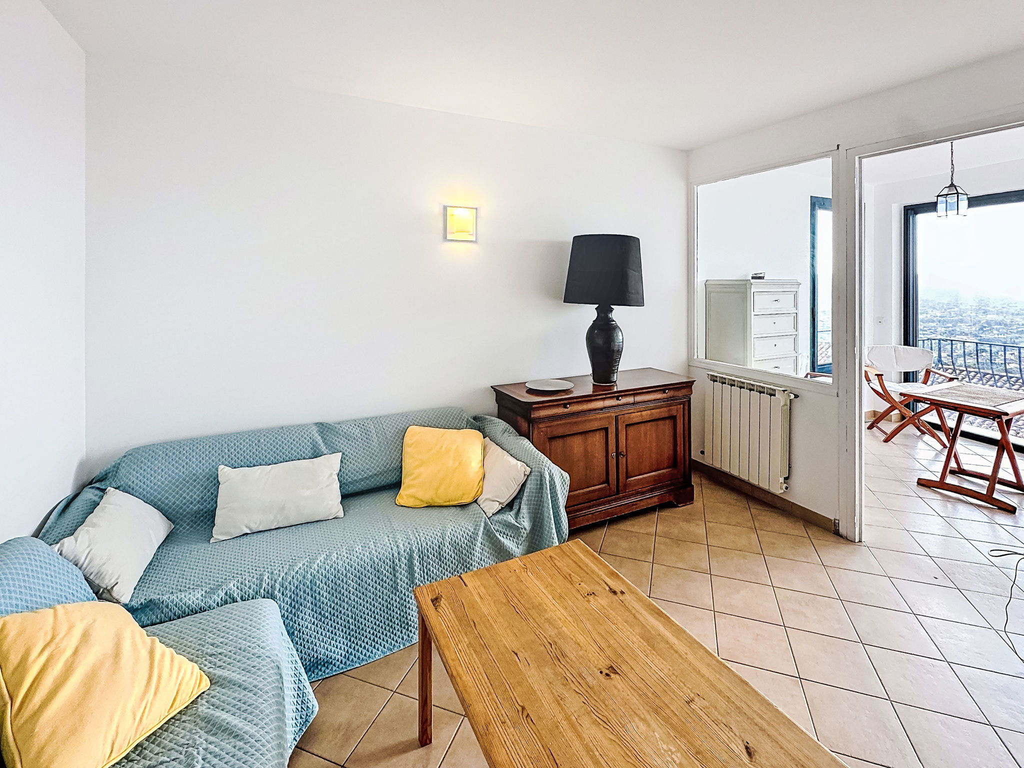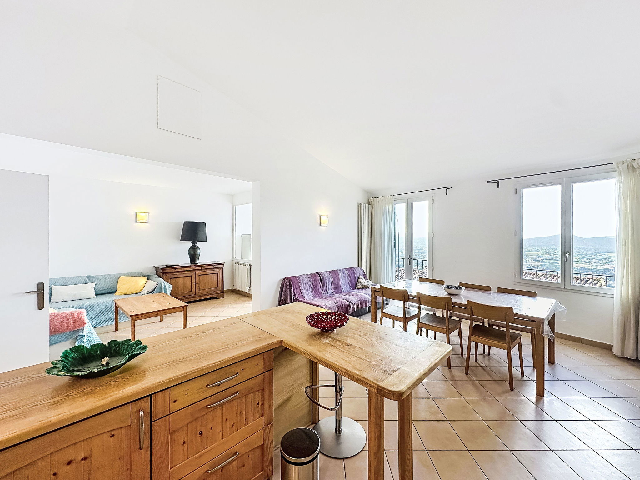 4-room house 110 m2 on 3 levels. Spacious and bright, comfortable furnishings: entrance hall. On the lower ground floor: 1 room with 1 french bed (140 cm, length 190 cm), shower. 1 room with 1 x 2 bunk beds (80 cm, length 190 cm), shower and air conditioning. Sep. WC. Upper floor: living room with veranda with TV (flat screen), air conditioning. Exit to the balcony. 1 room with 1 french bed (140 cm, length 190 cm), fan. Open kitchen (oven, dishwasher, 4 ceramic glass hob hotplates, toaster, kettle, microwave, freezer, electric coffee machine) with dining table. Bath/WC, double hand-basin. Balcony 10 m2, south-east facing position. Side view of the sea. Facilities: washing machine, iron, hair dryer. Internet (WiFi, free). Please note: not suitable for small children. Non-smoking house, no parking. Maximum 1 small pet/ dog allowed. Smoke alarm. Offer by a private individual according to Art. 155, IV of CGI. 83019001520KN