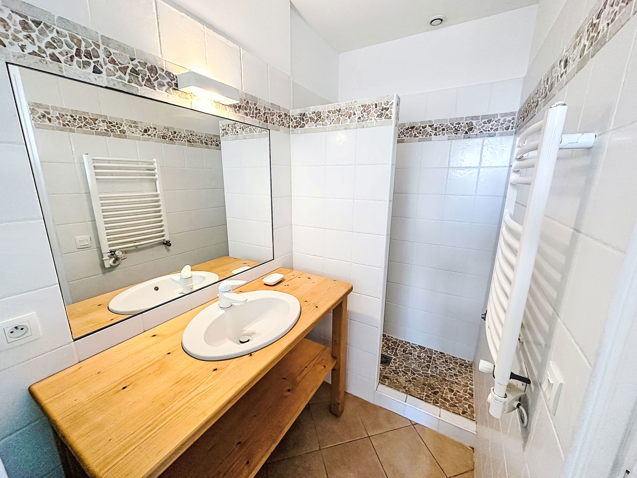House "Les Amandiers", 2 storeys. In the centre of Village de Bormes, in a quiet position on top of a hill, 5 km from the sea, 5 km from the beach, in a pedestrian area, south-east facing position. Narrow motor access. Public parking. Shop 250 m, grocery 1.5 km, supermarket 4 km, restaurant, bar, bakery 250 m, bus stop "Le Pin" 2 km, sandy beach "du Lavandou" 5 km. Sports harbour 7 km. Nearby attractions: Saint Tropez 35 km, Magic World 25 km, Parc Olbius Riquier 20 km, Le Jardin des Méditerranées 18 km. Hiking paths: Sentiers du Littoral. Please note: car recommended. Not suitable for small children. The owner does not accept any groups. The keys‘ handover takes place by the agency in Le Lavandou, 5 km.
