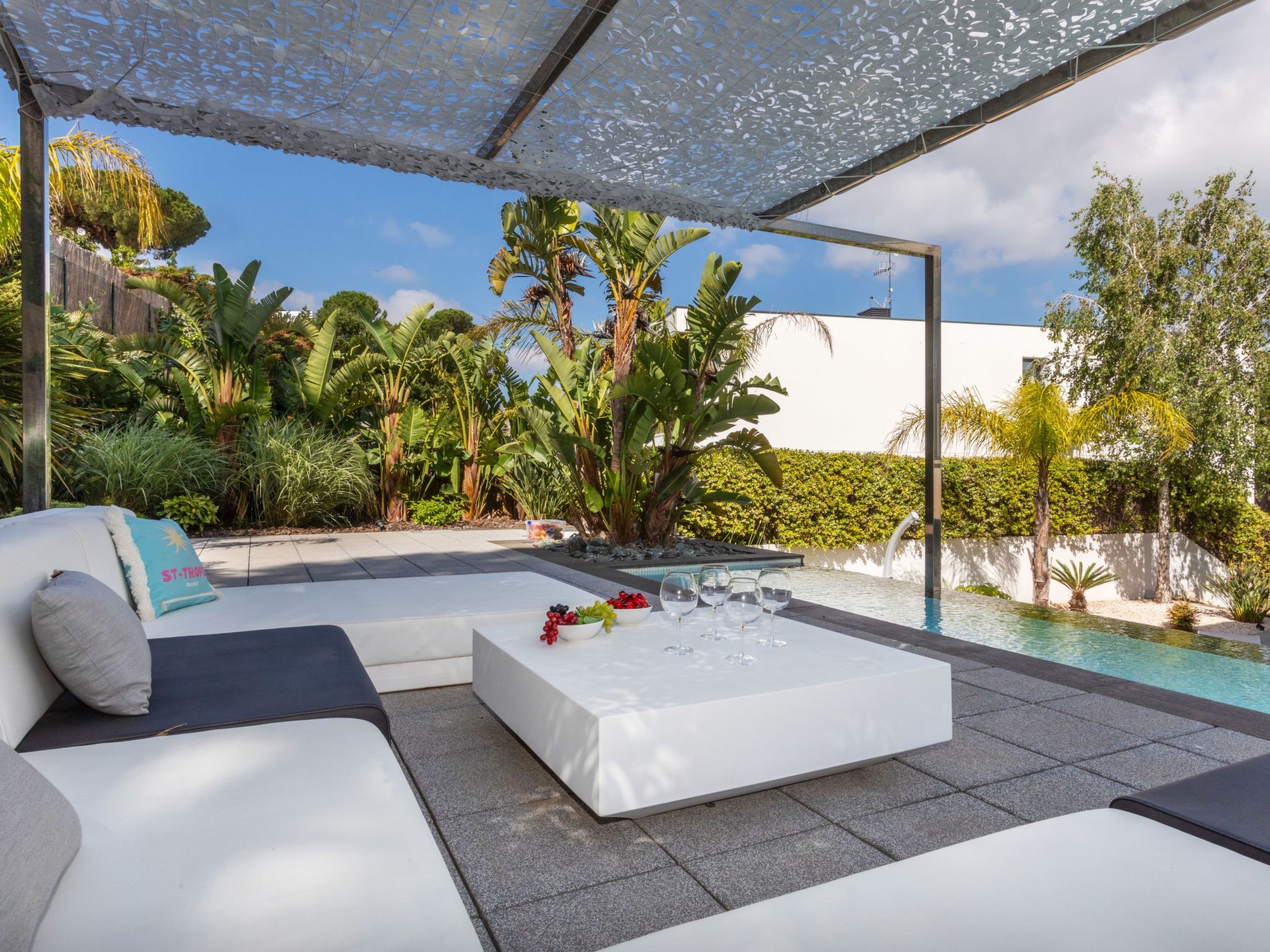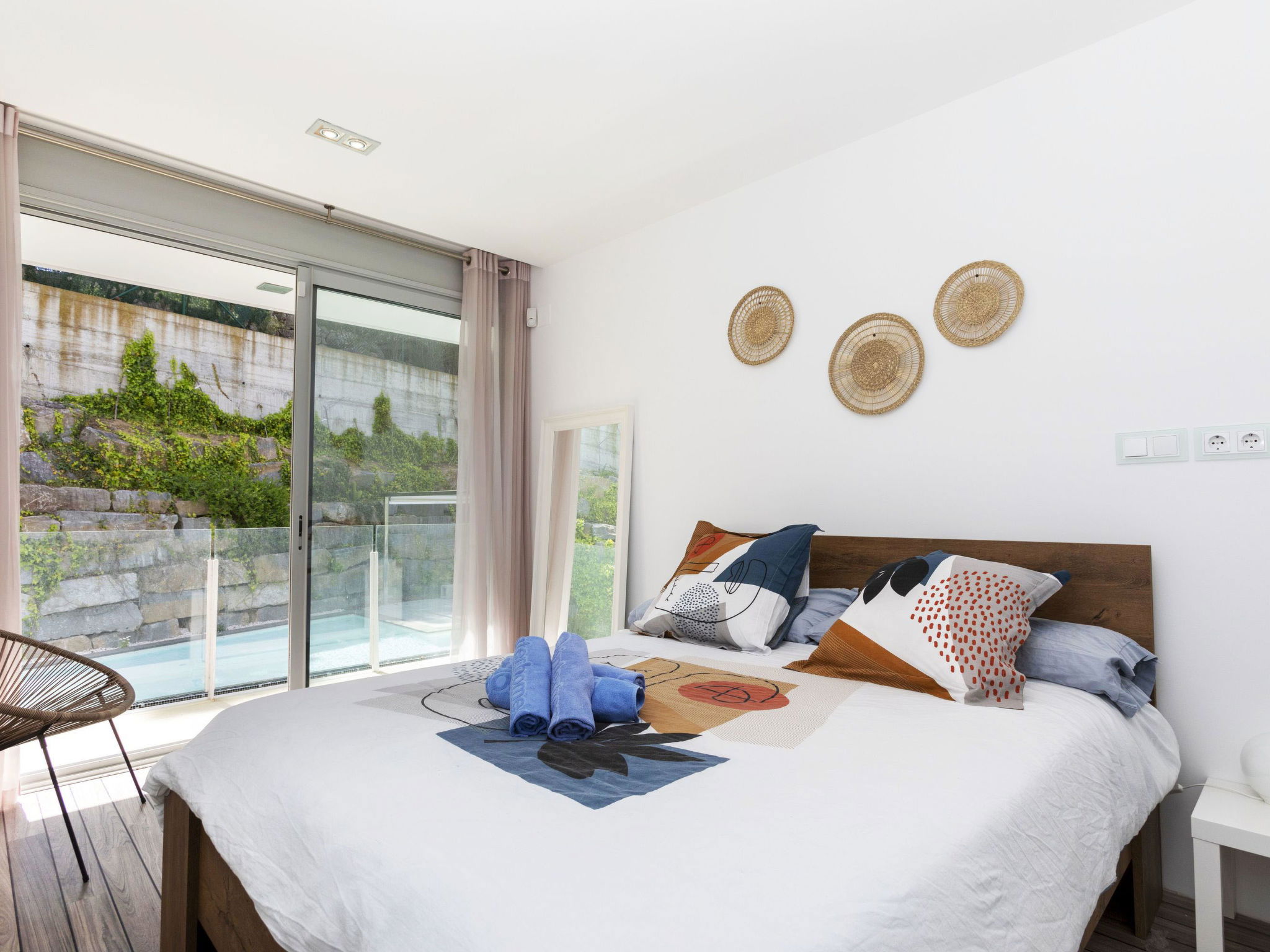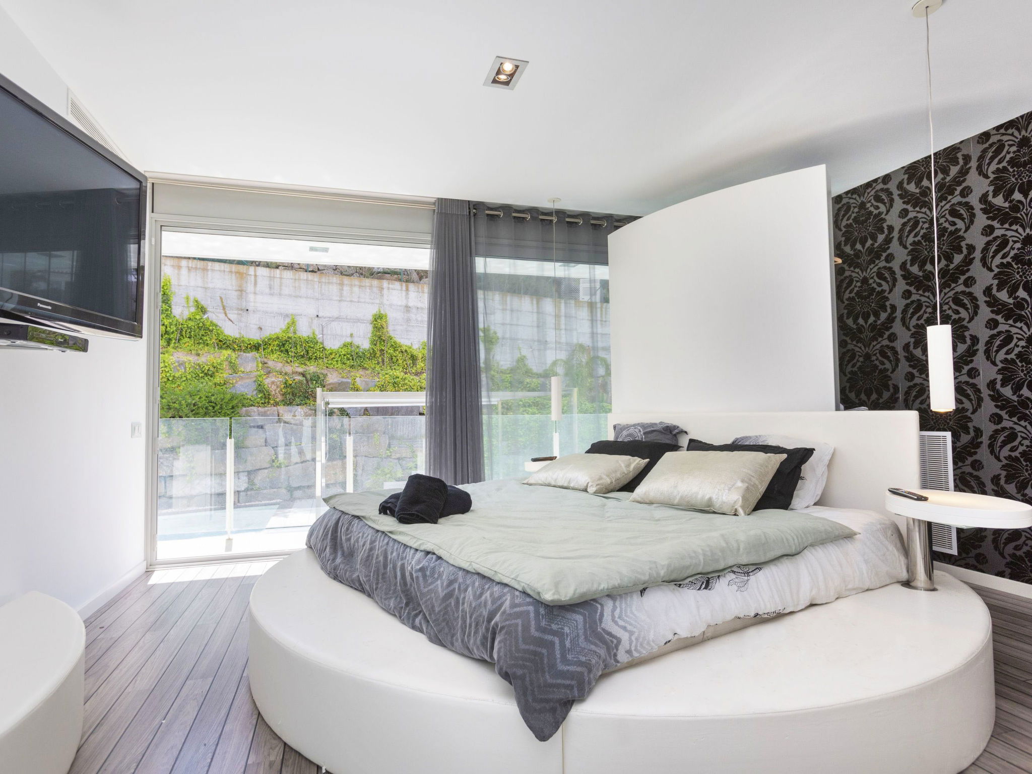 "Nathalie", 5-room villa 450 m2 on 3 levels. Modern and tasteful furnishings: upper floor: living/dining room, on 2 levels with satellite TV and air conditioning. Exit to the terrace. 1 room with 1 french bed (160 cm, length 200 cm), satellite TV. Exit to the terrace. Large, open kitchen (dishwasher, 2 ceramic glass hob hotplates, toaster, kettle, microwave, freezer, cooking island). Exit to the terrace, to the swimming pool. Shower/WC. 2nd upper floor: 1 room with 1 french bed (200 cm, length 200 cm), shower/WC and double hand-basin. 1 room with 1 french bed (160 cm, length 200 cm). 1 room with 2 beds (90 cm, length 190 cm). Shower/WC, double hand-basin. No heating option. 2 terraces. Terrace furniture, barbecue, deck chairs (8). View of the countryside. Facilities: washing machine, dryer, iron, children's high chair, baby cot, hair dryer. Internet (WiFi, free). Garage (2 cars). Please note: non-smoking house. TV only ES, FR, EN. HUTG-061954-83