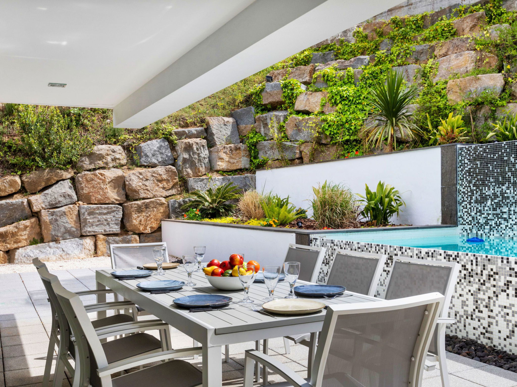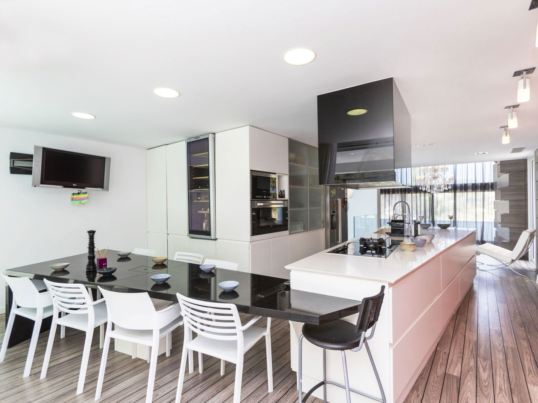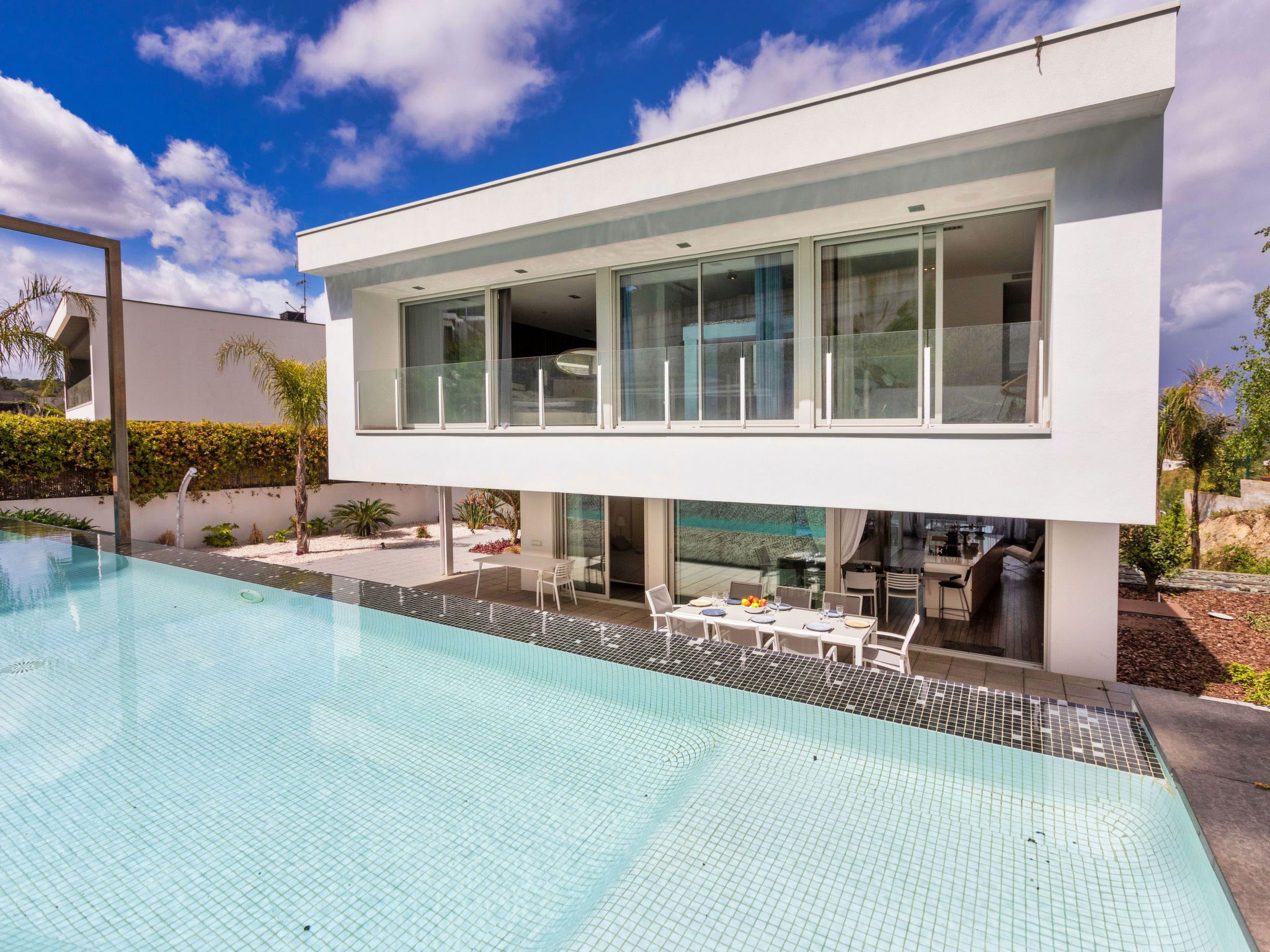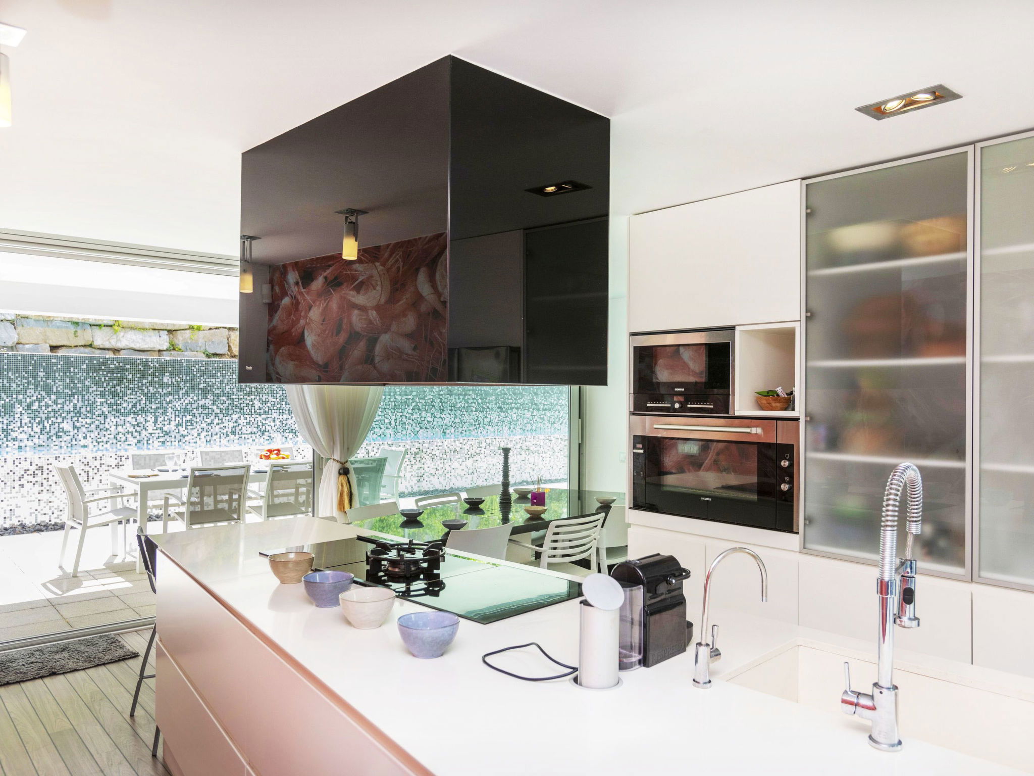 "Nathalie", 5-room villa 450 m2 on 3 levels. Modern and tasteful furnishings: upper floor: living/dining room, on 2 levels with satellite TV and air conditioning. Exit to the terrace. 1 room with 1 french bed (160 cm, length 200 cm), satellite TV. Exit to the terrace. Large, open kitchen (dishwasher, 2 ceramic glass hob hotplates, toaster, kettle, microwave, freezer, cooking island). Exit to the terrace, to the swimming pool. Shower/WC. 2nd upper floor: 1 room with 1 french bed (200 cm, length 200 cm), shower/WC and double hand-basin. 1 room with 1 french bed (160 cm, length 200 cm). 1 room with 2 beds (90 cm, length 190 cm). Shower/WC, double hand-basin. No heating option. 2 terraces. Terrace furniture, barbecue, deck chairs (8). View of the countryside. Facilities: washing machine, dryer, iron, children's high chair, baby cot, hair dryer. Internet (WiFi, free). Garage (2 cars). Please note: non-smoking house. TV only ES, FR, EN. HUTG-061954-83