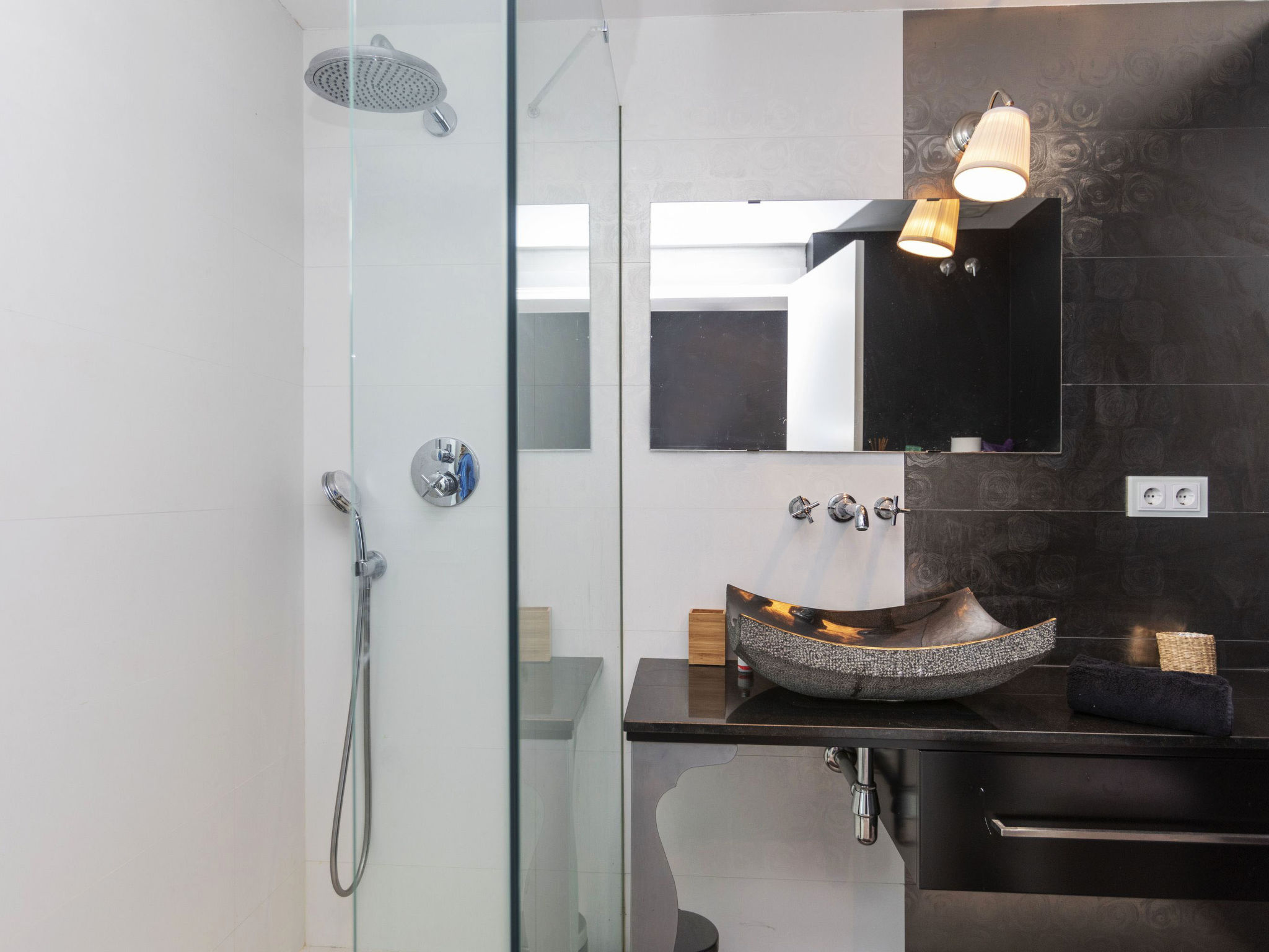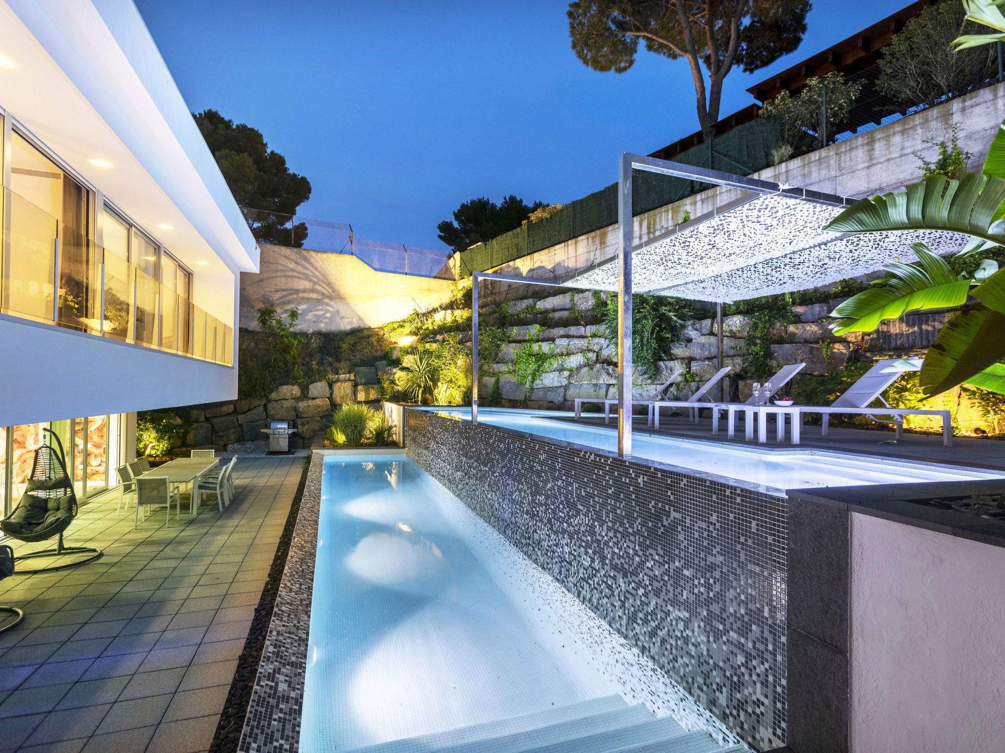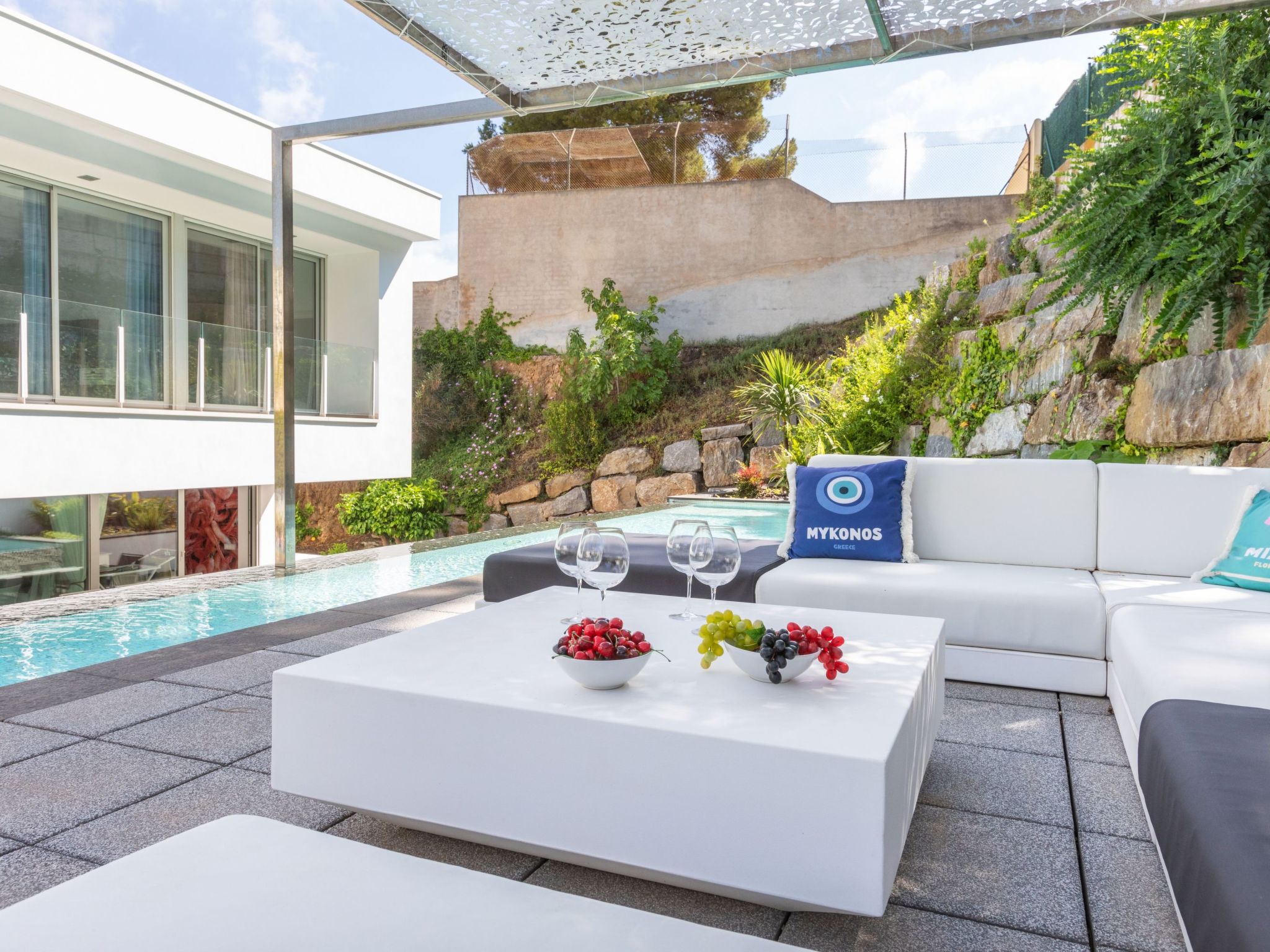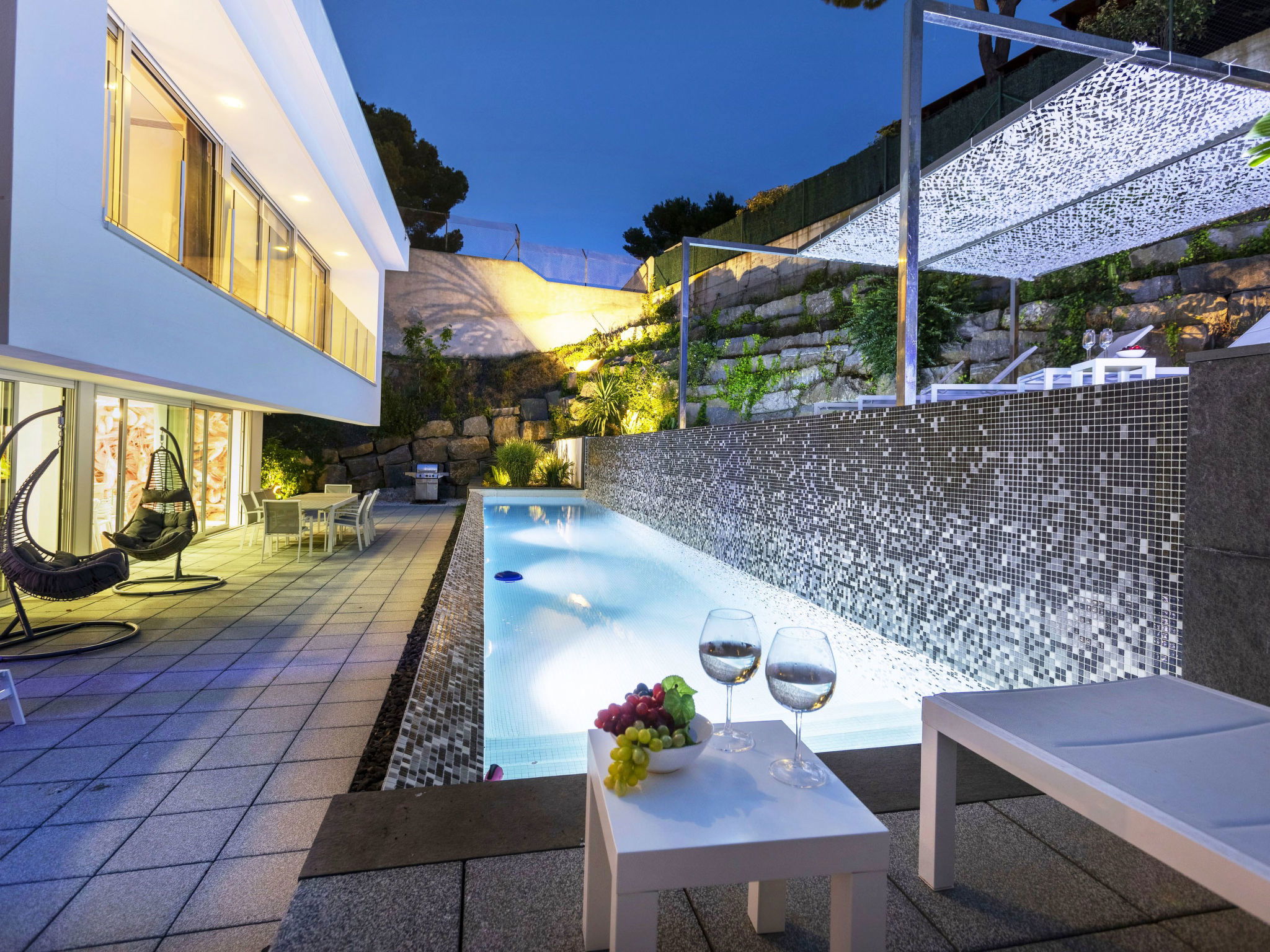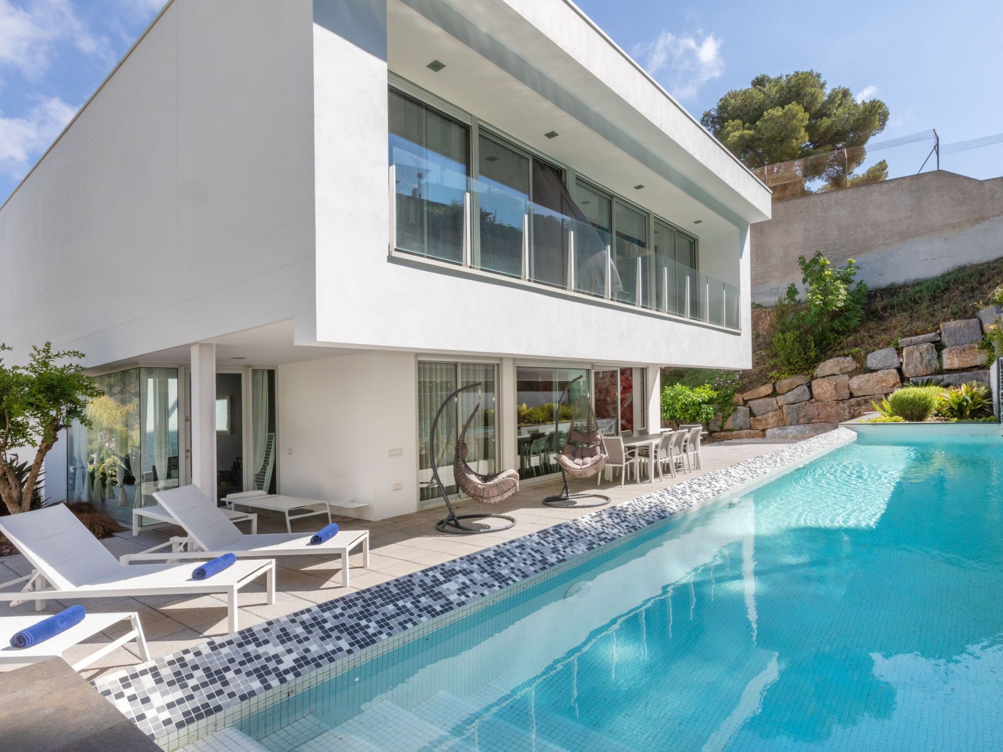 Torre Valentina 1 km from Sant Antoni de Calonge: Modern, comfortable house "Nathalie", 3 storeys. In a sunny position residential area (villas), traffic calmed area, 600 m from the sea. Private: swimming pool (above ground) (2 x 12 m, depth 125 - 180 cm, seasonal availability: 01.May. - 31.Oct.) with internal staircase. Unconventional pool shape. Supermarket 1 km, restaurant, bar 500 m, bus stop 400 m, sandy beach "Torre Valentina" 600 m, swimming bay 400 m. Sports harbour 6 km, golf course (18 hole) 9 km, tennis 2 km, riding stable 12 km. Nearby attractions: Waterpark Aquadiver 6 km. The owner does not accept any youth groups.