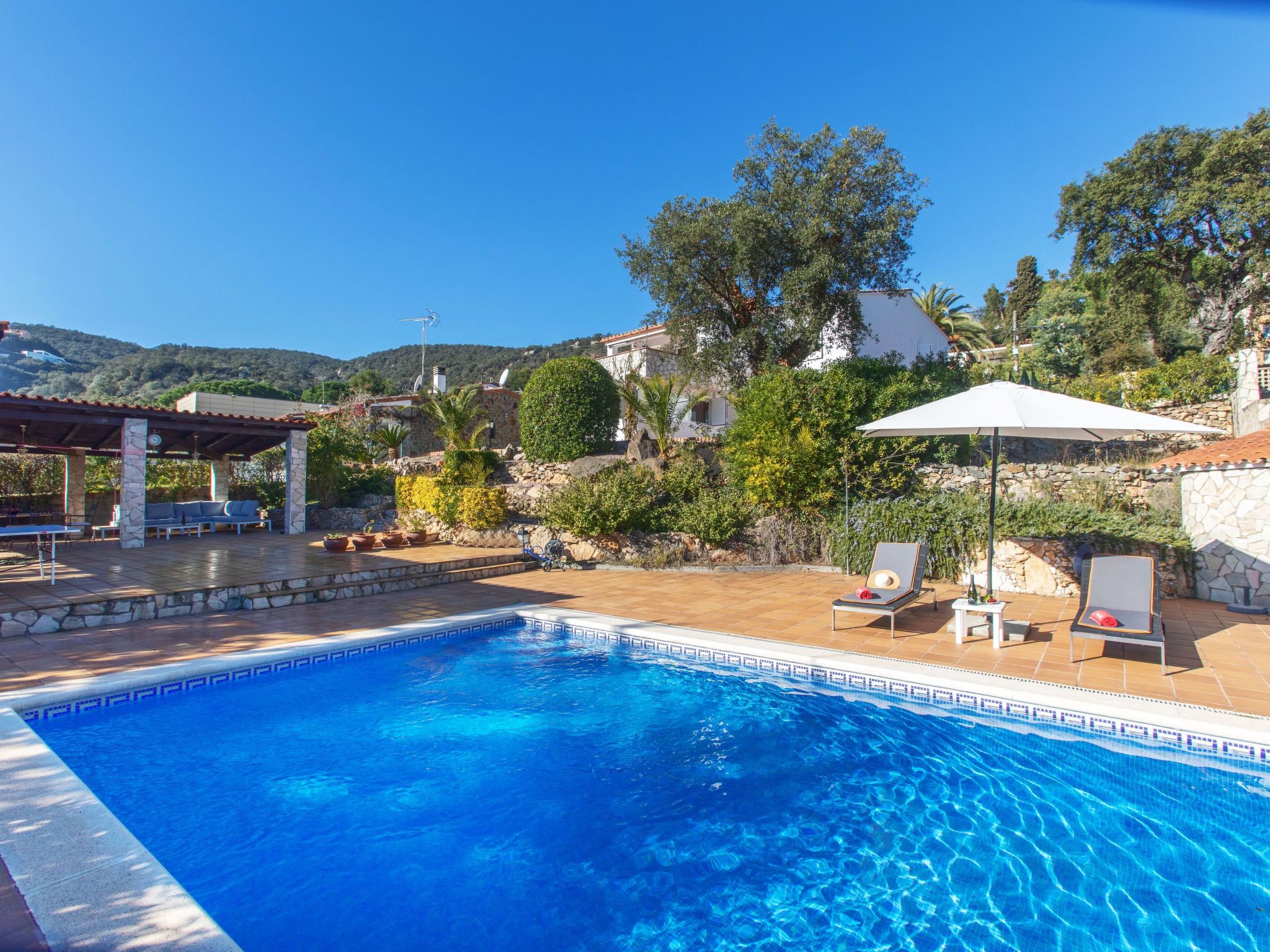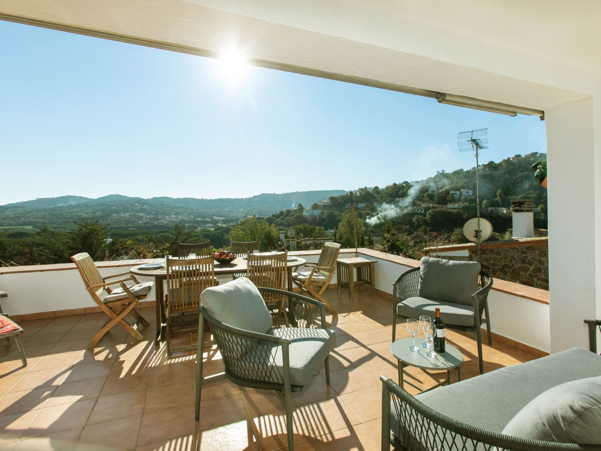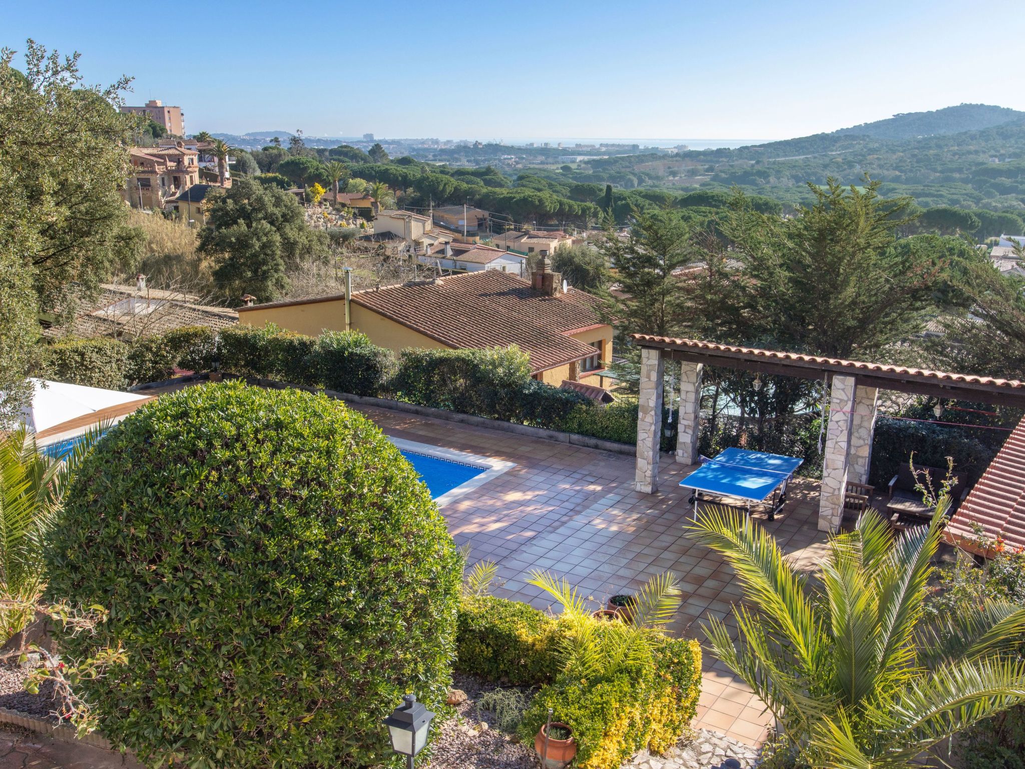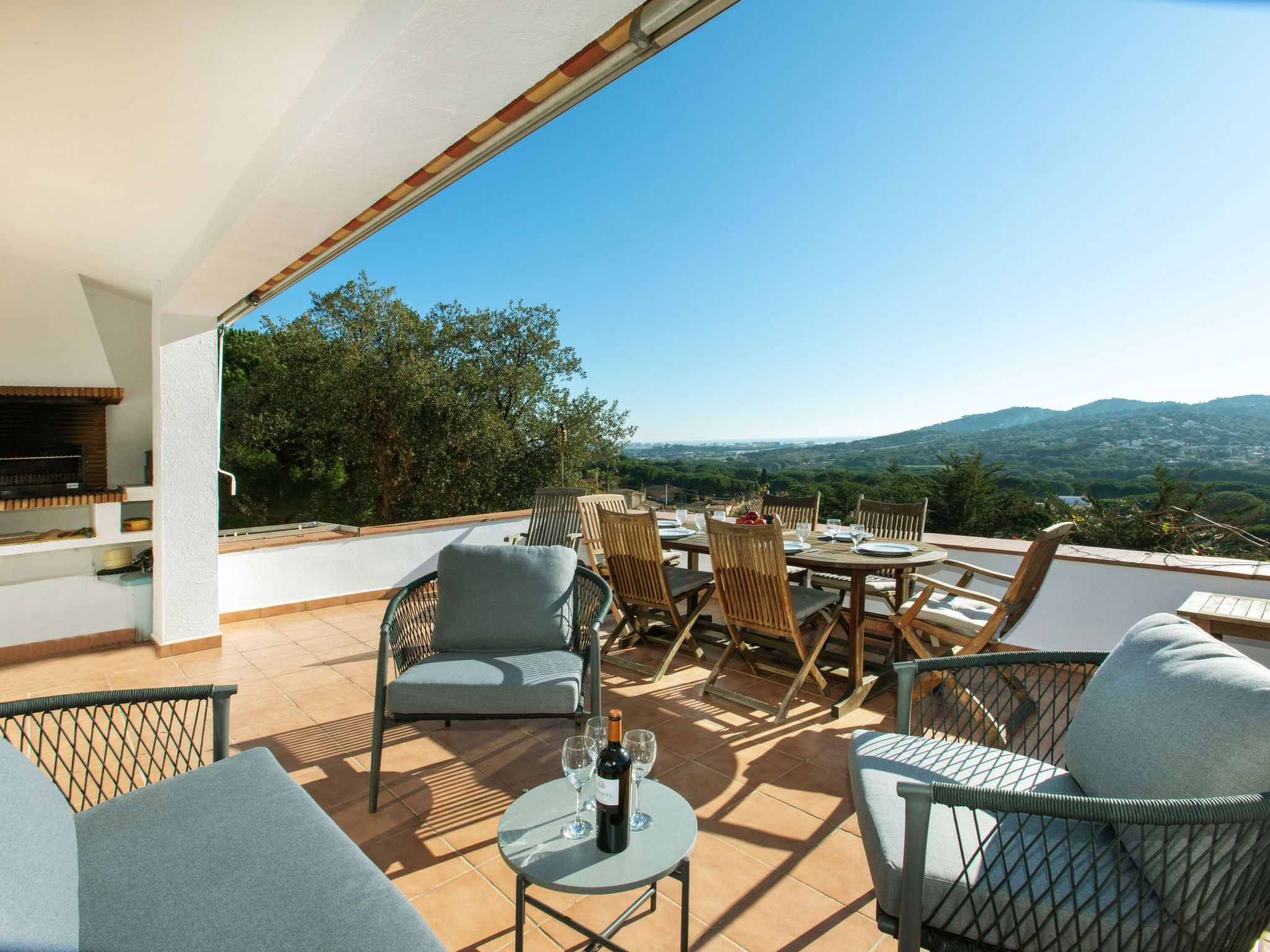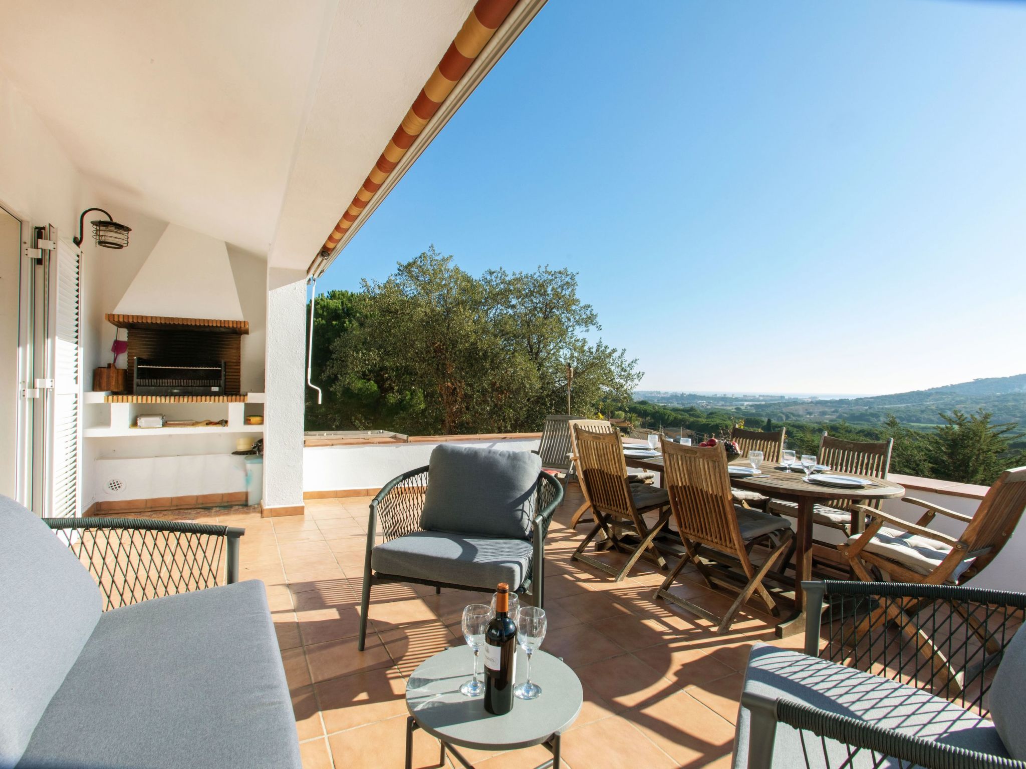 "El Suro", 6-room villa 270 m2 on 2 levels. Comfortable furnishings: living/dining room with digital TV. Exit to the terrace. 1 room with 1 french bed (160 cm, length 220 cm). 1 room with 2 beds (90 cm, length 200 cm). Open kitchen (oven, dishwasher, 4 ceramic glass hob hotplates, toaster, kettle, microwave, freezer, grill, electric coffee machine). Bath/WC. Air-conditioning. No heating option. On the lower ground floor: living/dining room. Exit to the patio, to the swimming pool. 1 room with 1 french bed (150 cm, length 200 cm) with 2 beds (90 cm, length 200 cm), 1 french bed (150 cm, length 200 cm). Small kitchen (freezer). Shower/WC. Large terrace 25 m2, garden, porch. Terrace furniture, barbecue, deck chairs (8), covered balcony. View of the sea and the countryside. Facilities: washing machine, iron, children's high chair, baby cot, hair dryer. Internet (WiFi, free). Parking at the house. Please note: suitable for families. TV only ES. HUTG-056748 // Reg. Nr.: ESFCTU00001701500025495700000000000000000HUTG-0567483