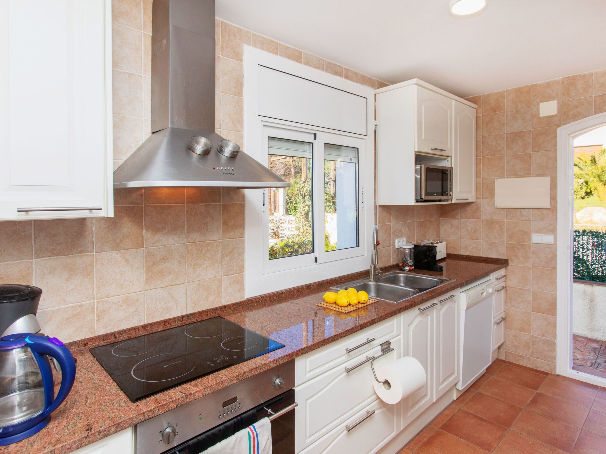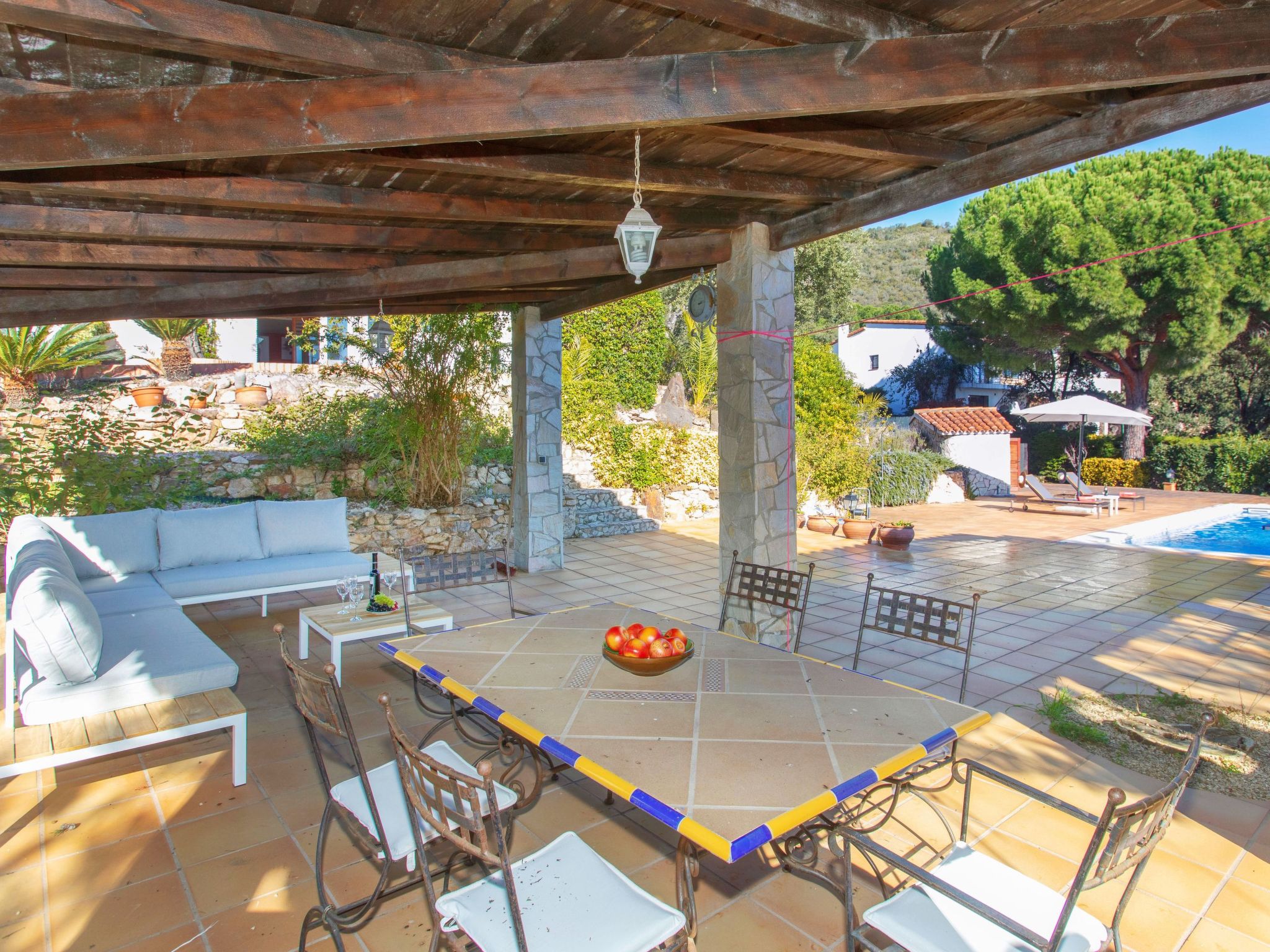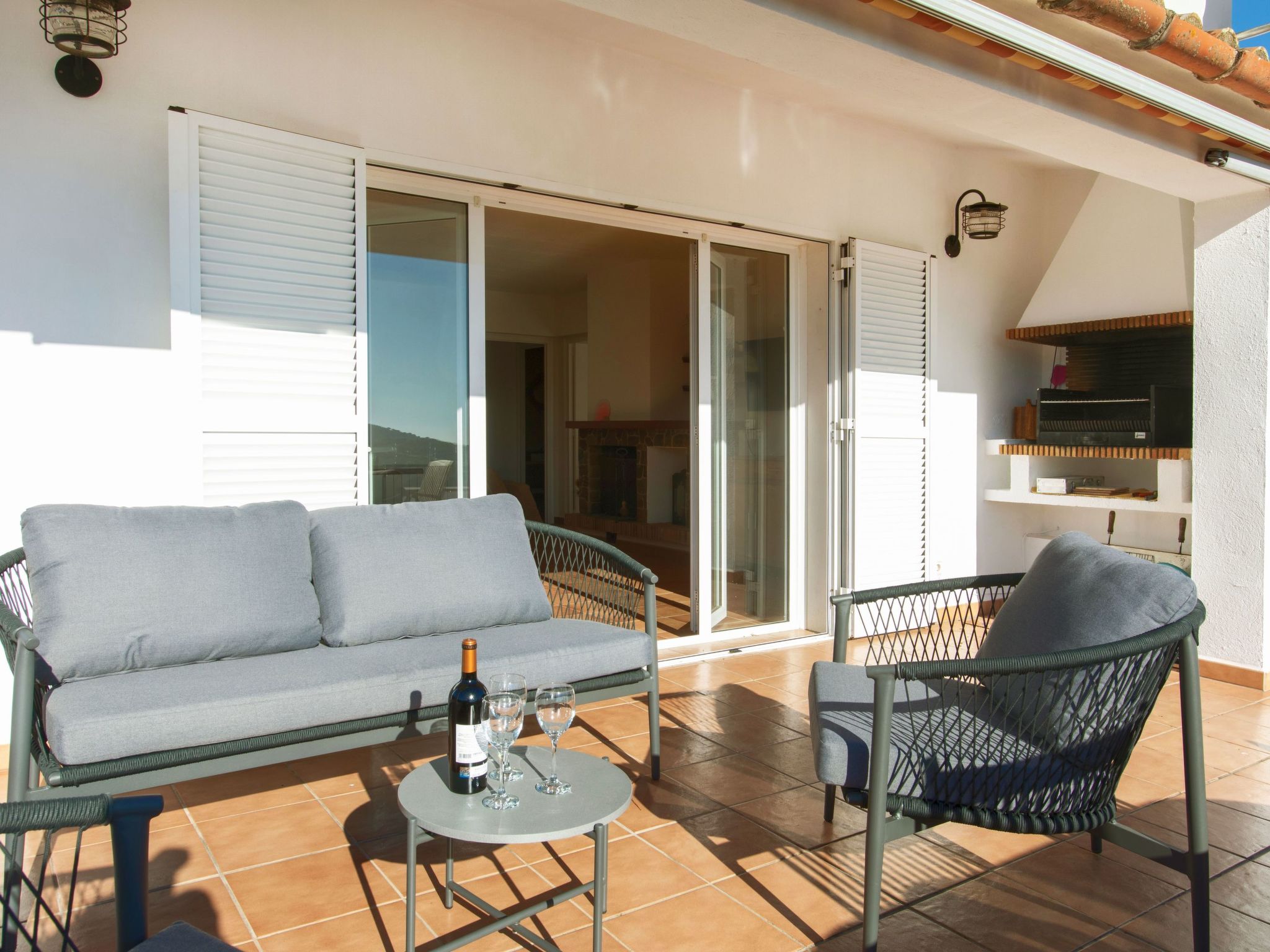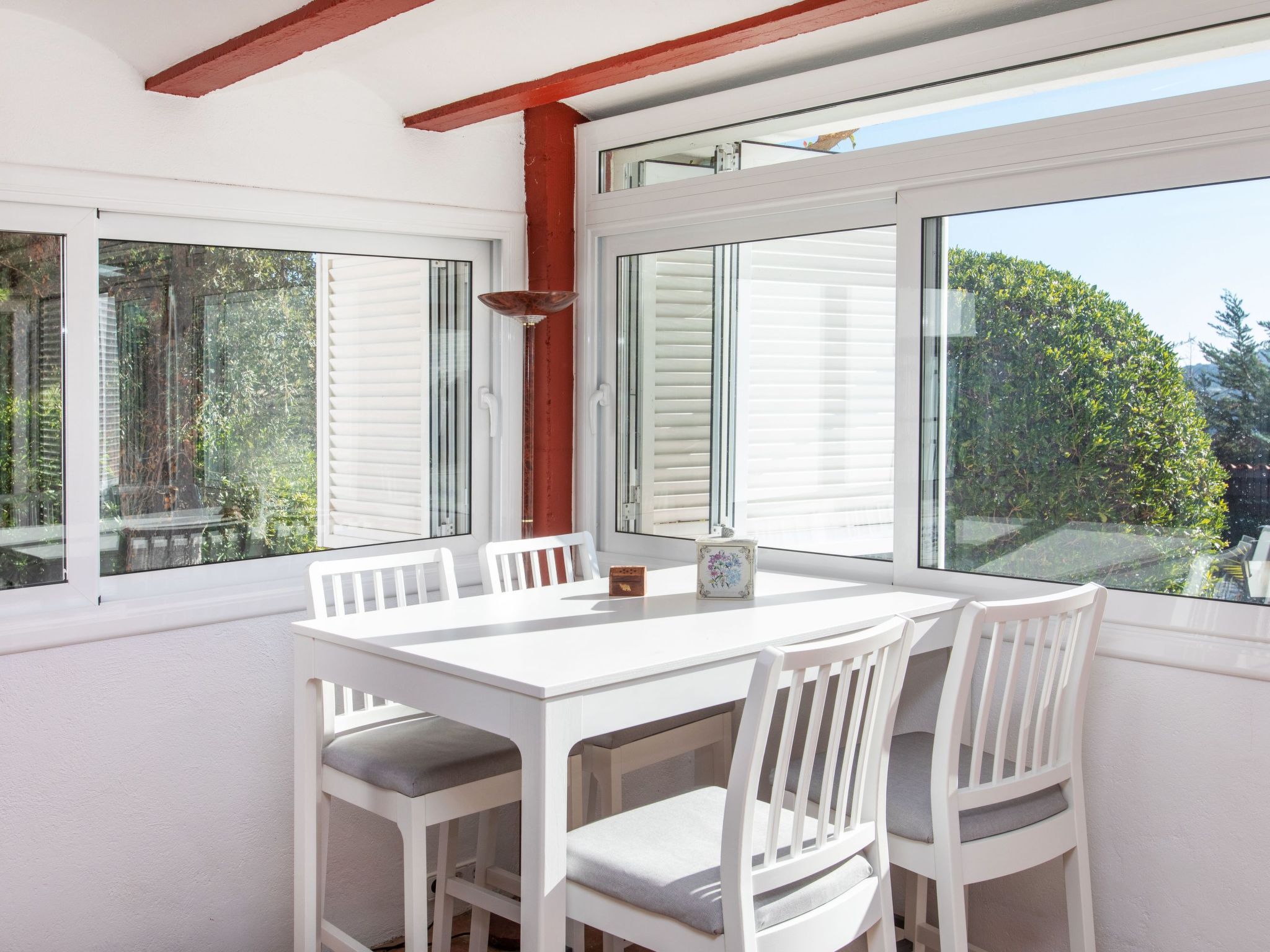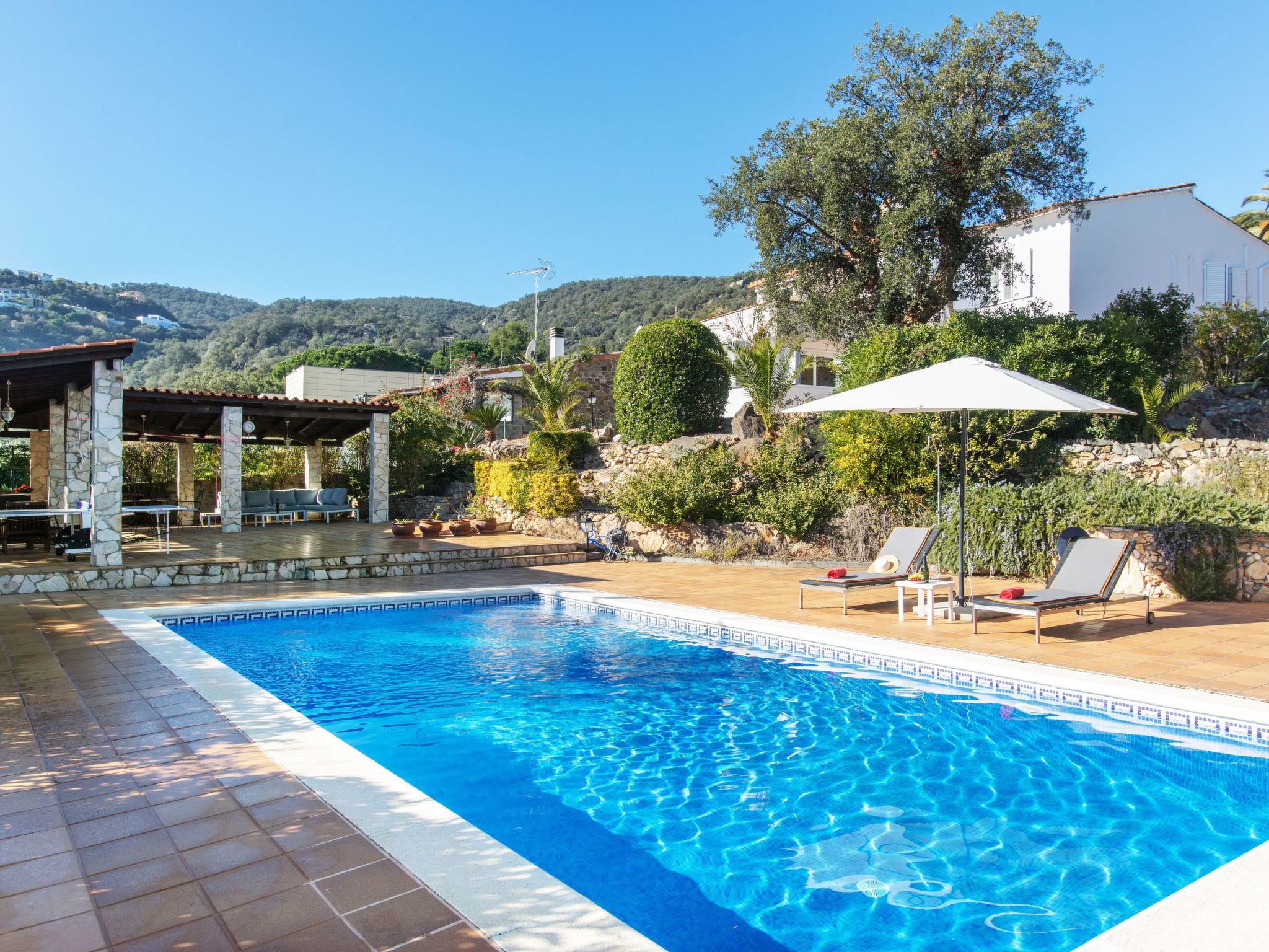 "El Suro", 6-room villa 270 m2 on 2 levels. Comfortable furnishings: living/dining room with digital TV. Exit to the terrace. 1 room with 1 french bed (160 cm, length 220 cm). 1 room with 2 beds (90 cm, length 200 cm). Open kitchen (oven, dishwasher, 4 ceramic glass hob hotplates, toaster, kettle, microwave, freezer, grill, electric coffee machine). Bath/WC. Air-conditioning. No heating option. On the lower ground floor: living/dining room. Exit to the patio, to the swimming pool. 1 room with 1 french bed (150 cm, length 200 cm) with 2 beds (90 cm, length 200 cm), 1 french bed (150 cm, length 200 cm). Small kitchen (freezer). Shower/WC. Large terrace 25 m2, garden, porch. Terrace furniture, barbecue, deck chairs (8), covered balcony. View of the sea and the countryside. Facilities: washing machine, iron, children's high chair, baby cot, hair dryer. Internet (WiFi, free). Parking at the house. Please note: suitable for families. TV only ES. HUTG-056748 // Reg. Nr.: ESFCTU00001701500025495700000000000000000HUTG-0567483