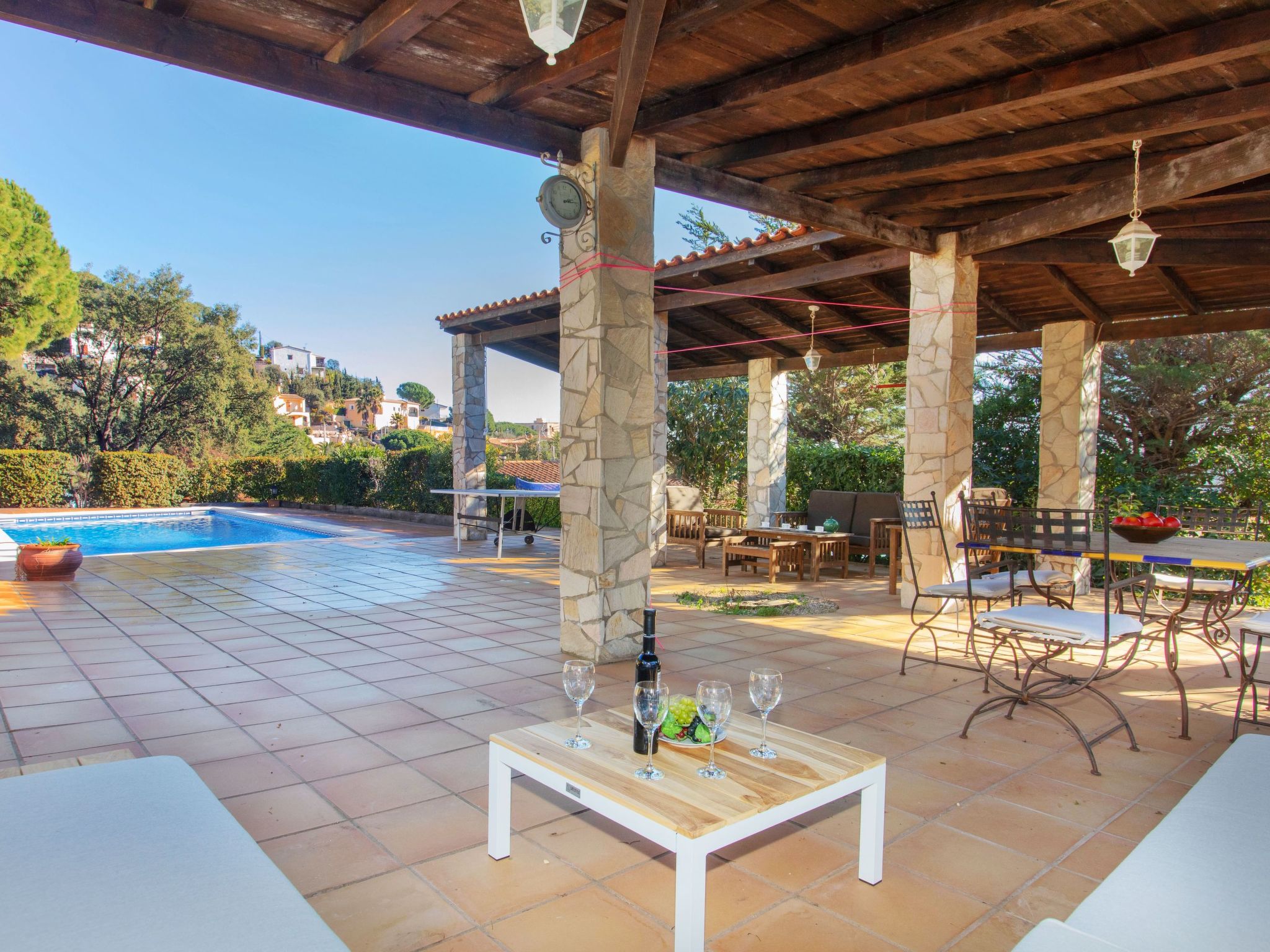 Urb. Mas Ambros 2 km from Calonge: Cosy house "El Suro". In a quiet, sunny position, 5 km from the sea, in a cul-de-sac. Private: large garden (fenced), swimming pool angular (10 x 5 m, seasonal availability: 01.May. - 30.Oct.) with internal staircase. Outdoor shower, table tennis, basketball, patio, arbour, pergola, garden furniture, barbecue, barbecue house. In the house: solarium. Parking (for 5 cars) at the house on the premises. Supermarket 2 km, restaurant 1 km, bus stop 1 km, sandy beach "Sant Antoni de Calonge" 5 km. Sports harbour 7 km, golf course (18 hole) 7 km, riding stable 12 km. Please note: car recommended. The owner does not accept any youth groups. Neighbourhood highly sensitive to noise. Quietness and good behaviour expected.