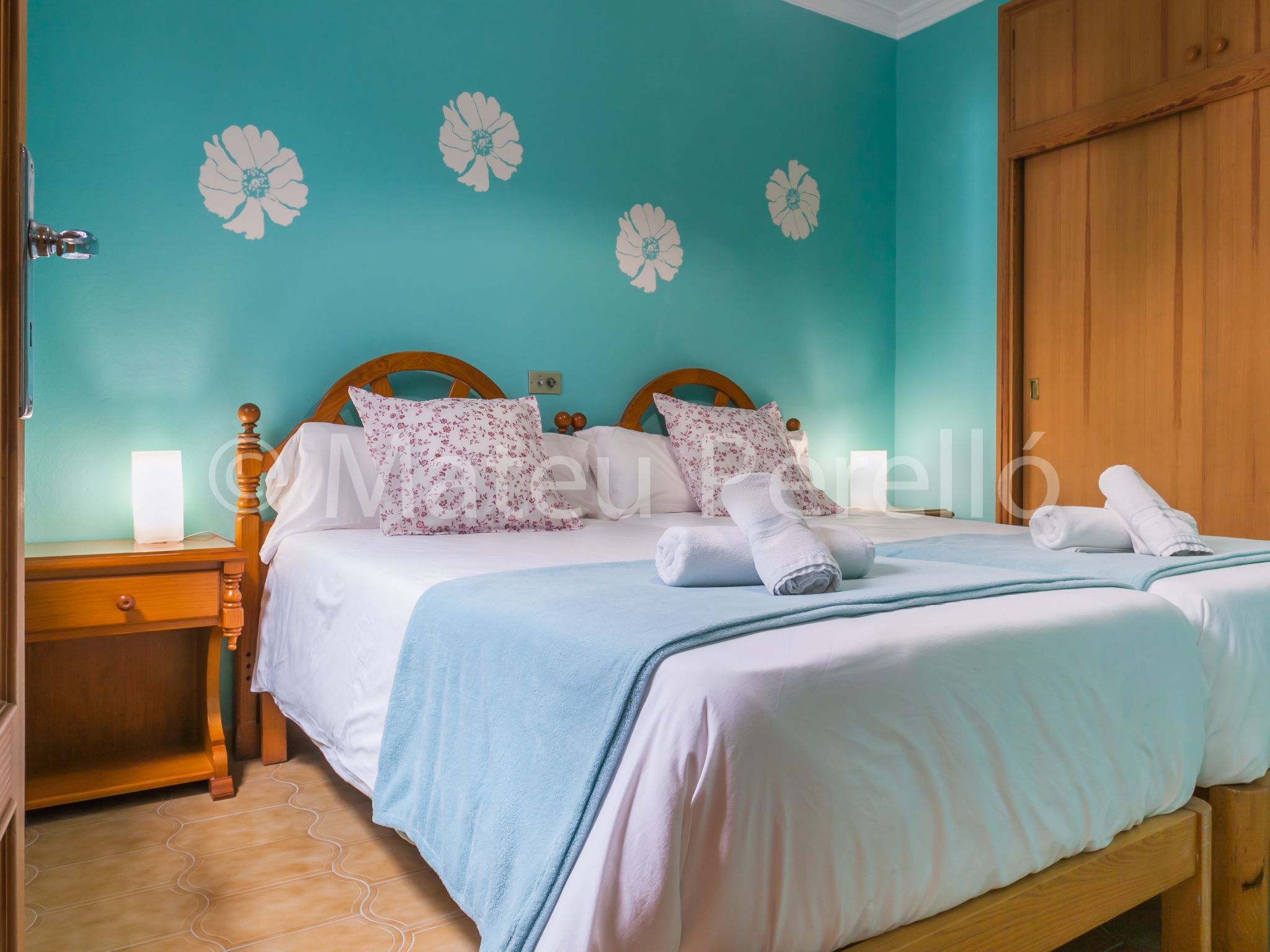 Orellana house is located on the floor of a building located on a quiet street 200 m. from the sea in a residential neighborhood, away from the bustle own tourist areas, but close to downtown and the beach of Can Picafort. It is a functional apartment for 6 people. Comprising 3 double bedrooms with 1 double bed and 4 single beds, 1 bathroom with tub, a living room with TV and DVD. The kitchen is fully equipped with enough utensils and appliances to help you during your stay tasks, also a washing machine. Air conditioning in the corridor will help you to enjoy sleeping. Sunny balcony with outdoor furniture. It's perfect to enjoy a lovely breakfast or dinner, to read, chat or just get some fresh air for a while before bed. On the upper floor, which is accessed by the building's staircase, you can enjoy an exclusive picnic area with a barbecue and sunbeds for sunbathing. Also, a small kitchen and a summer dining room, a bathroom and laundry. Highly recommended for families.