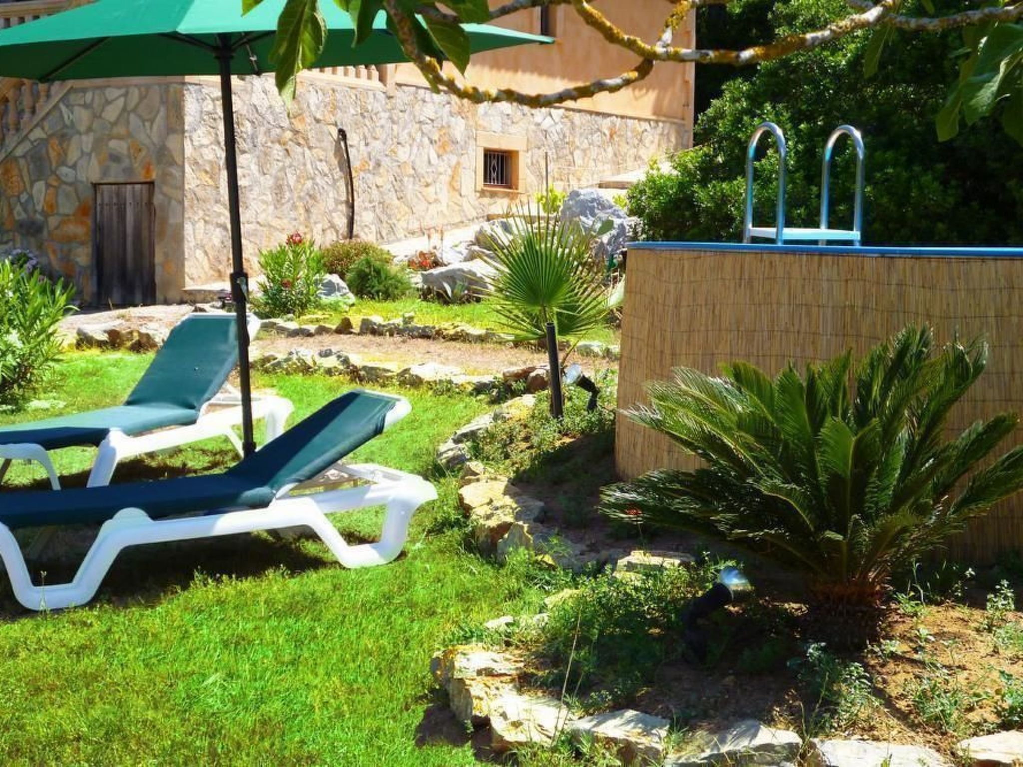 The flat is equipped with everything you need for a carefree holiday. The two bedrooms each have their own en suite bathrooms, offering guests maximum privacy. A pool is available for communal use, while a washing machine is available for exclusive use in the property. Amenities such as a gas hob, coffee machine, dishwasher, fan and kettle also ensure comfort. The cosy living/dining area with satellite TV and open fireplace invites you to spend relaxing evenings.