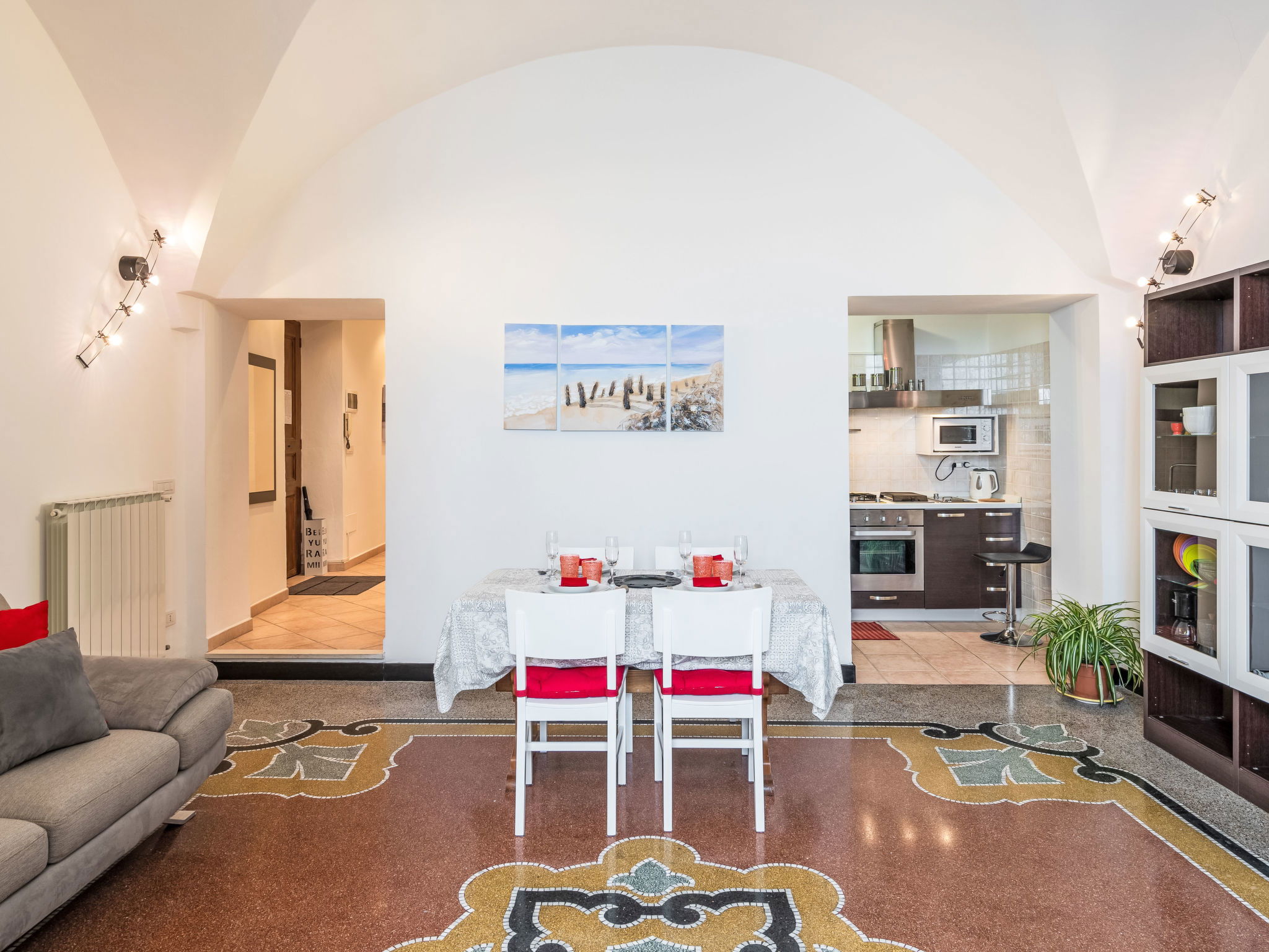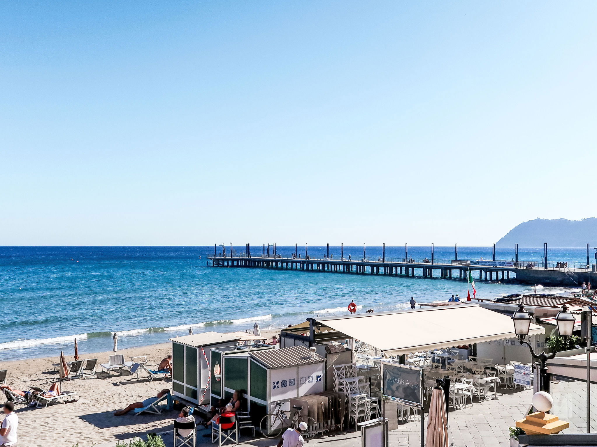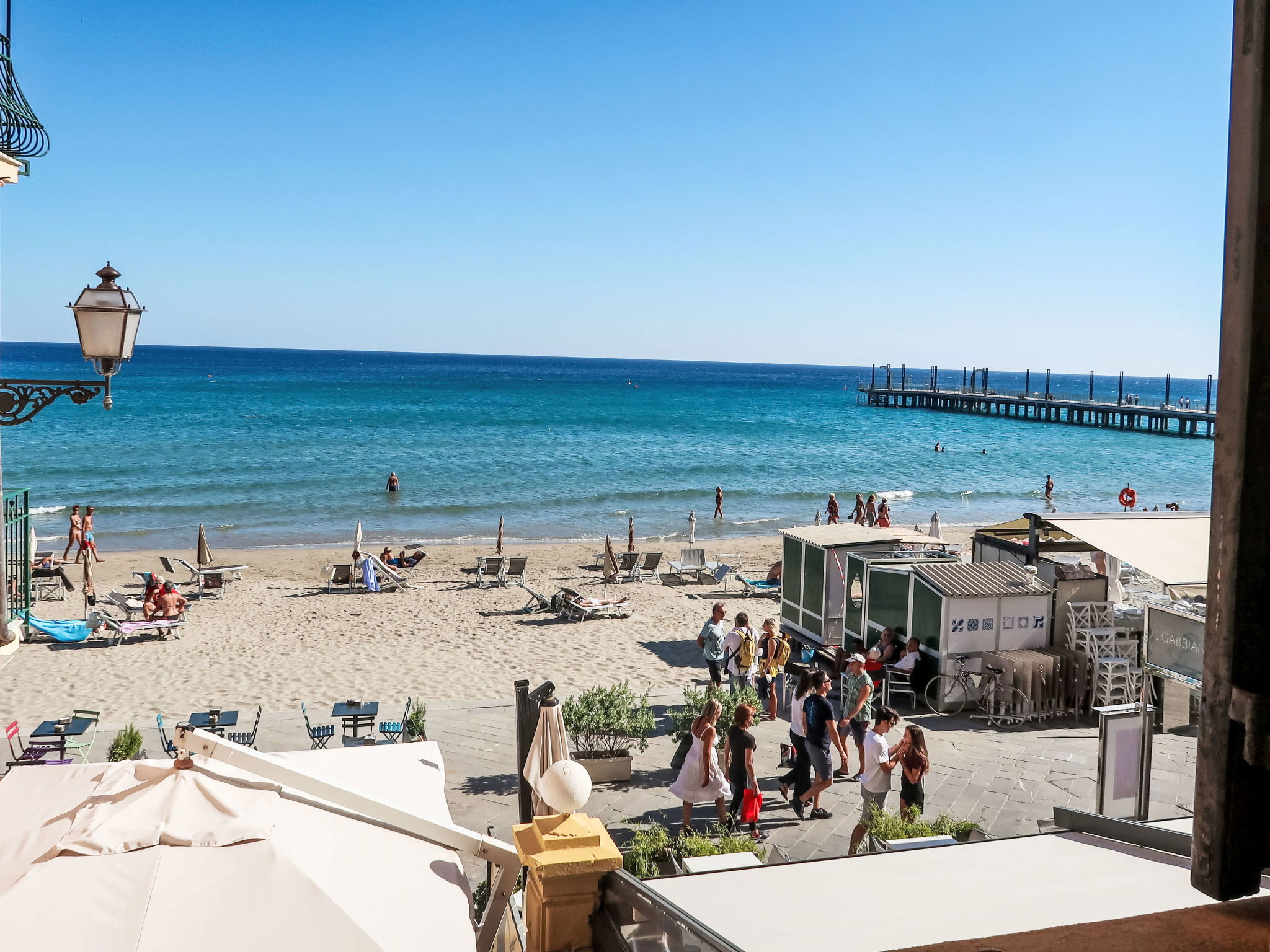 Apartment block. In the centre of Alassio, in a central position, 50 m from the sea, direct access to the beach, in a pedestrian area. Communal covered parking (extra) at 500 m, public parking. Bus stop 200 m, railway station 350 m, sandy beach 50 m.