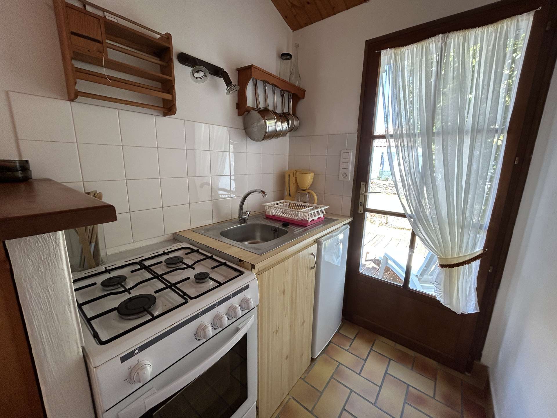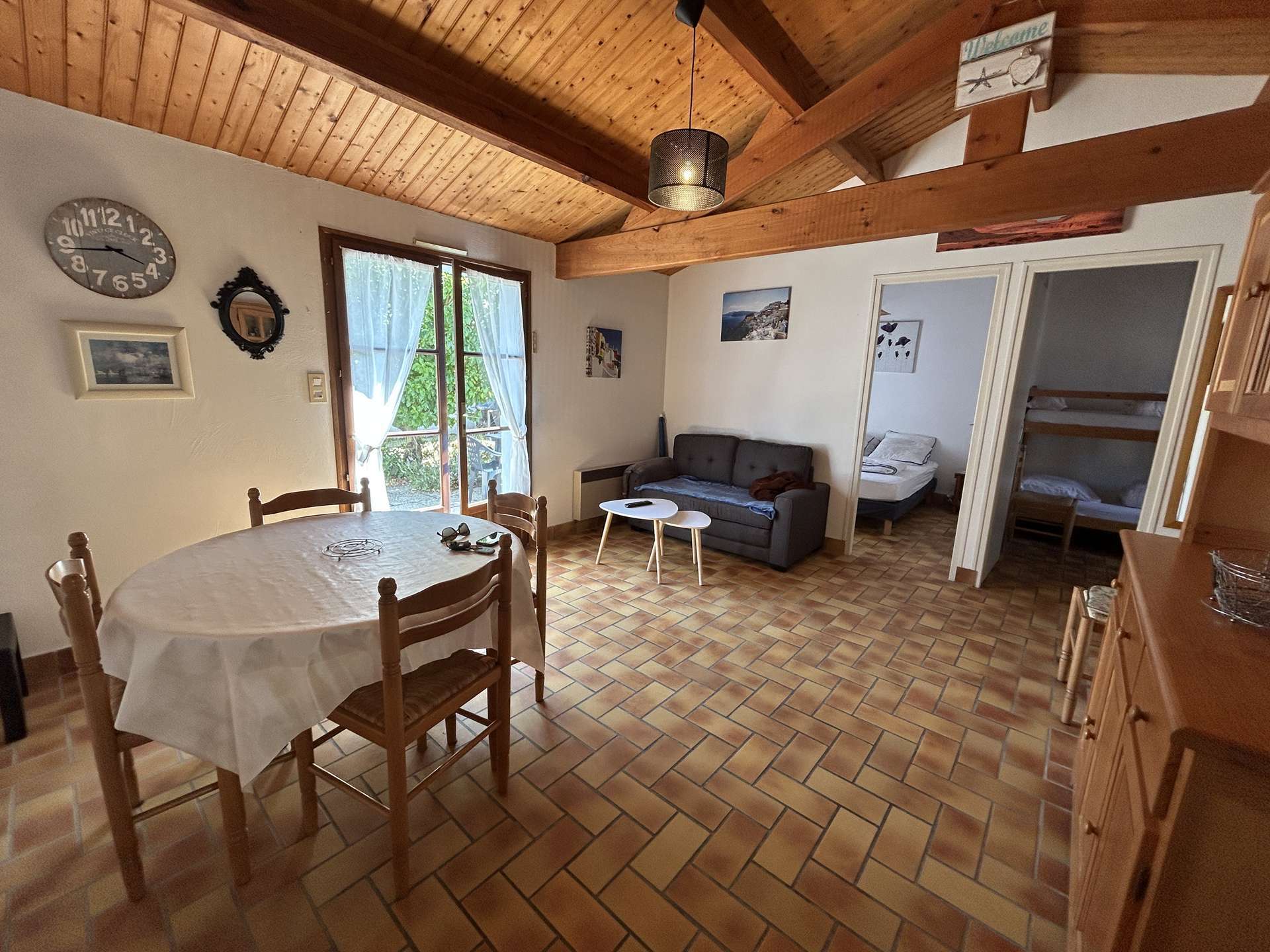 Noirmoutier - (85) - Quartier du Vieil - Near Mardi Gras beach 3-room house - approximately 40 m² - up to 4 people Accommodation: Located 300m from the beach and in the privileged district of Vieil, this rental includes a living room, a kitchen area, a bedroom with a double bed, a bedroom with two single beds, a shower room and a toilet. The advantages of this rental by the sea: Enclosed garden with two terraces, garden furniture, barbecue and deckchairs. Household disinfection included.