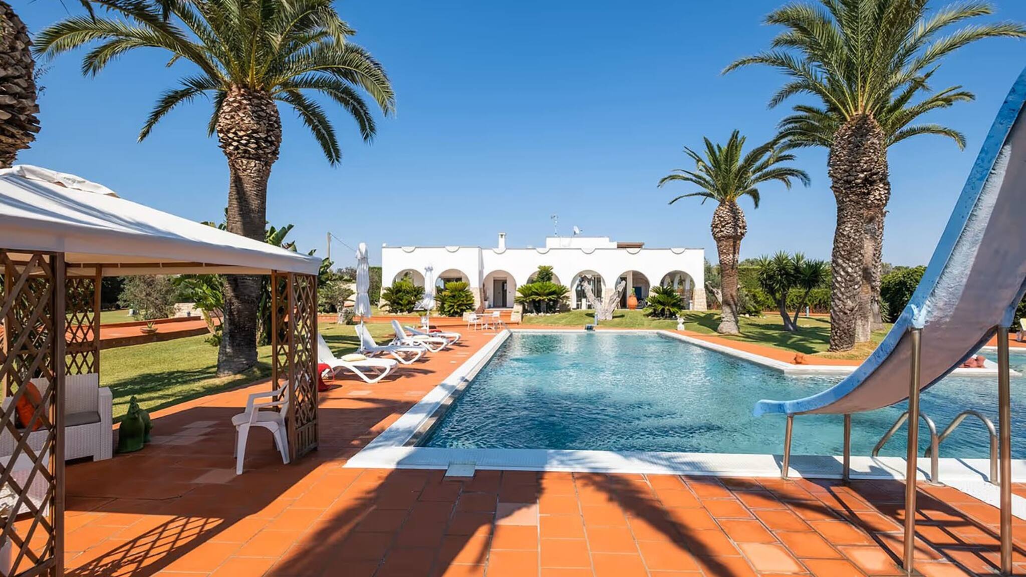 The accommodation is equipped with the following items: garden, garden furniture, fenced garden, washing machine, dryer, barbecue, internet (Wi-Fi), hair dryer, tennis court, gym / fitness centre, spa, heat pump, air-conditioned, swimming pool private, open-air parking in the same building, 2 TVs.