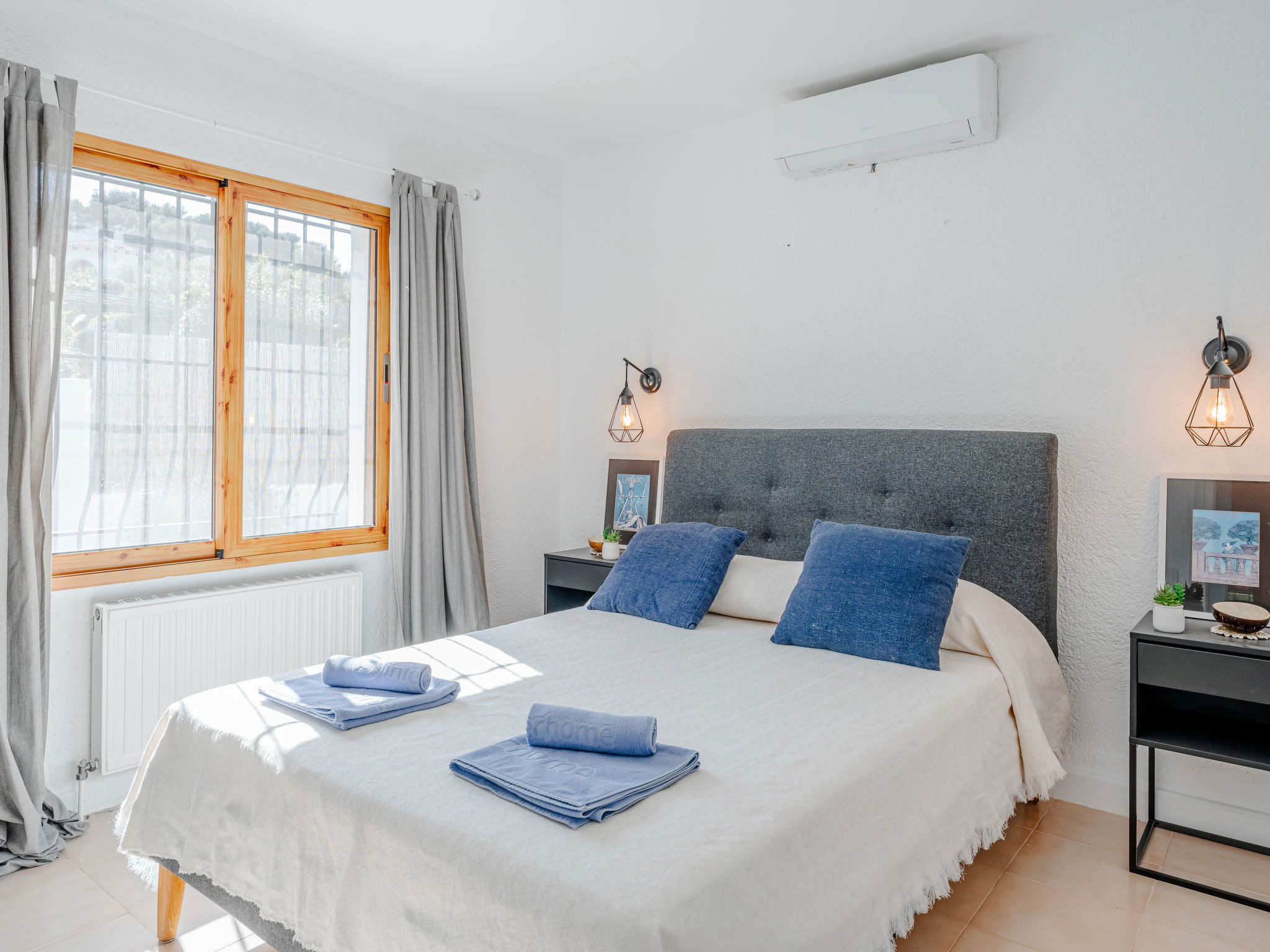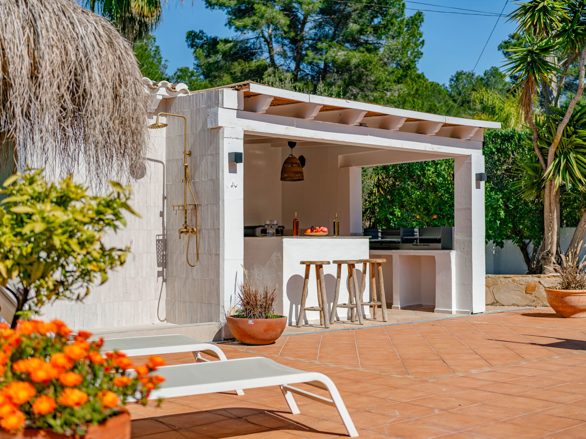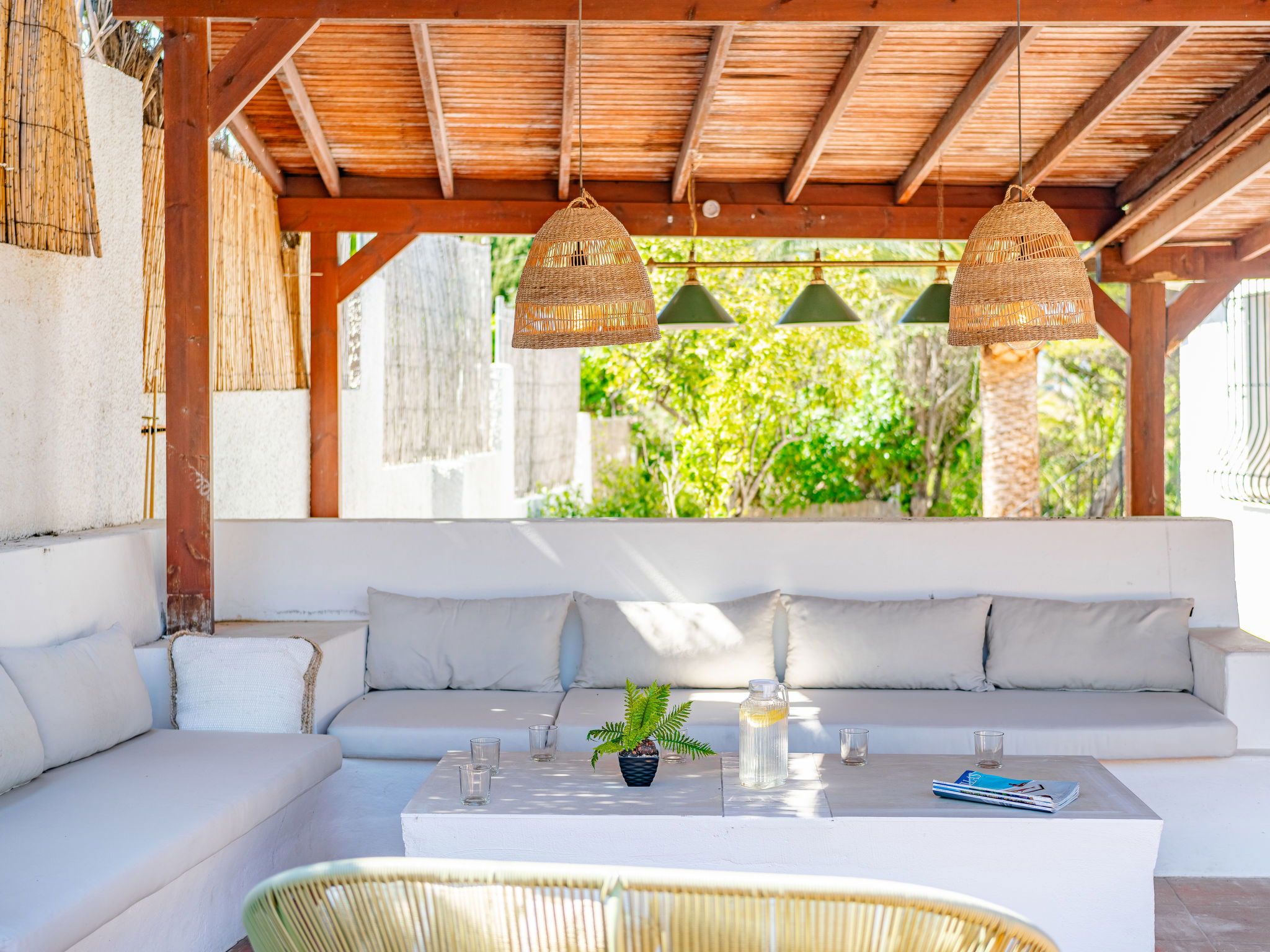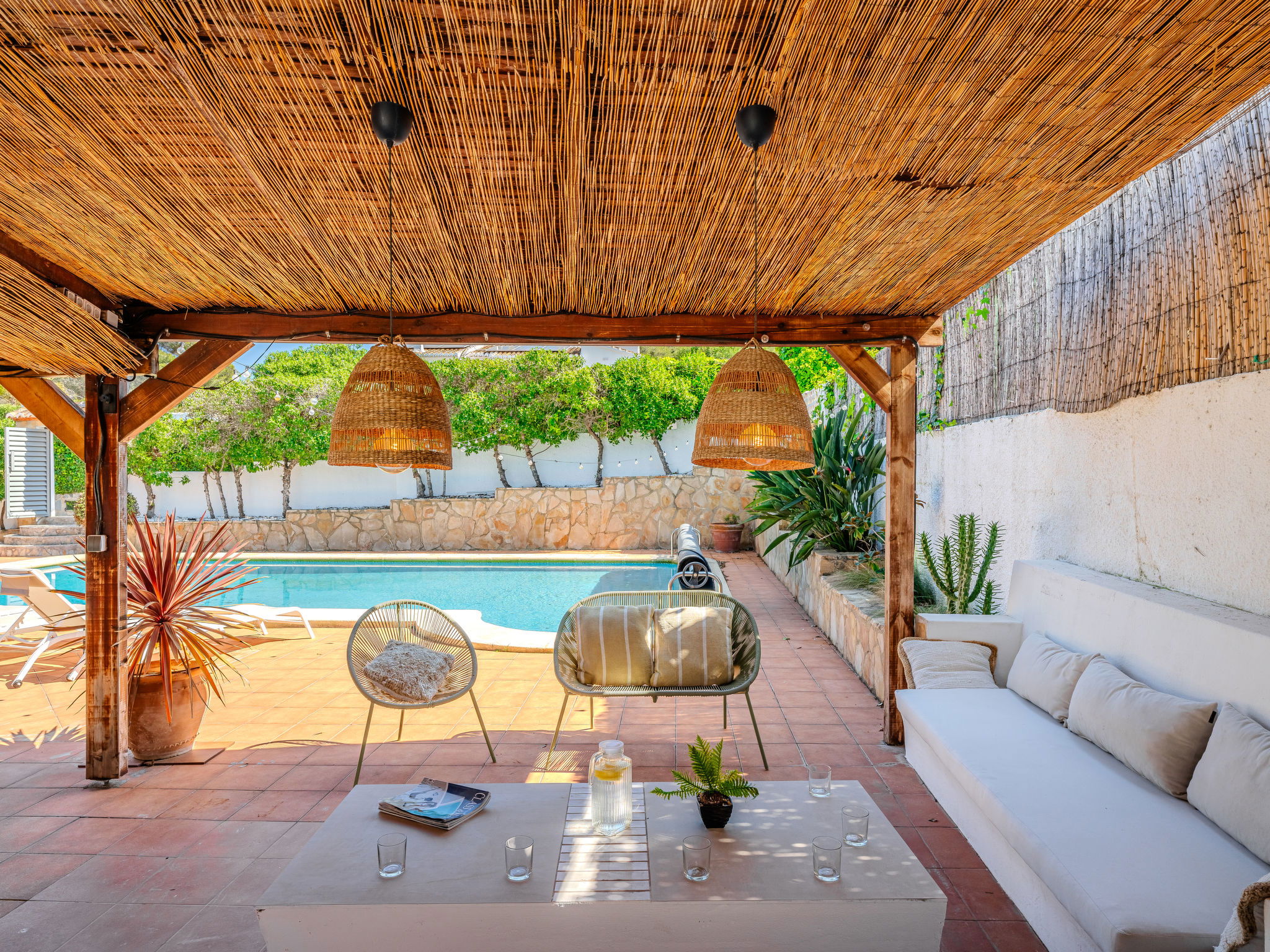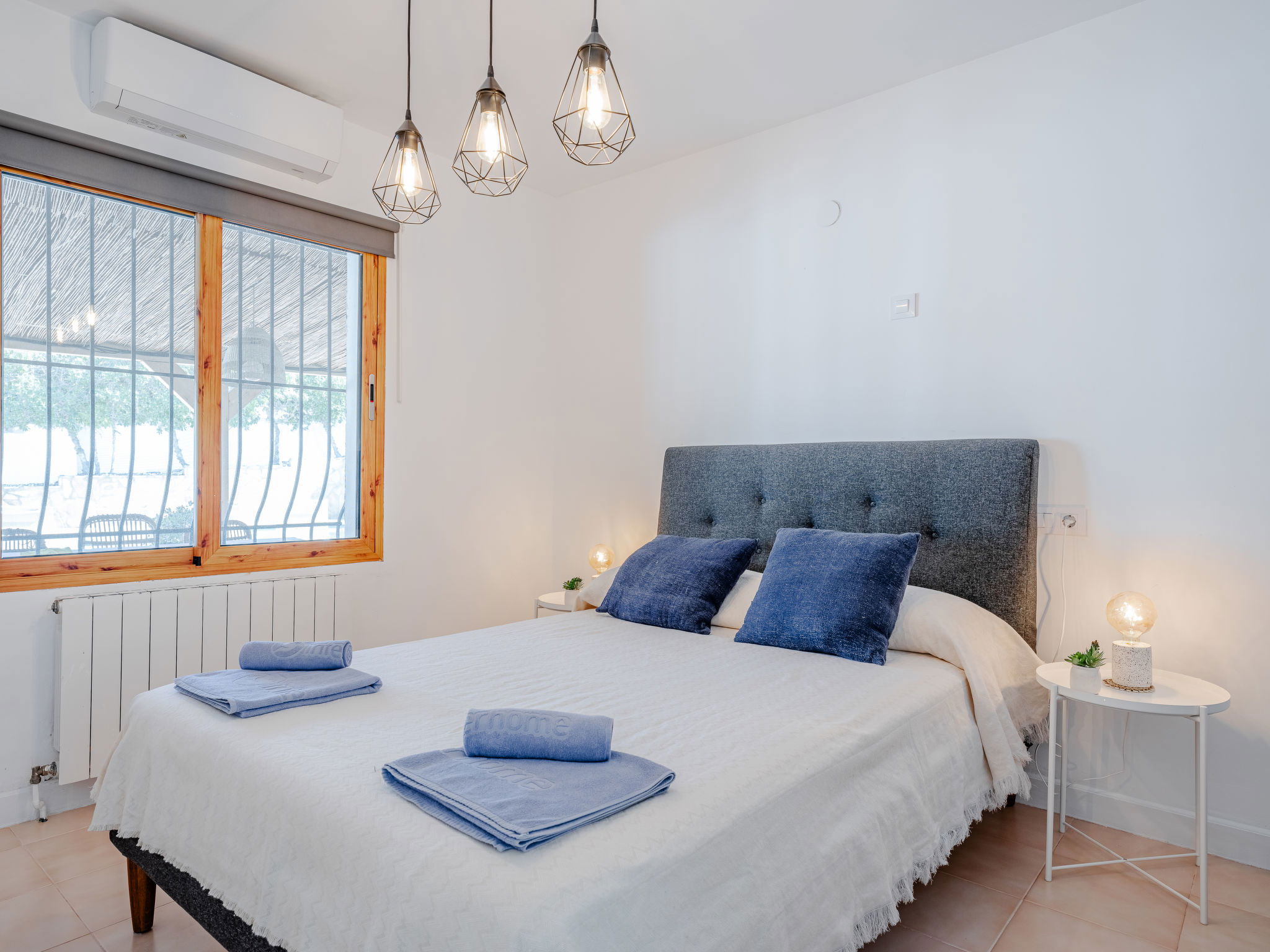 "Casa Sierra Pinos Plus", 6-room villa 320 m2 on 2 levels. Spacious and bright, renovated, very beautiful and stylish furnishings: living/dining room with satellite TV, air conditioning and forced-air heating. Exit pergola, to the swimming pool. 1 room with 1 french bed (160 cm, length 200 cm), shower/WC, air conditioning and forced-air heating. 1 room with 1 french bed (160 cm, length 200 cm), air conditioning and forced-air heating. 1 room with 1 x 2 bunk beds (90 cm, length 200 cm), air conditioning and forced-air heating. Kitchen (oven, dishwasher, 5 gas rings, toaster, kettle, microwave, freezer, electric coffee machine, Capsules for coffee machine (Nespresso) extra). Bath/WC. On the lower ground floor: 1 room with 1 french bed (180 cm, length 200 cm), bath/WC, air conditioning and forced-air heating. 1 room with 1 french bed (180 cm, length 200 cm), shower/WC, air conditioning and forced-air heating. Exit to the patio. Small kitchen (toaster, kettle, microwave, freezer, electric coffee machine, Capsules for coffee machine (Nespresso) extra). Large garden, lawn. Terrace furniture, barbecue, deck chairs (6), covered balcony, sitting area. Facilities: washing machine, iron, children's high chair, baby cot, hair dryer. Internet (WiFi, free). Parking, garage. VT-496994-A // Reg. Nr.: ESFCTU00000307100037223400000000000000000VT-496994-A0