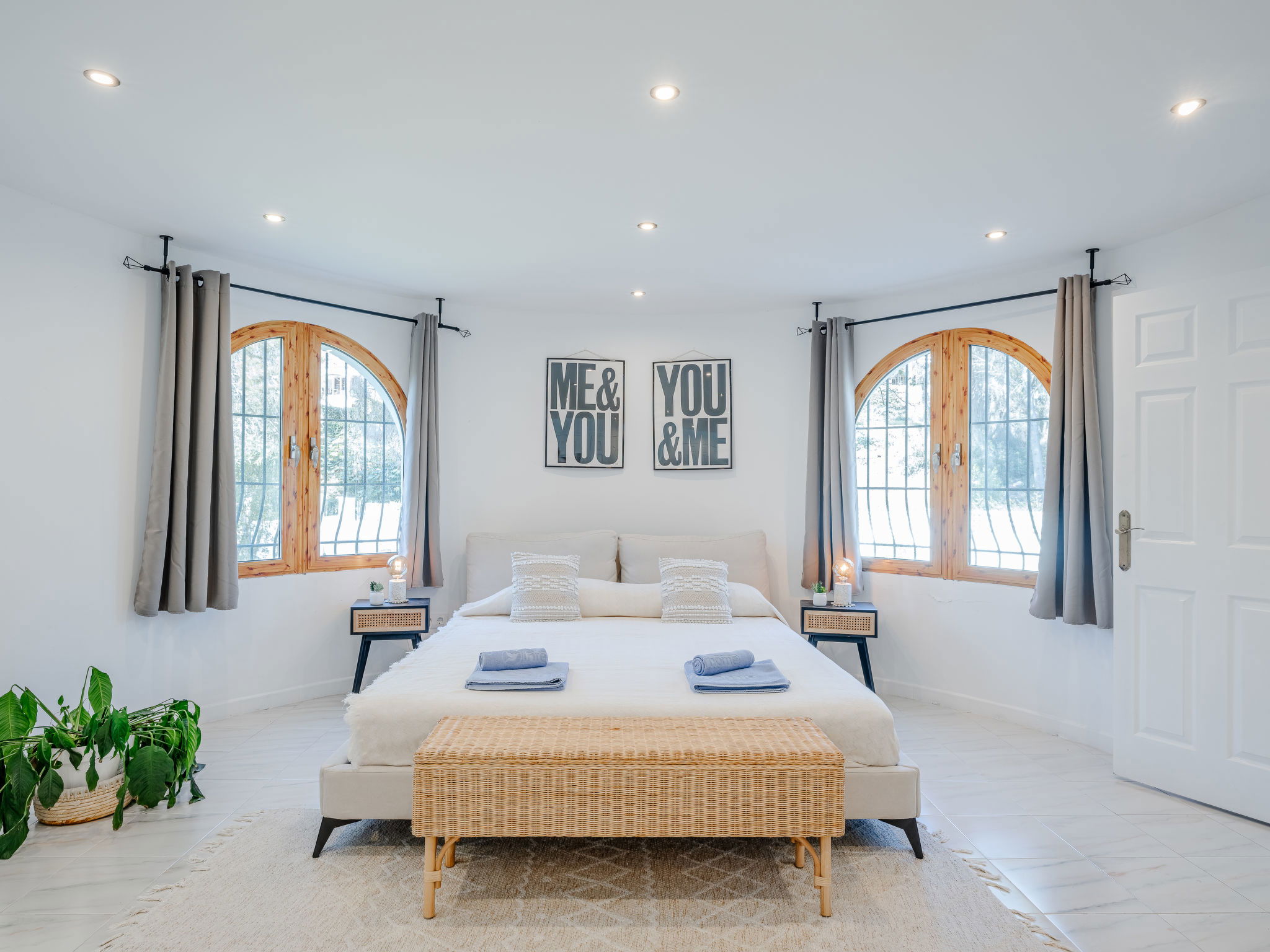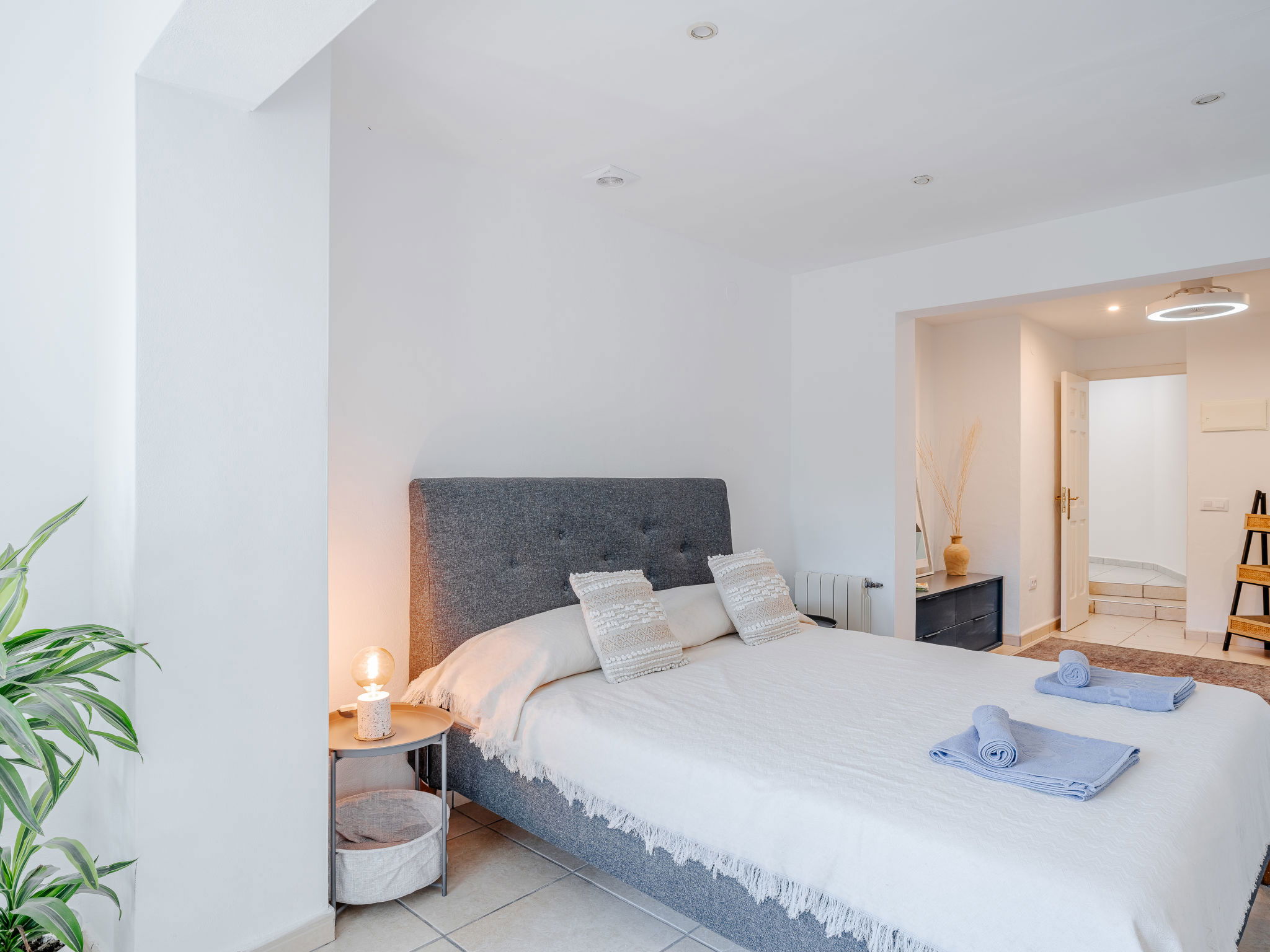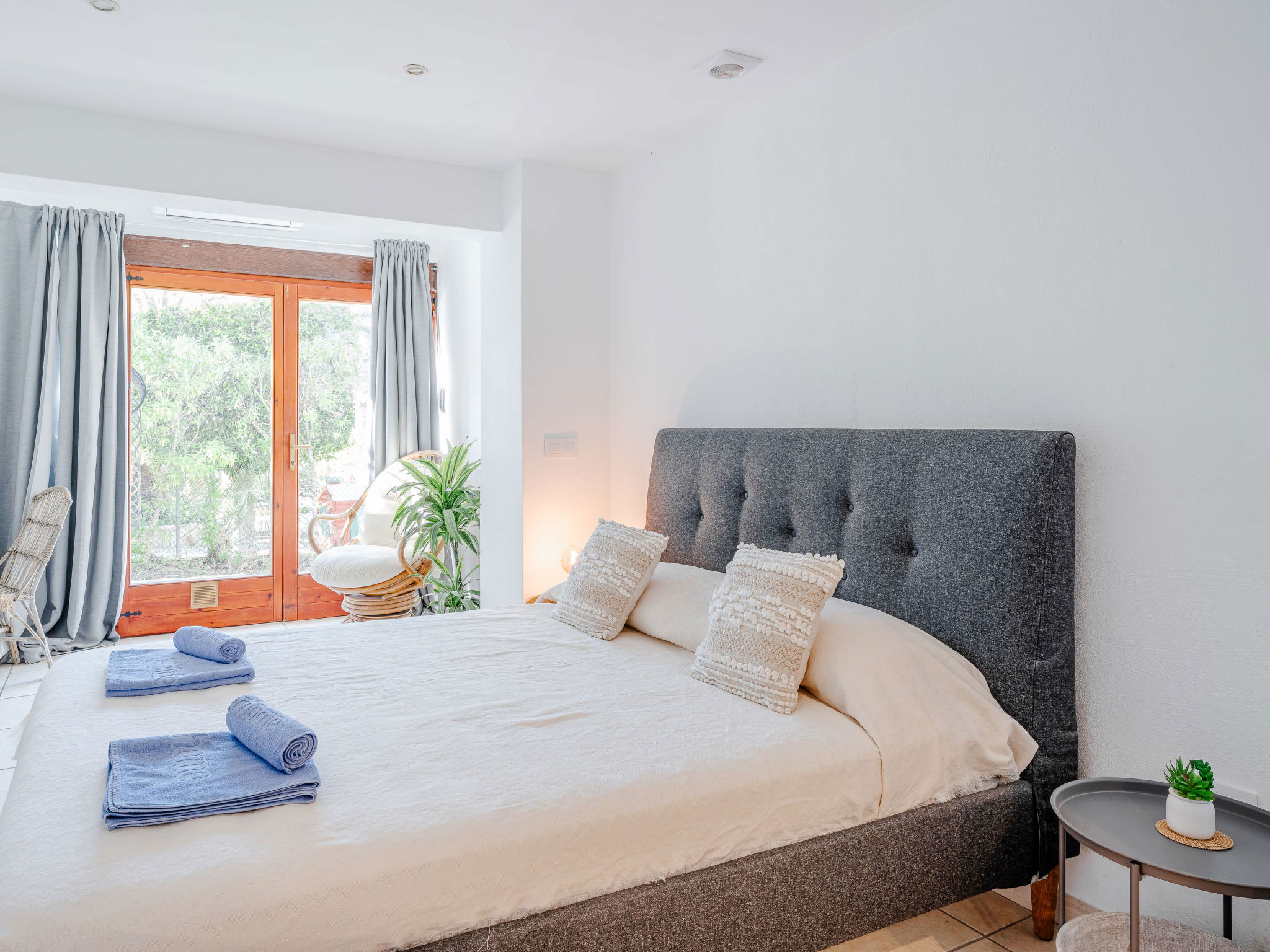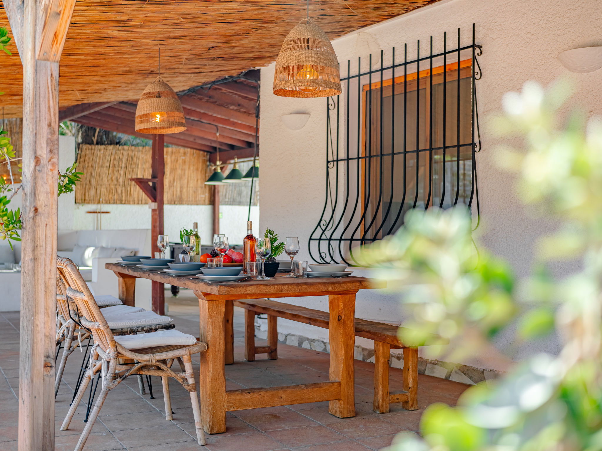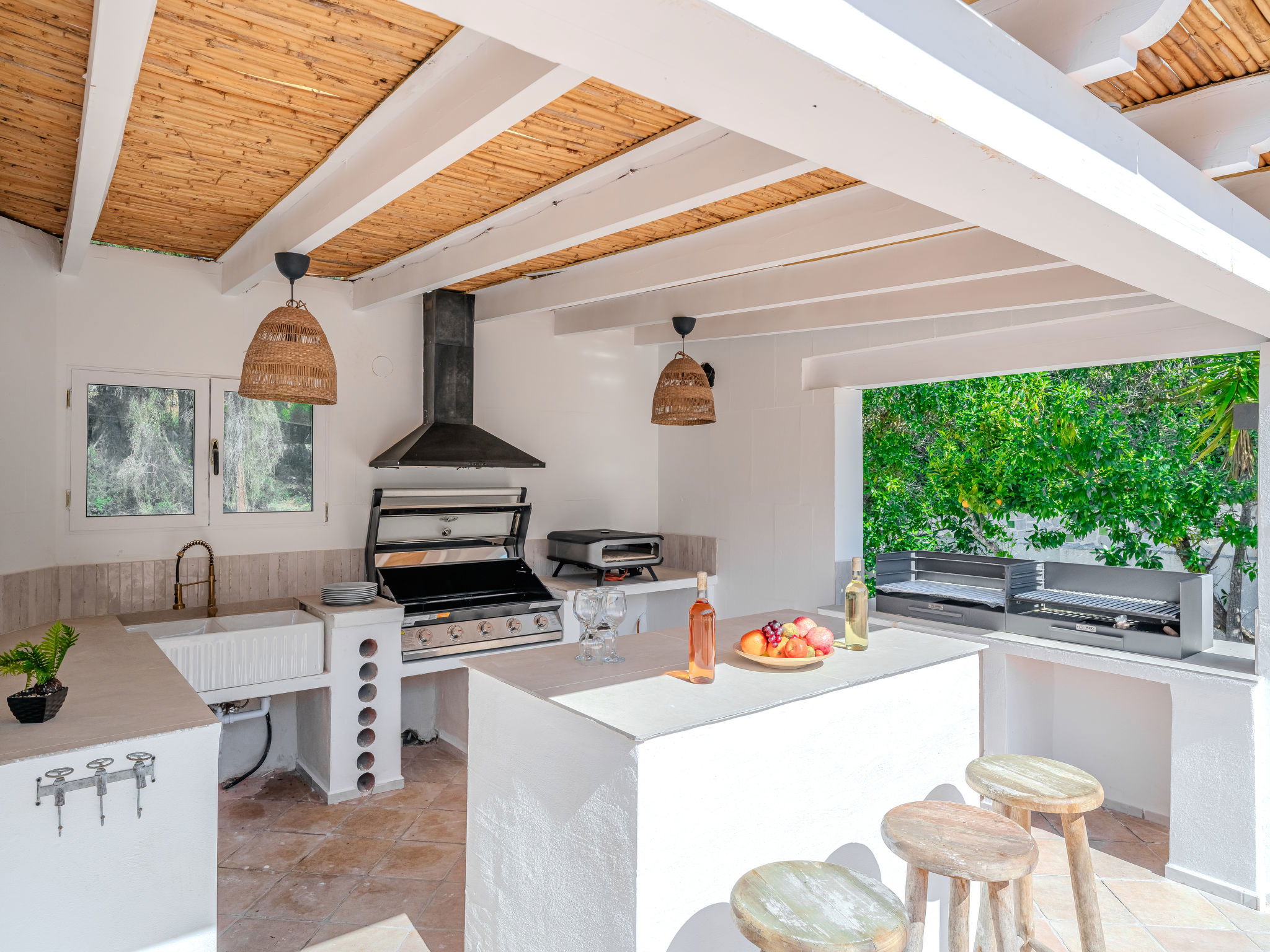 "Casa Sierra Pinos Plus", 6-room villa 320 m2 on 2 levels. Spacious and bright, renovated, very beautiful and stylish furnishings: living/dining room with satellite TV, air conditioning and forced-air heating. Exit pergola, to the swimming pool. 1 room with 1 french bed (160 cm, length 200 cm), shower/WC, air conditioning and forced-air heating. 1 room with 1 french bed (160 cm, length 200 cm), air conditioning and forced-air heating. 1 room with 1 x 2 bunk beds (90 cm, length 200 cm), air conditioning and forced-air heating. Kitchen (oven, dishwasher, 5 gas rings, toaster, kettle, microwave, freezer, electric coffee machine, Capsules for coffee machine (Nespresso) extra). Bath/WC. On the lower ground floor: 1 room with 1 french bed (180 cm, length 200 cm), bath/WC, air conditioning and forced-air heating. 1 room with 1 french bed (180 cm, length 200 cm), shower/WC, air conditioning and forced-air heating. Exit to the patio. Small kitchen (toaster, kettle, microwave, freezer, electric coffee machine, Capsules for coffee machine (Nespresso) extra). Large garden, lawn. Terrace furniture, barbecue, deck chairs (6), covered balcony, sitting area. Facilities: washing machine, iron, children's high chair, baby cot, hair dryer. Internet (WiFi, free). Parking, garage. VT-496994-A // Reg. Nr.: ESFCTU00000307100037223400000000000000000VT-496994-A0
