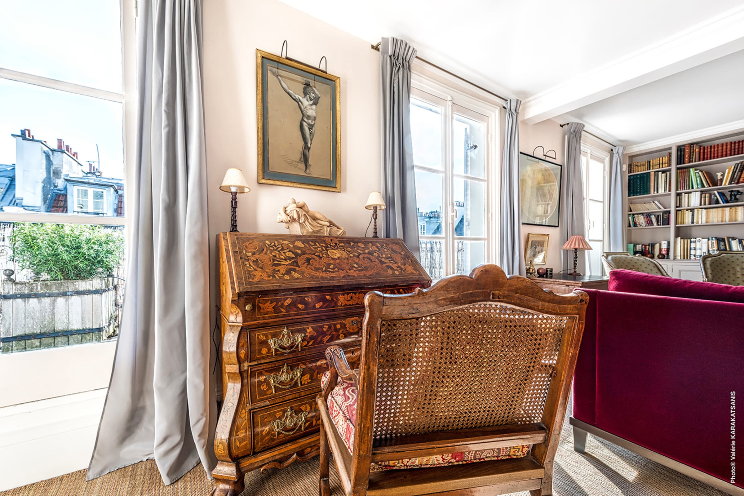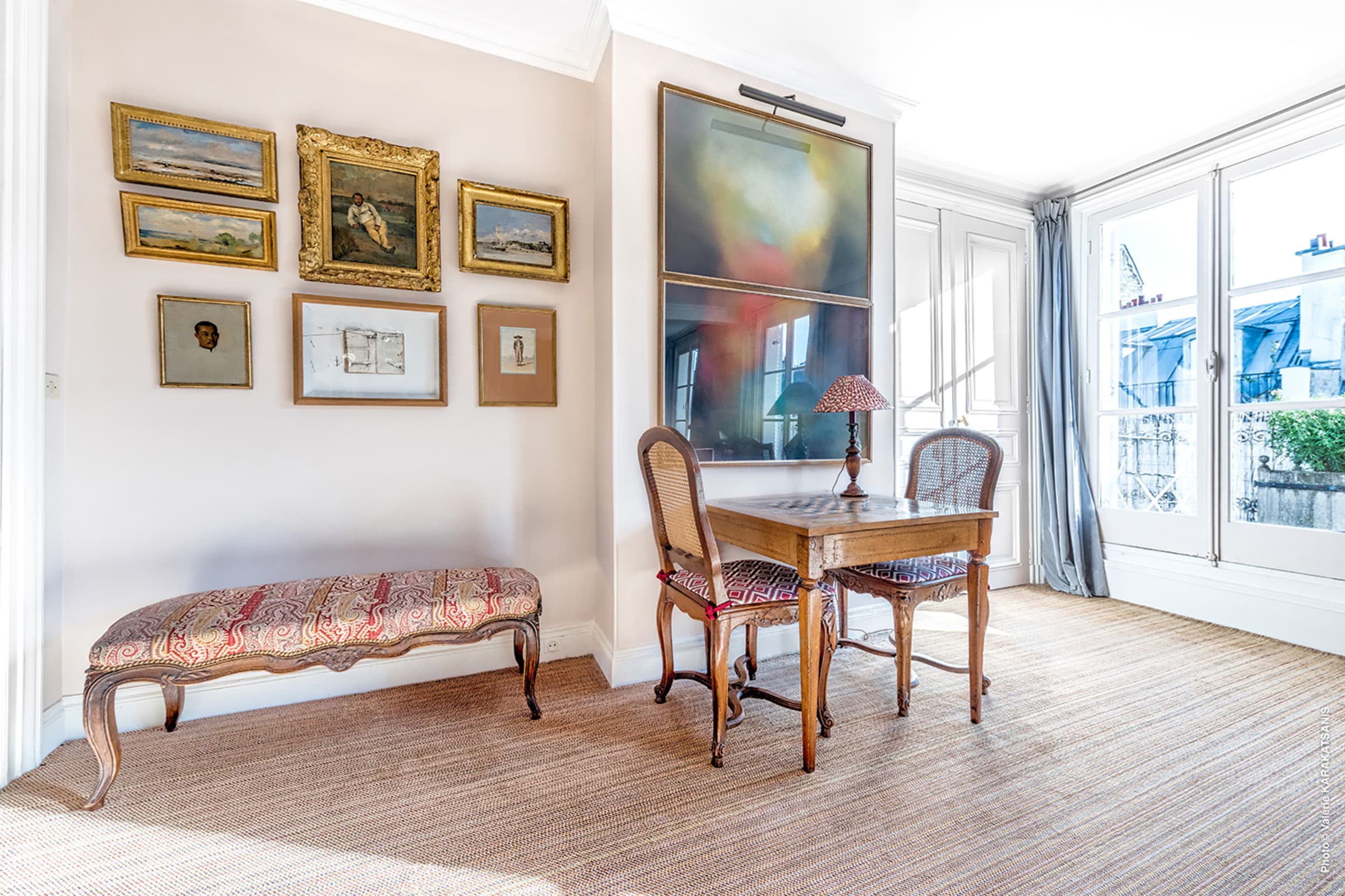 Located in the heart of the prestigious Gros Caillou district, this enchanting apartment is a perfect choice for an unforgettable French retreat. Set within a historic bourgeois building, the residence boasts unique features such as antique embellishments and captivating wall paintings, imparting it with distinctive charm. Whether you're enjoying a good book in the generously-sized living room, taking in views of the Eiffel Tower from the dining table, or savoring coffee on the balcony while capturing the city's atmosphere, you can truly experience the essence of French living as our guest.
