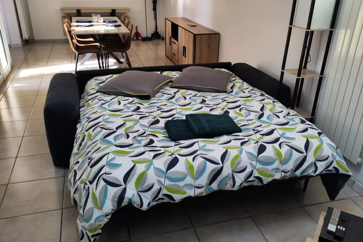 The living room has a 160x190 sofa bed and an extra mattress to guarantee you absolute comfort during your moments of relaxation after a day of walking.