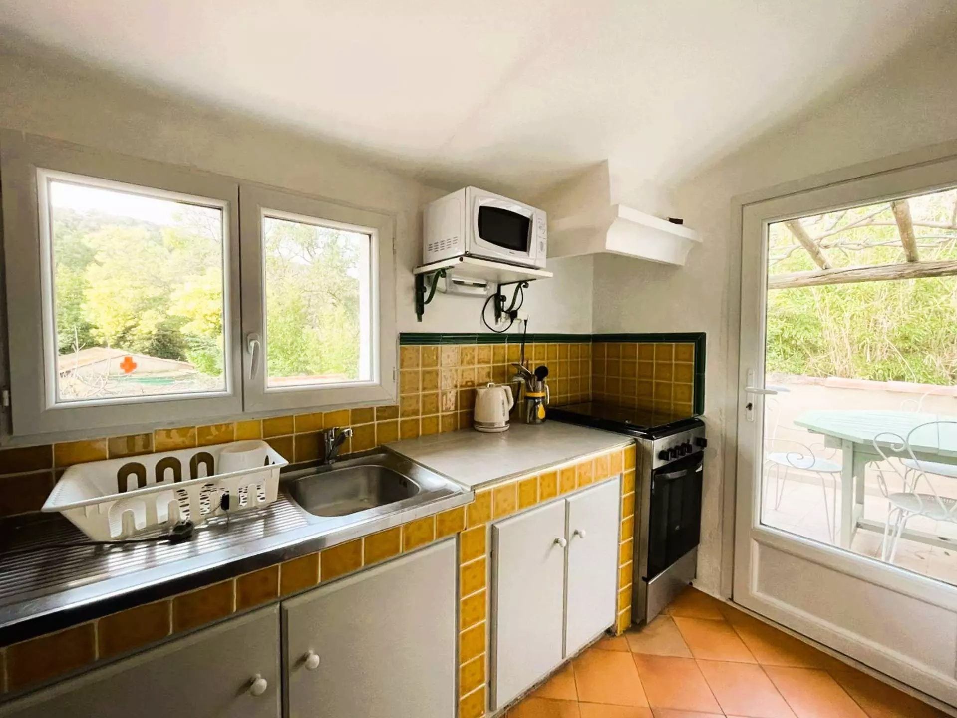 The apartment welcomes you with its typical and warm decor: terracotta tiles, yellow Provençal earthenware in the kitchen, and exposed beams. It's a place with character, ideal for a complete escape.