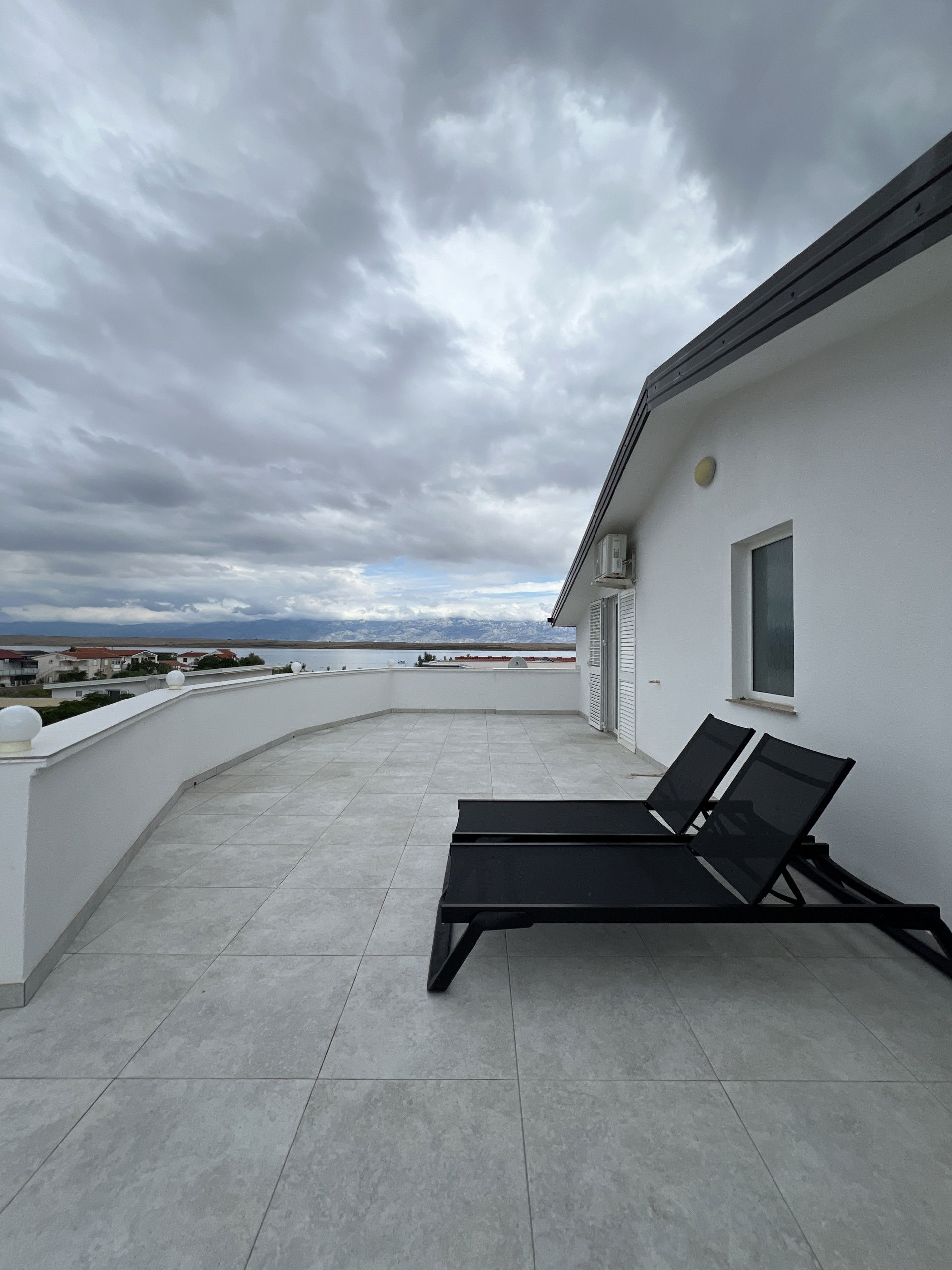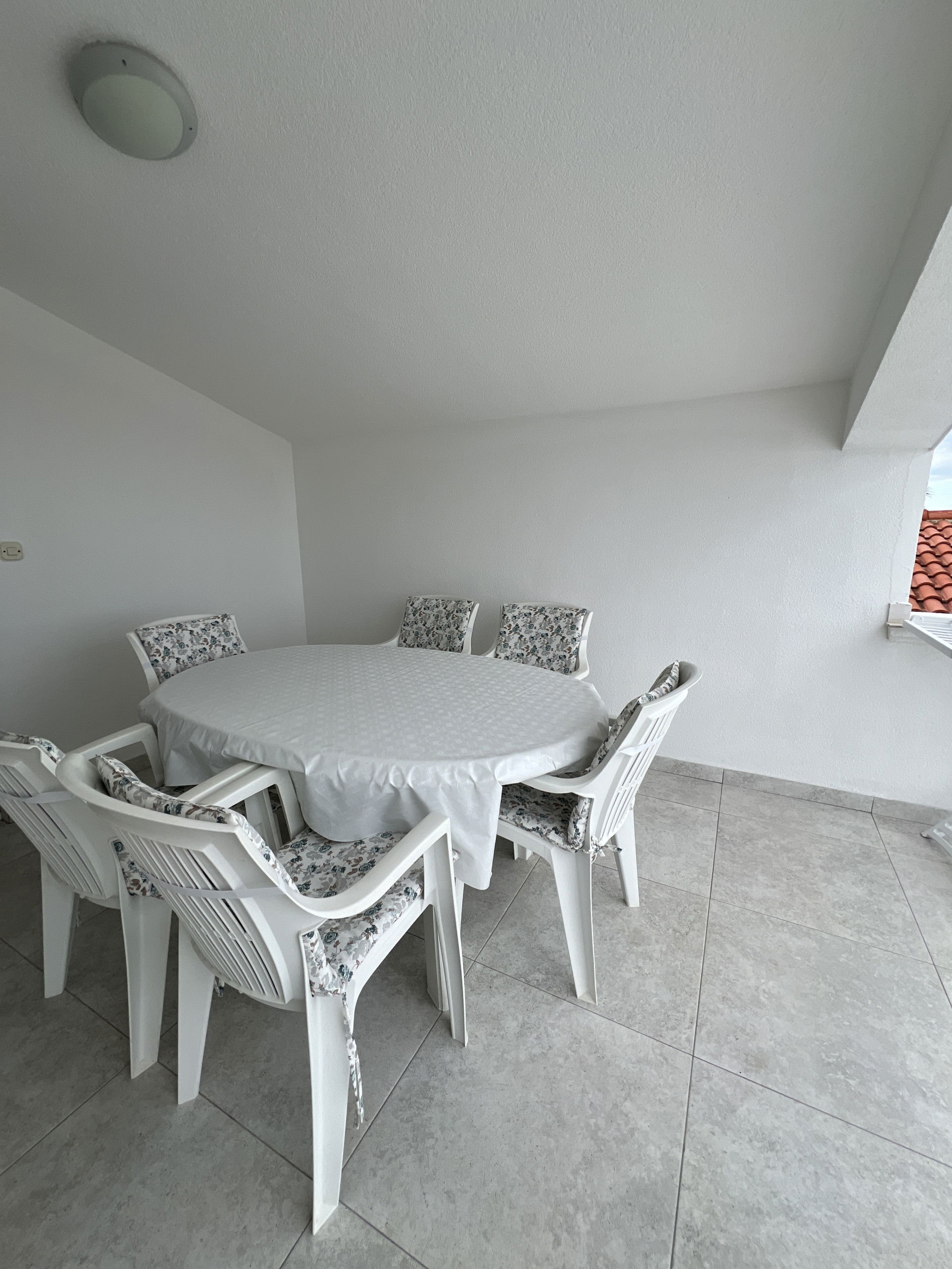 The apartment is modern and functionally furnished and provides everything you need for a pleasant stay. It consists of two bedrooms with a double bed, a fully equipped kitchen, a comfortable living room with a sofa bed for two people, a bathroom with a bathtub and a balcony/terrace where you can drink your morning coffee with the smell of the sea. It is air-conditioned, has free Wi-Fi, TV and 2 parking spaces.