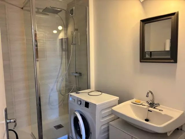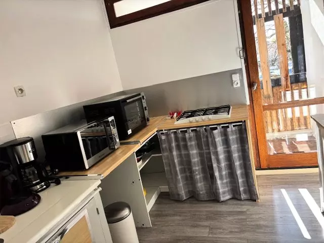 The accommodation includes a shower room, a separate toilet, and a fully equipped kitchen for your stay: four gas hobs, a Senseo coffee maker, a filter coffee maker, a refrigerator with freezer compartment, a microwave, and a grill oven. A washing machine is also provided.