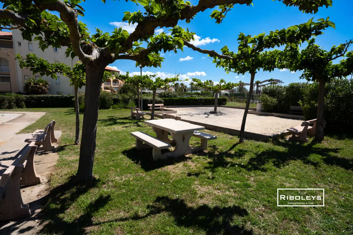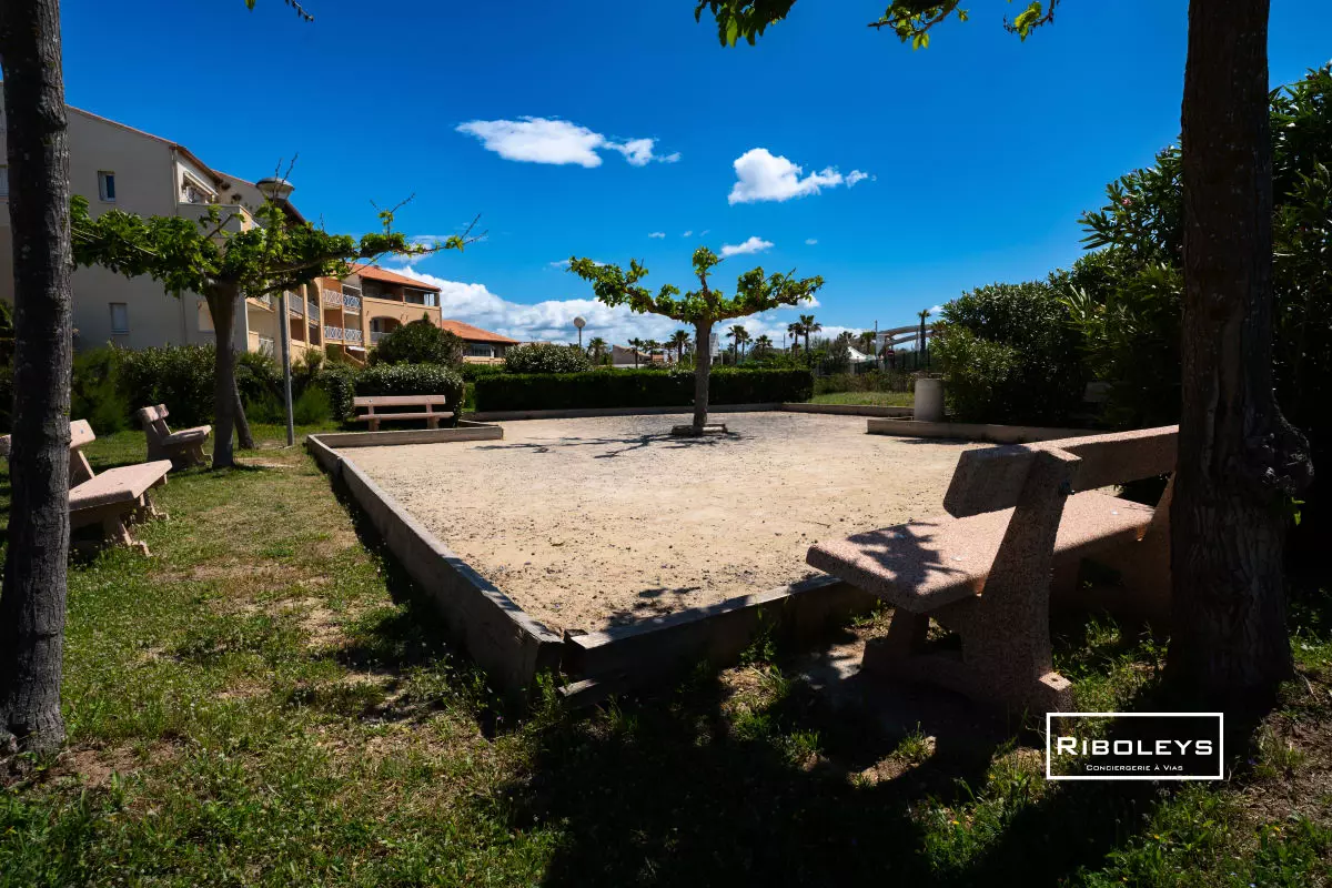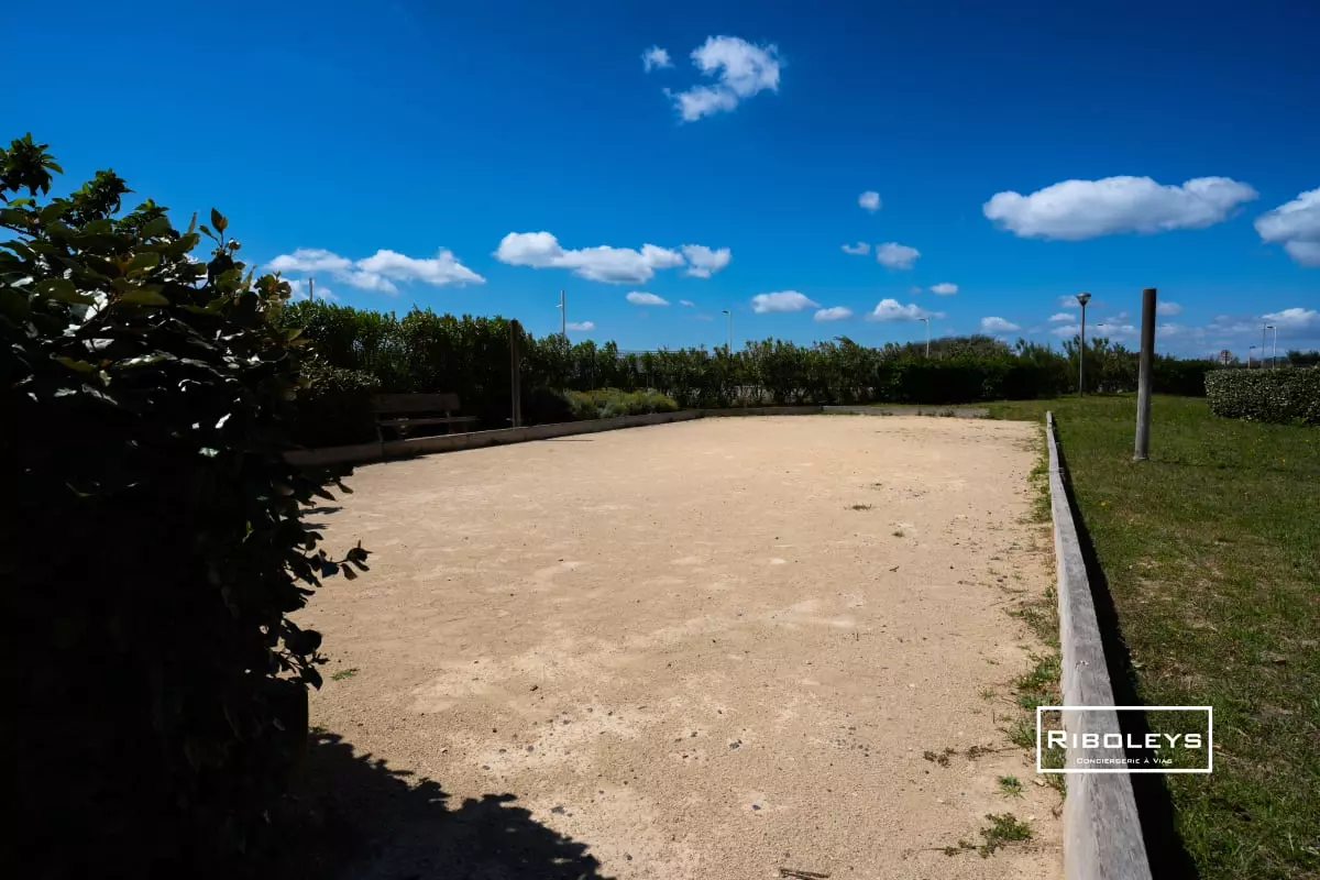 The residence offers a communal swimming pool open from May 7th to September 29th. A lifeguard is present daily from July 13th to August 18th. You will also have access to a secure bicycle storage area, a charcoal barbecue in the communal areas, and a pétanque court.