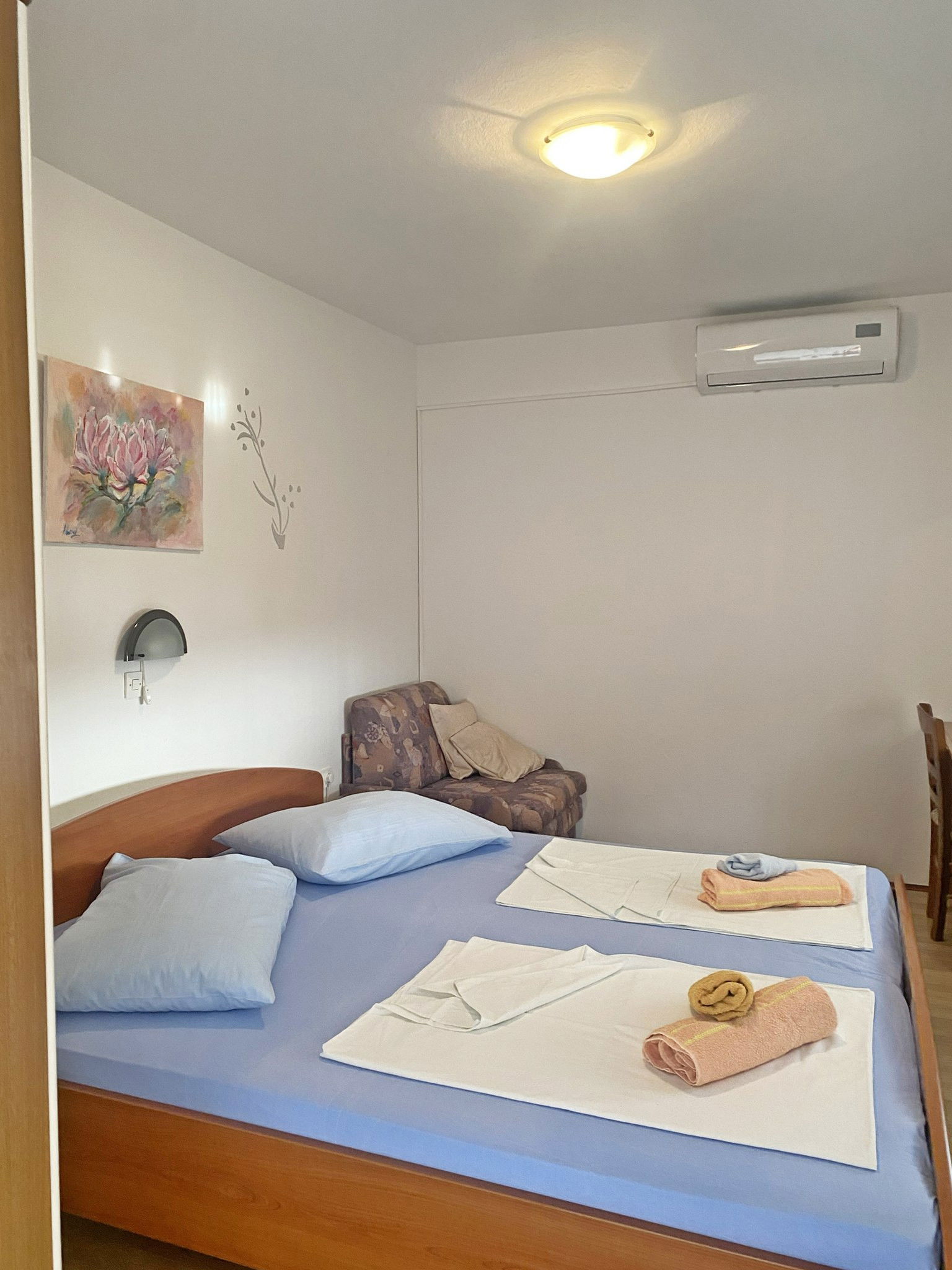 The true highlight of the apartment is the large private terrace with a beautiful sea view. It’s the perfect place to enjoy your morning coffee, long summer dinners, or a glass of wine at sunset while overlooking the Adriatic.