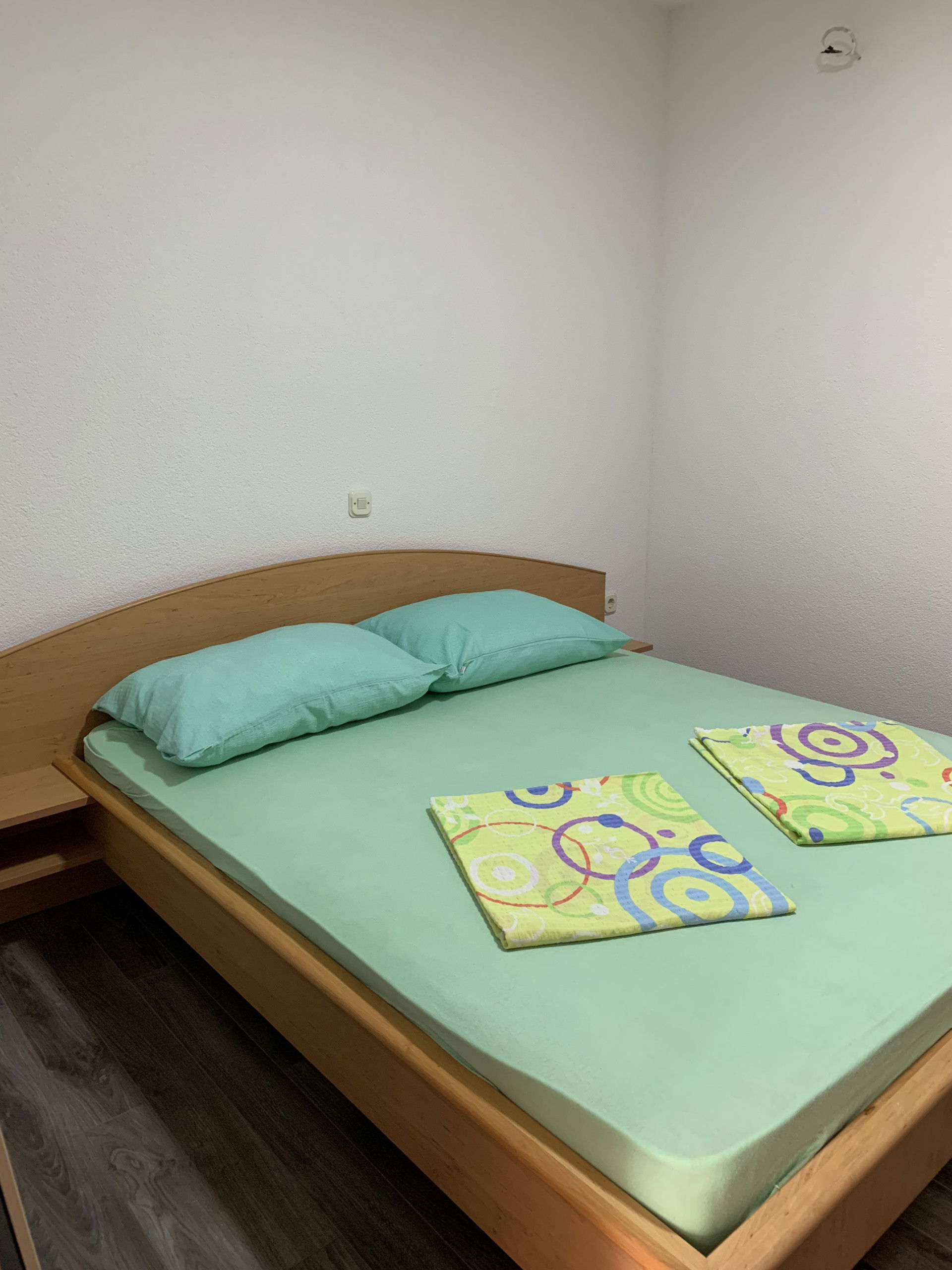 The apartment is modern and functionally furnished and provides everything you need for a pleasant stay. It consists of 2 bedrooms with double beds, a fully equipped kitchen, a comfortable living room with a sofa bed for an additional two people, a bathroom with a shower and a balcony/terrace where you can drink your morning coffee with the smell of the sea. It is air-conditioned, has free Wi-Fi, a TV and 1 parking space provided.