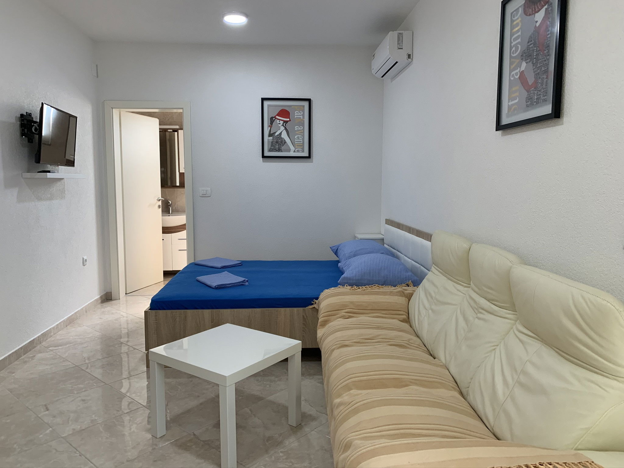 The apartment is modern and functionally furnished and provides everything you need for a pleasant stay. It consists of a double bed, a fully equipped kitchen, a comfortable living room with a sofa, a bathroom with a shower and a balcony/terrace where you can drink your morning coffee with the smell of the sea. It is air-conditioned, has free Wi-Fi, a TV and 1 parking space provided.