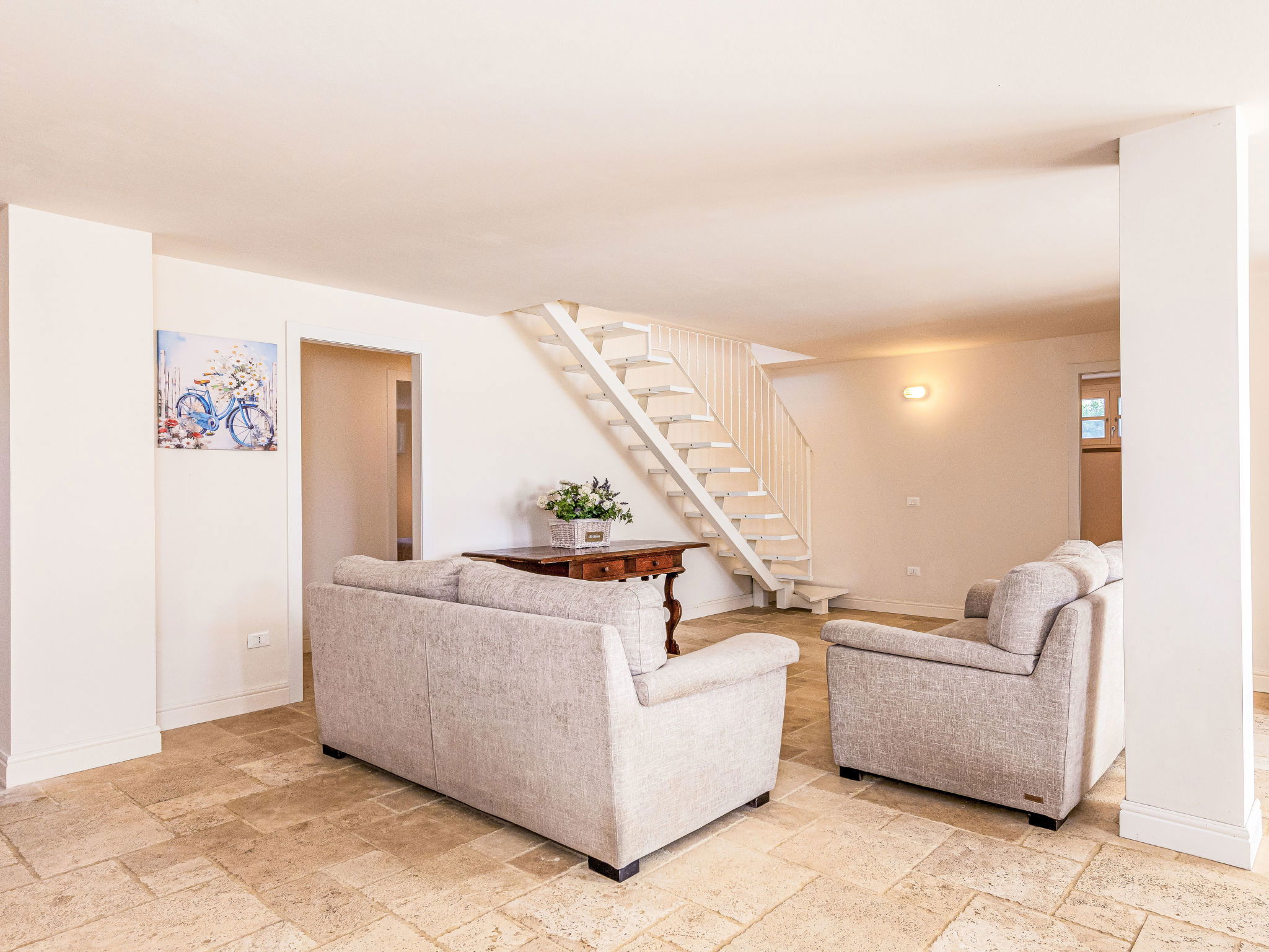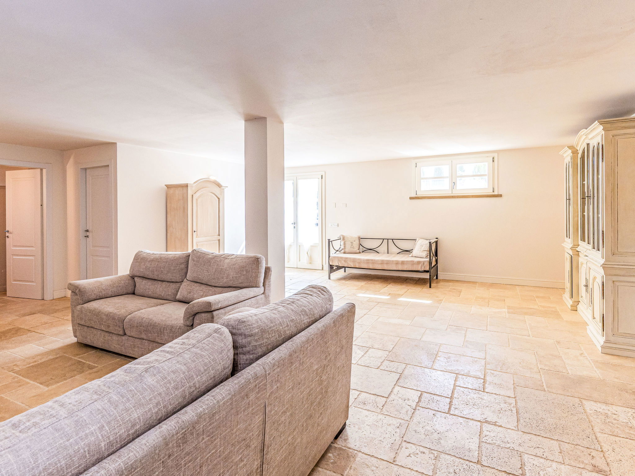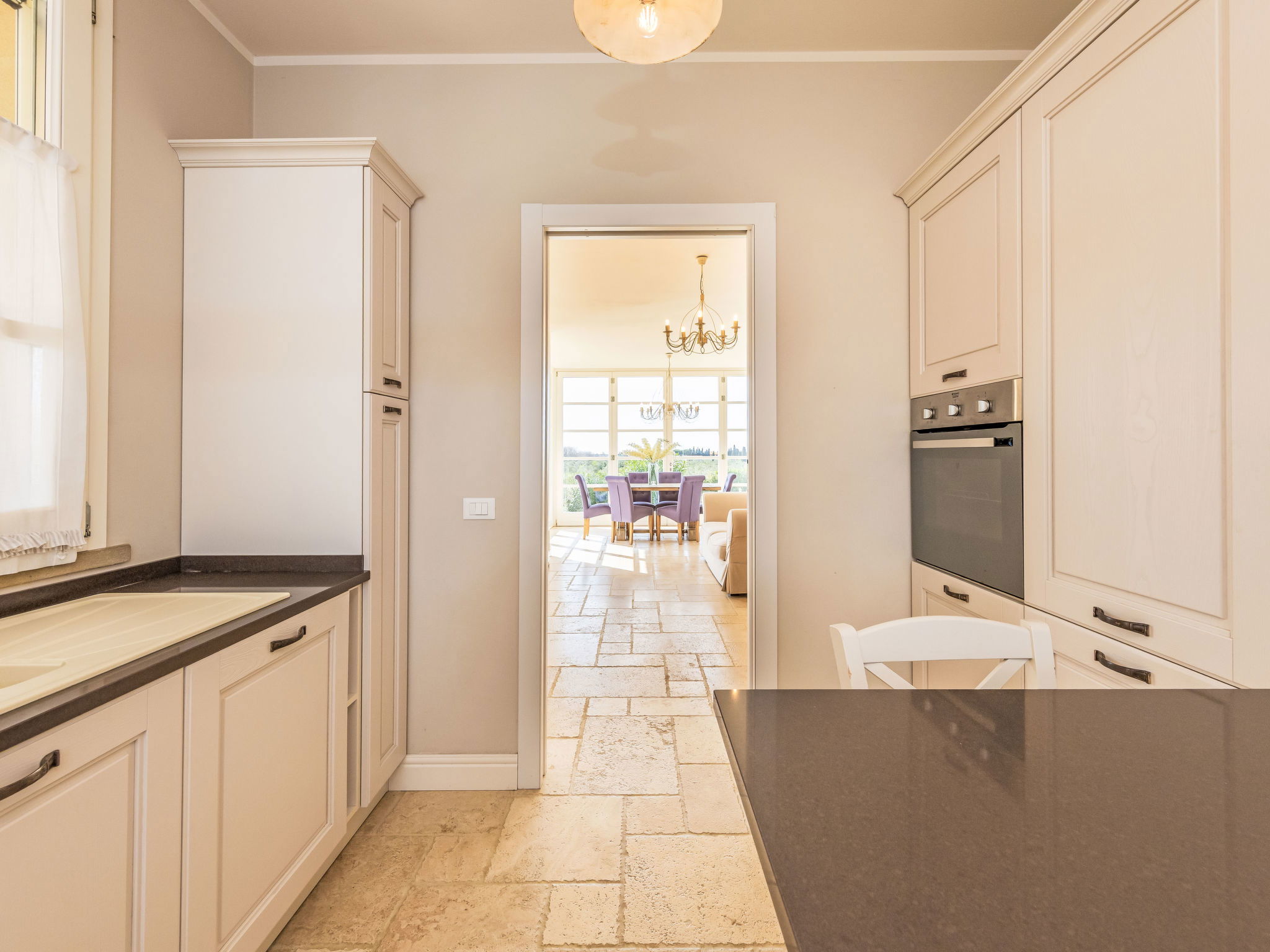 5-room villa 150 m2. Spacious, comfortable and tasteful furnishings: living/dining room with panoramic window with 1 double sofabed, dining table and air conditioning. Exit to the veranda. 1 room with 1 double bed. 1 room with 1 double bed. Exit to the loggia. Open kitchen (dishwasher, Gas stove, 4 gas rings, toaster, kettle, electric coffee machine). Shower/bidet/WC. Electric heating, gas heating, air-conditioning. On the lower ground floor: 1 room with 1 double bed. 1 room with 2 beds. 2 showers/bidet/WC. Terrace 70 m2, roofed. Terrace furniture, box-room. Beautiful panoramic view of the swimming pool and the countryside. Facilities: washing machine, dryer, iron, mosquito net, children's high chair, baby cot, hair dryer. Internet (WiFi, free). Parking. Please note: non-smokers only. 2 pets/ dogs allowed. Smoke alarm, fire extinguisher. IT049001B4IKBDUL7V
