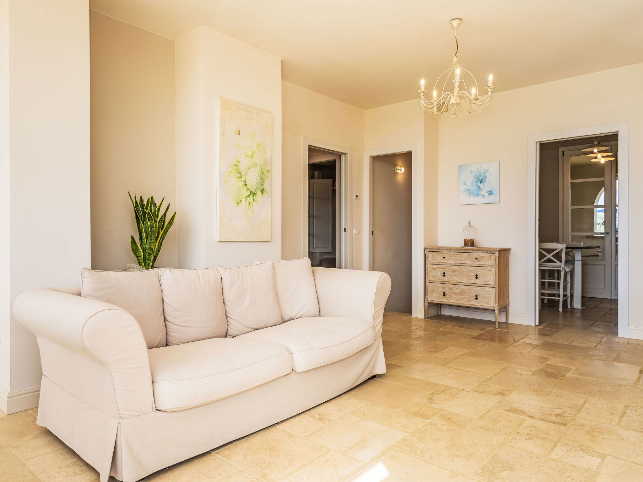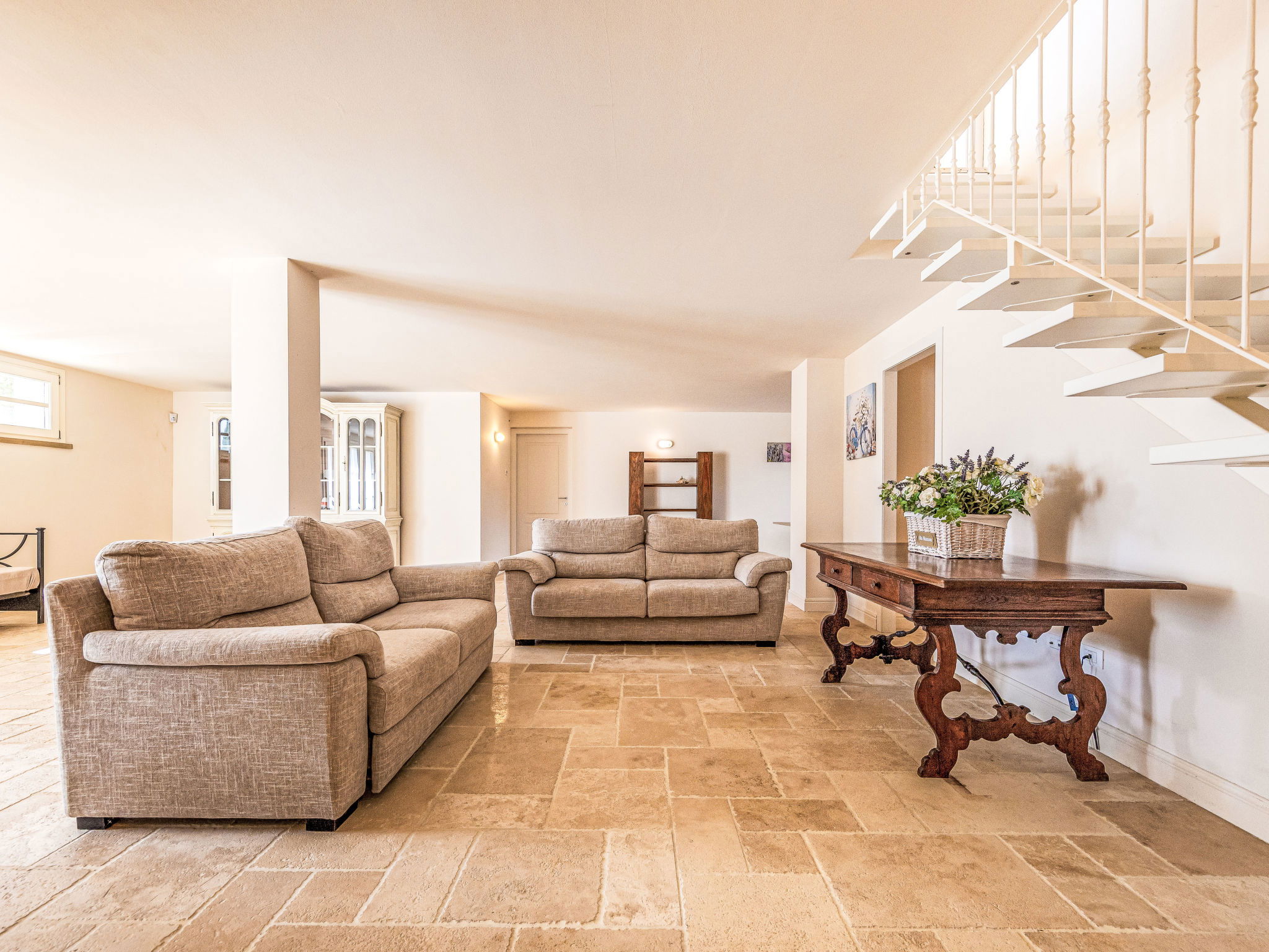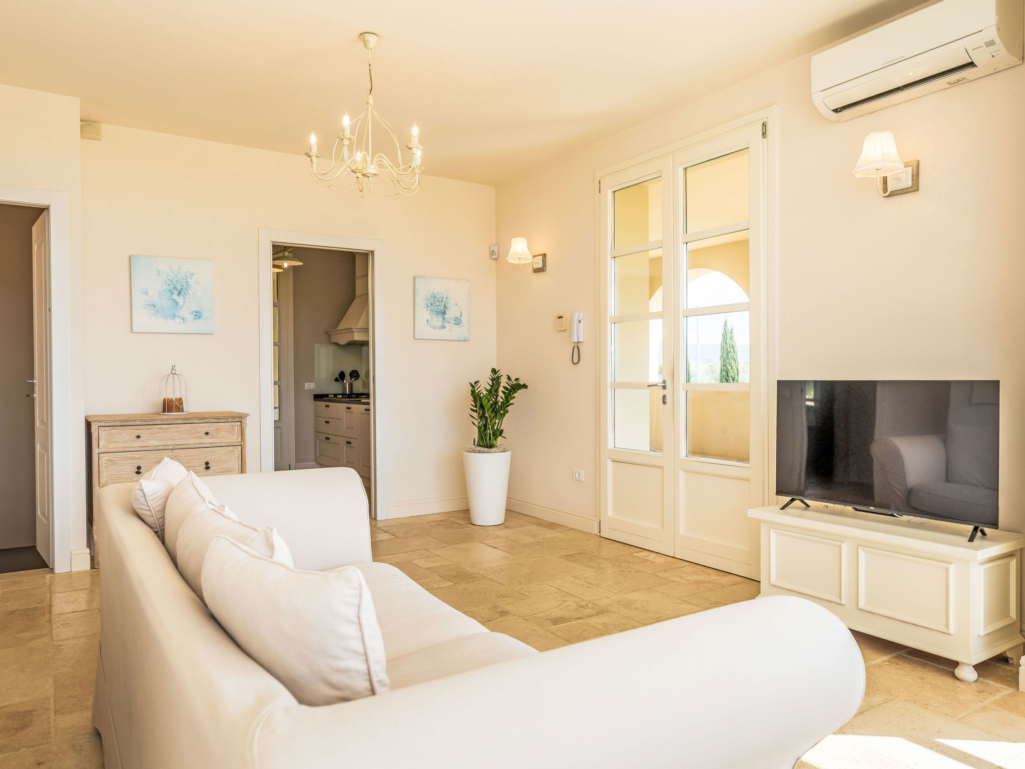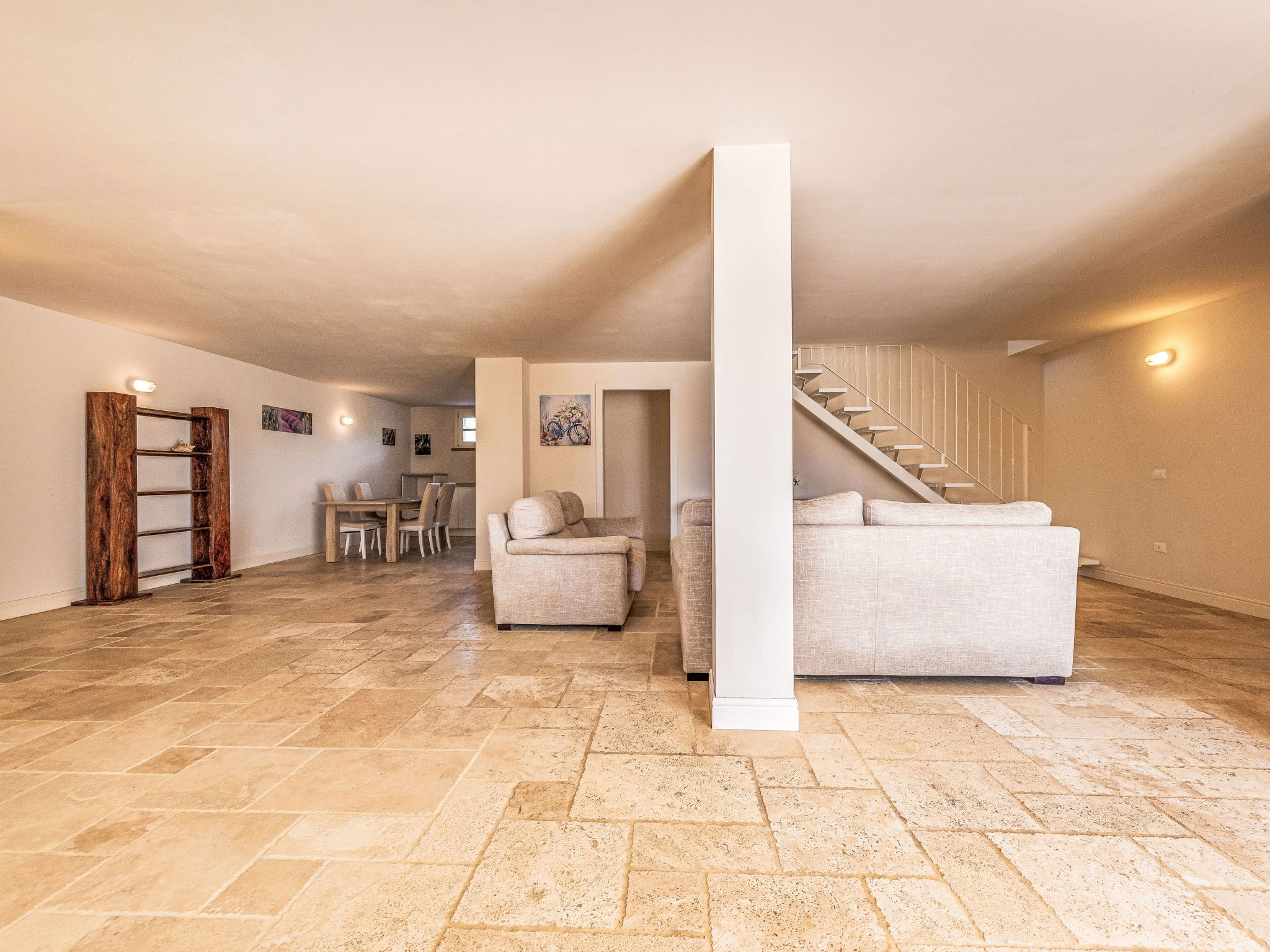 5-room villa 150 m2. Spacious, comfortable and tasteful furnishings: living/dining room with panoramic window with 1 double sofabed, dining table and air conditioning. Exit to the veranda. 1 room with 1 double bed. 1 room with 1 double bed. Exit to the loggia. Open kitchen (dishwasher, Gas stove, 4 gas rings, toaster, kettle, electric coffee machine). Shower/bidet/WC. Electric heating, gas heating, air-conditioning. On the lower ground floor: 1 room with 1 double bed. 1 room with 2 beds. 2 showers/bidet/WC. Terrace 70 m2, roofed. Terrace furniture, box-room. Beautiful panoramic view of the swimming pool and the countryside. Facilities: washing machine, dryer, iron, mosquito net, children's high chair, baby cot, hair dryer. Internet (WiFi, free). Parking. Please note: non-smokers only. 2 pets/ dogs allowed. Smoke alarm, fire extinguisher. IT049001B4IKBDUL7V