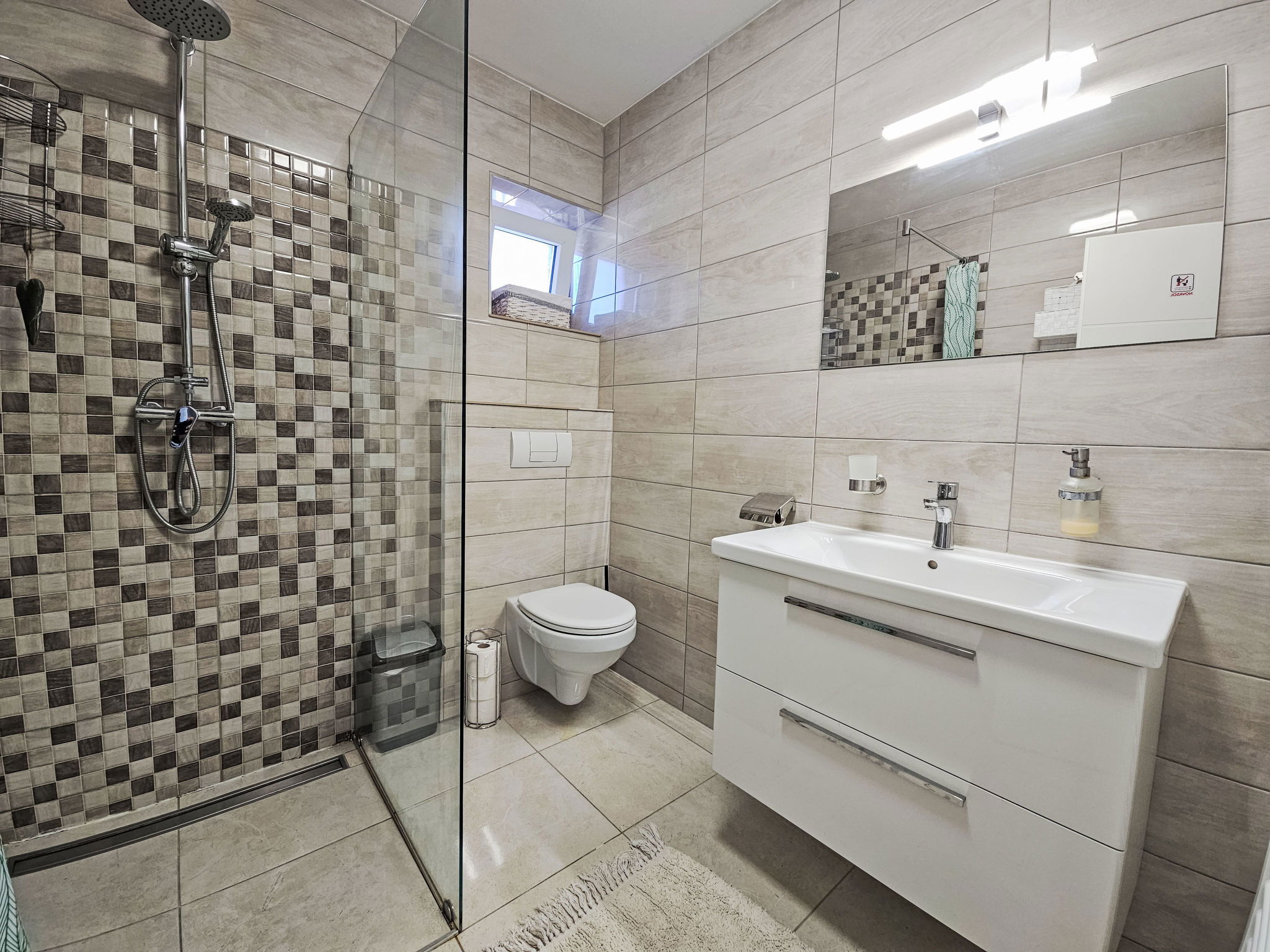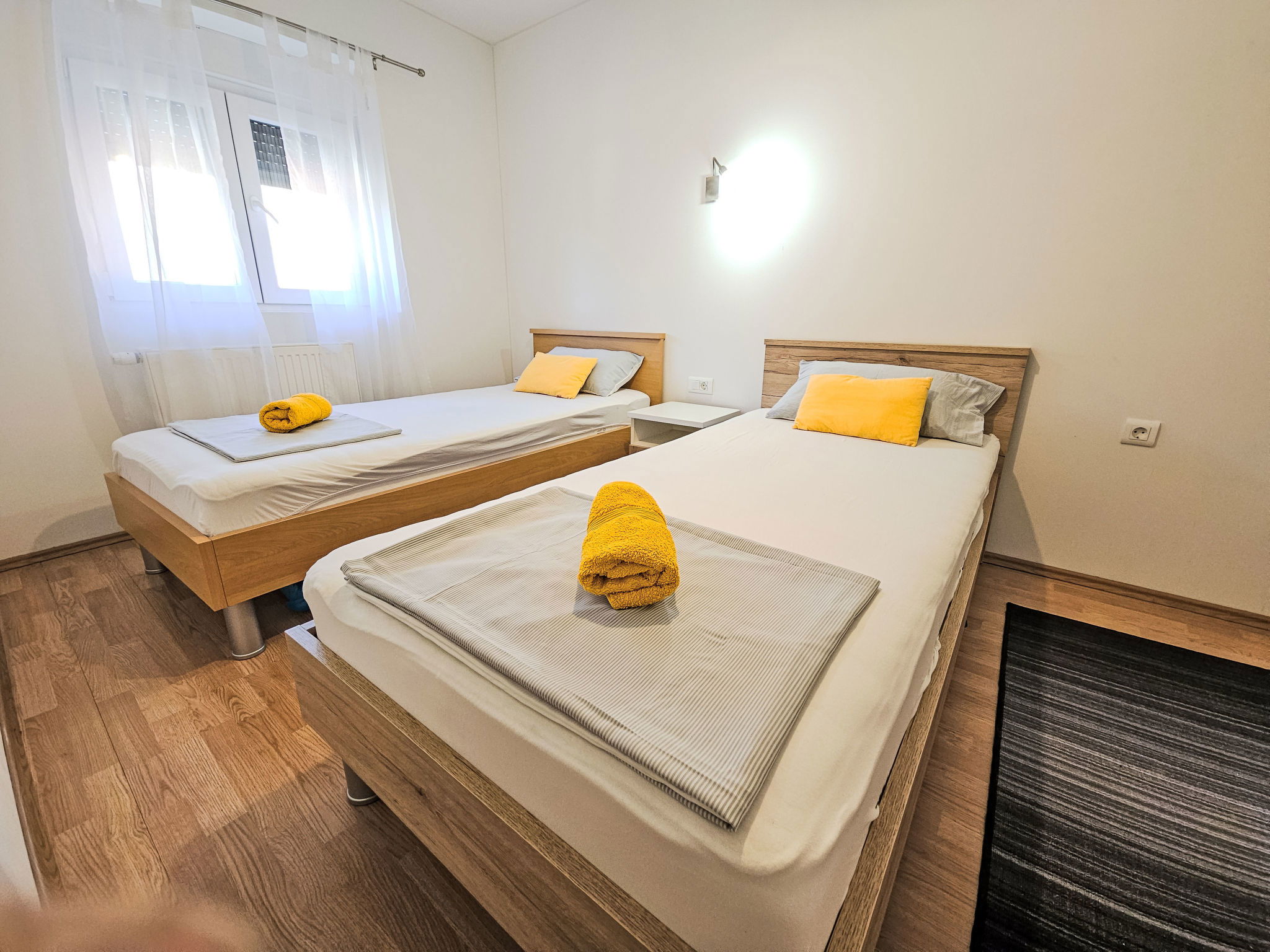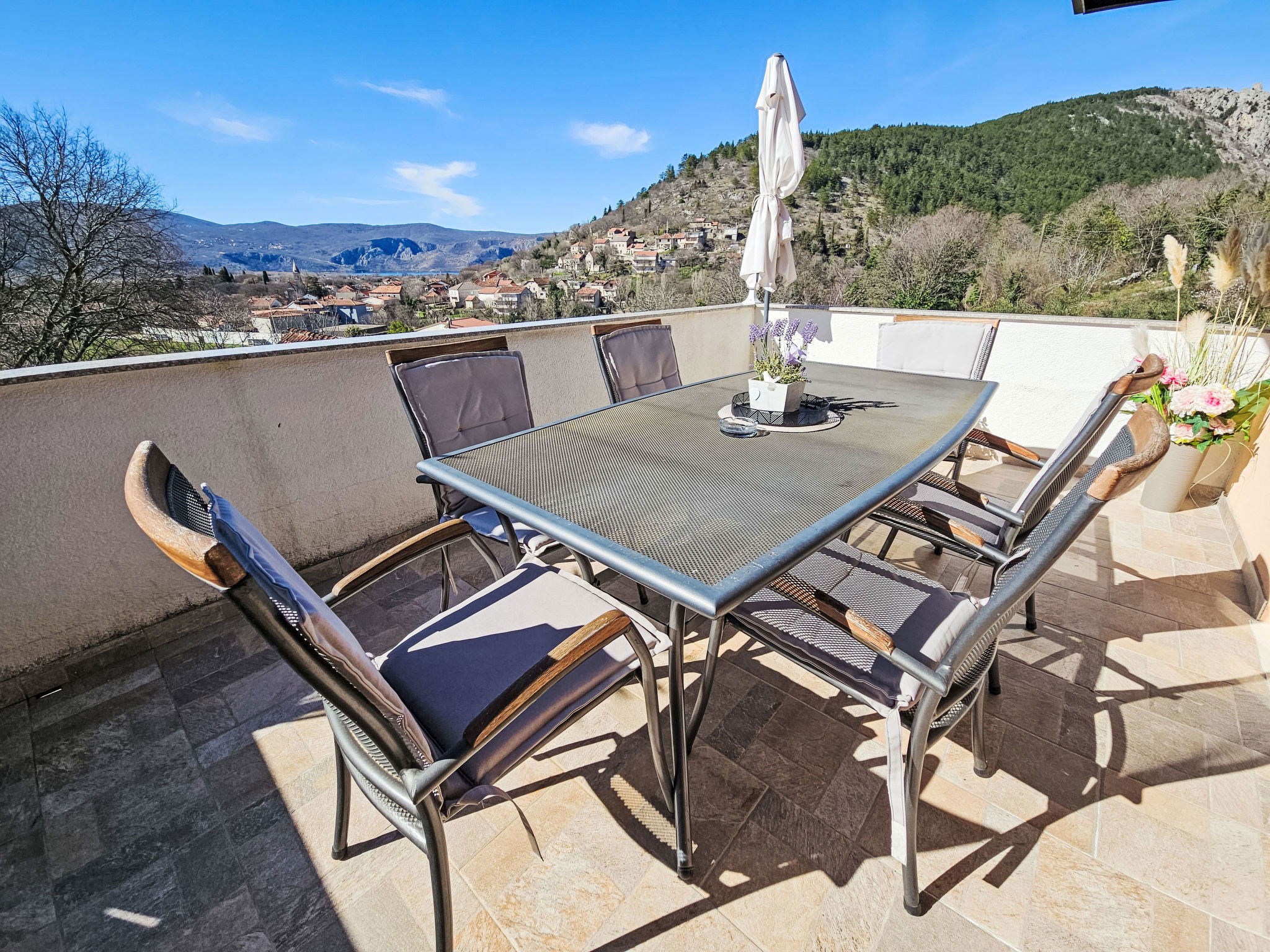 Donji Proložac 5 km from Imotski: 2-family house "Paz". In a quiet, sunny position, 29 km from the sea, 29 km from the beach, in a cul-de-sac. Private: property 700 m2 (fenced), natural garden, swimming pool angular (8 x 4 m, depth 150 cm, seasonal availability: 01.May. - 01.Oct.). Outdoor shower, hot tub, terrace (20 m2), garden furniture, barbecue, children's playground. In the house: internet access, washing machine. Parking (for 3 cars) at the house on the premises. Shop 500 m, restaurant 1 km, bus stop 500 m, pebble beach 29 km, rocky beach 29 km. Well-known lakes can easily be reached: Modro jezero 5 km, Crveno jezero 5 km.