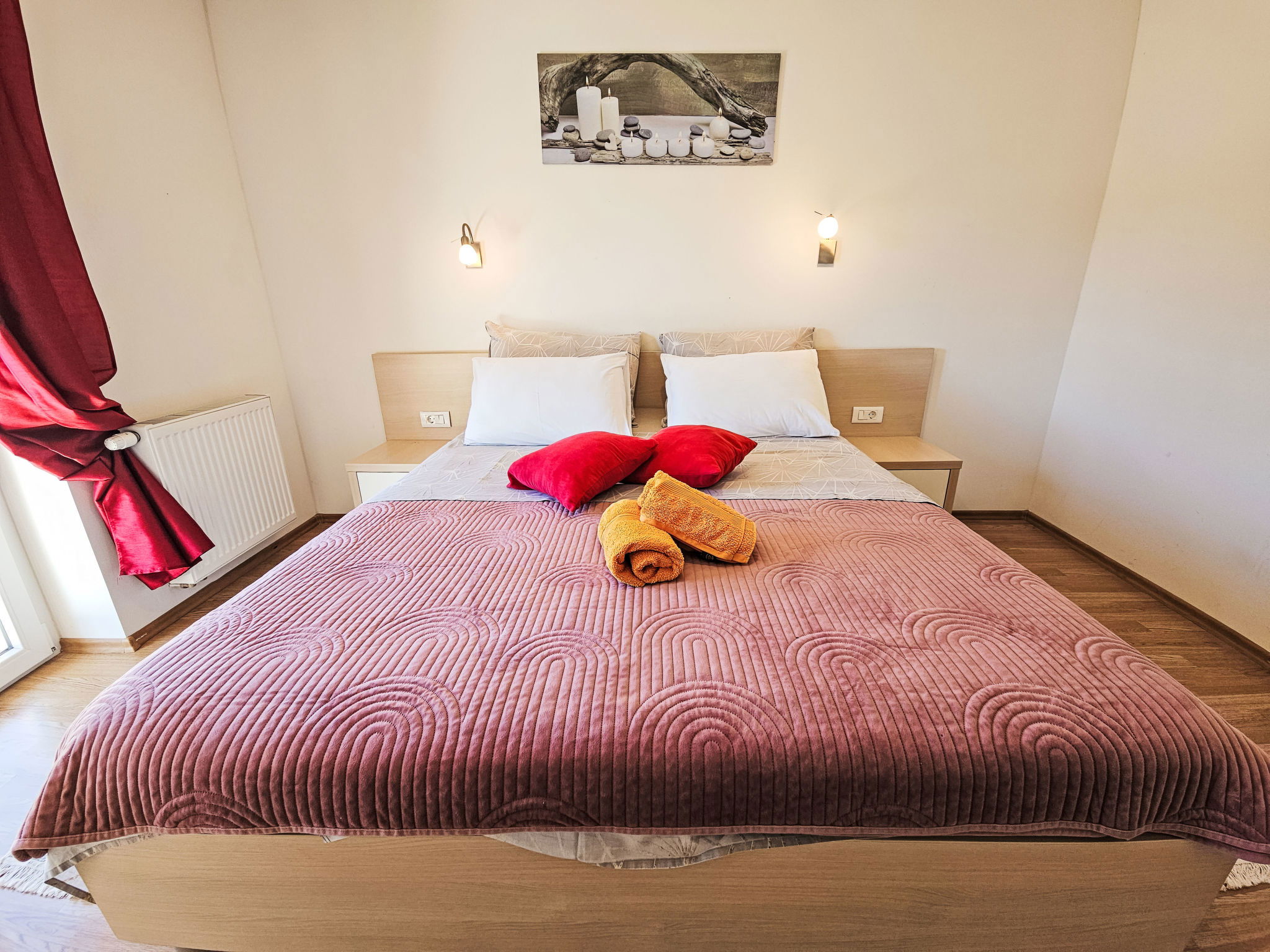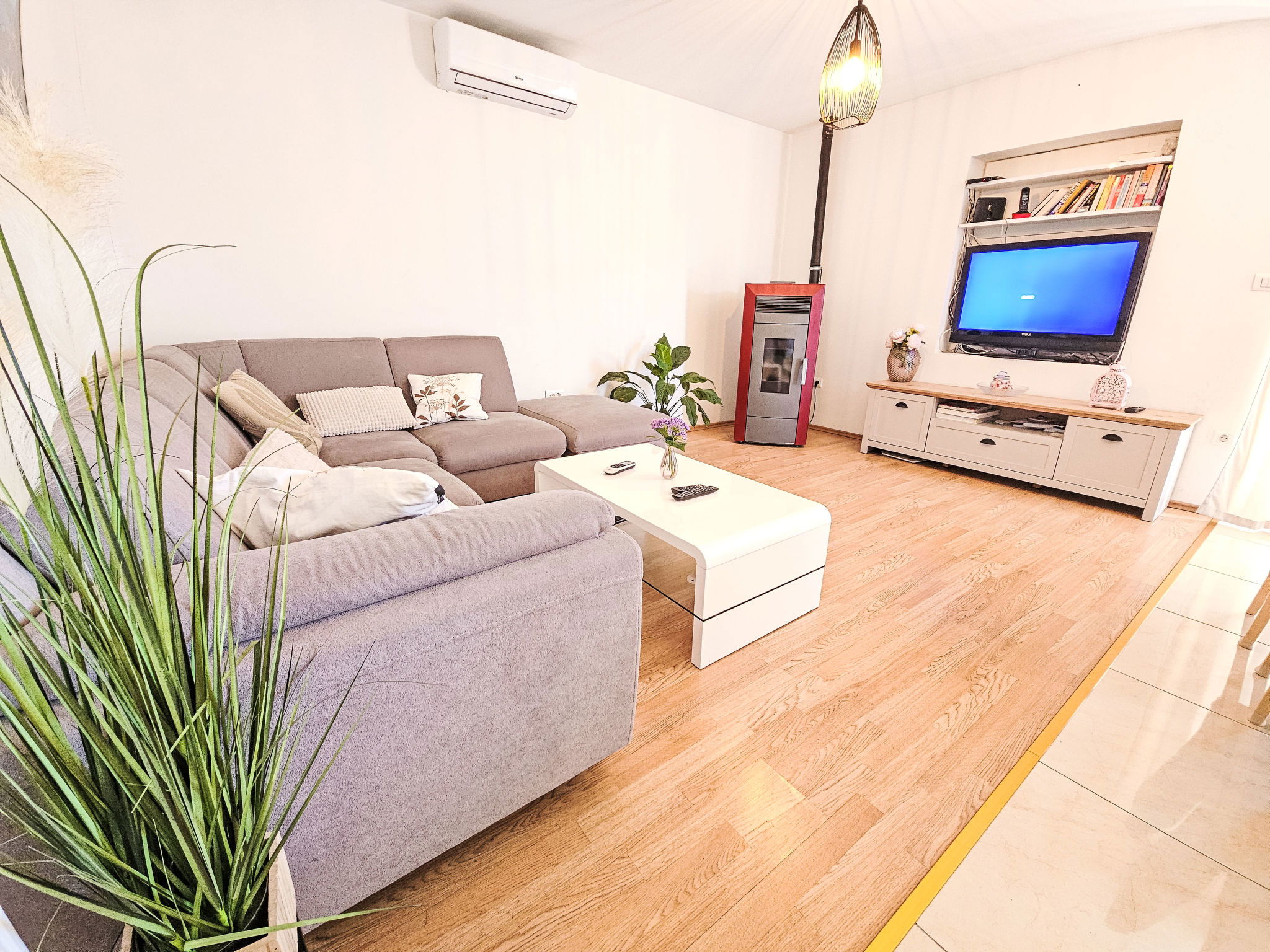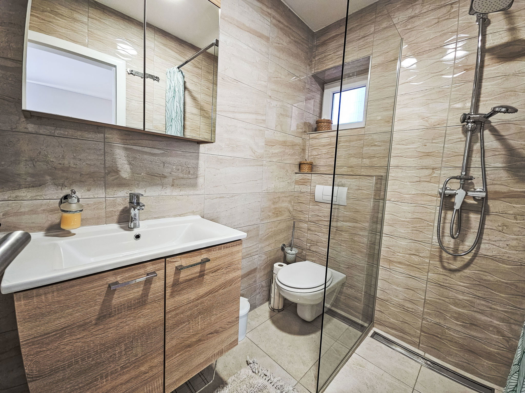 Donji Proložac 5 km from Imotski: 2-family house "Paz". In a quiet, sunny position, 29 km from the sea, 29 km from the beach, in a cul-de-sac. Private: property 700 m2 (fenced), natural garden, swimming pool angular (8 x 4 m, depth 150 cm, seasonal availability: 01.May. - 01.Oct.). Outdoor shower, hot tub, terrace (20 m2), garden furniture, barbecue, children's playground. In the house: internet access, washing machine. Parking (for 3 cars) at the house on the premises. Shop 500 m, restaurant 1 km, bus stop 500 m, pebble beach 29 km, rocky beach 29 km. Well-known lakes can easily be reached: Modro jezero 5 km, Crveno jezero 5 km.