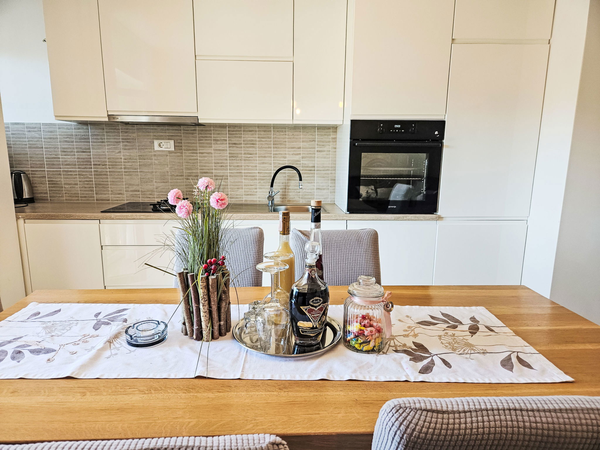 4-room apartment 100 m2 on 1st floor. Living/dining room with satellite TV (flat screen), air conditioning. Exit to the balcony. 1 room with 1 french bed (160 cm, length 200 cm), shower/WC. 1 room with 1 french bed (160 cm, length 200 cm). Exit to the balcony. 1 room with 2 beds (90 cm, length 200 cm). Open kitchen (4 hot plates, oven, dishwasher, Gas stove, toaster, microwave, freezer, electric coffee machine). Shower/WC. No heating option. Balcony 15 m2. Balcony furniture, deck chairs (5). View of the swimming pool and the countryside. Facilities: washing machine, children's high chair, baby cot. Internet (WiFi, free). 1 pet/ dog allowed.