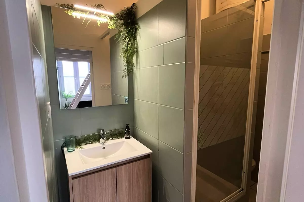 Public parking is available near the property for your convenience. You will also find free parking spaces on the adjacent Rue Dorgère, a practical solution for easy parking during your stay.
