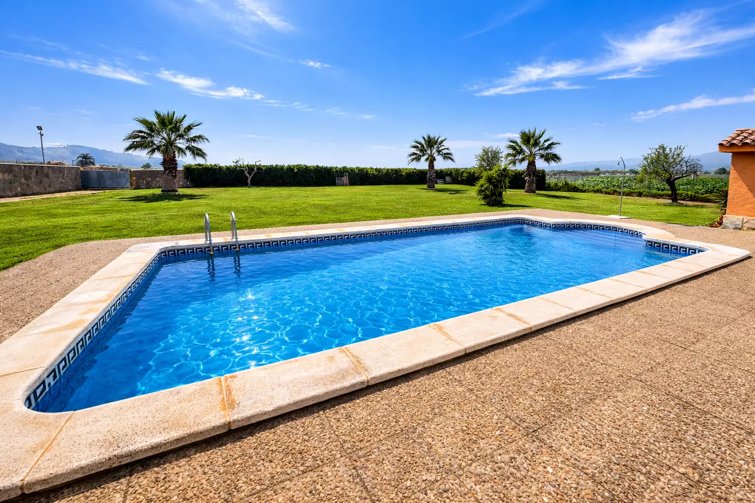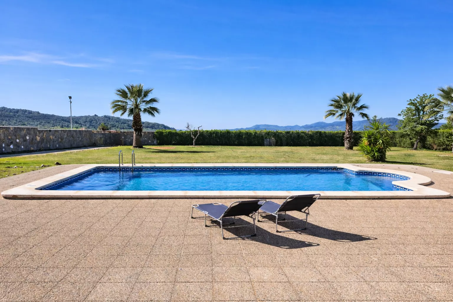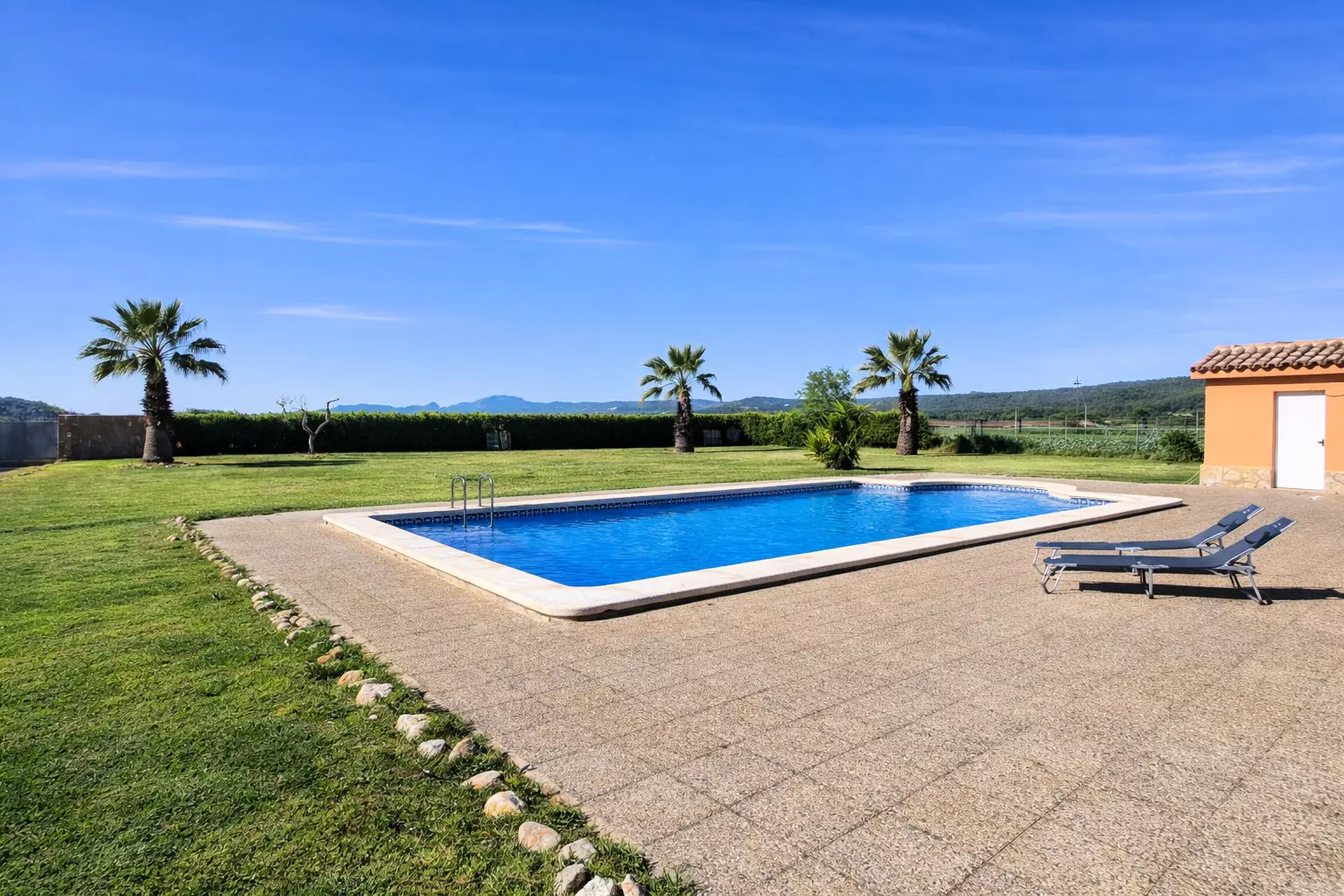 It has a garden, garden furniture, fence, terrace, washing machine, barbecue, fireplace, iron, internet access (Wifi), electric heating, private swimming pool, outdoor parking in the same building, 3 fans, 1 television, satellite TV (Languages: Spanish), radio.