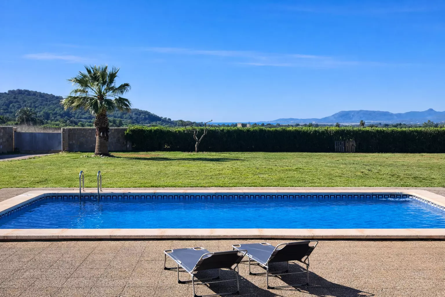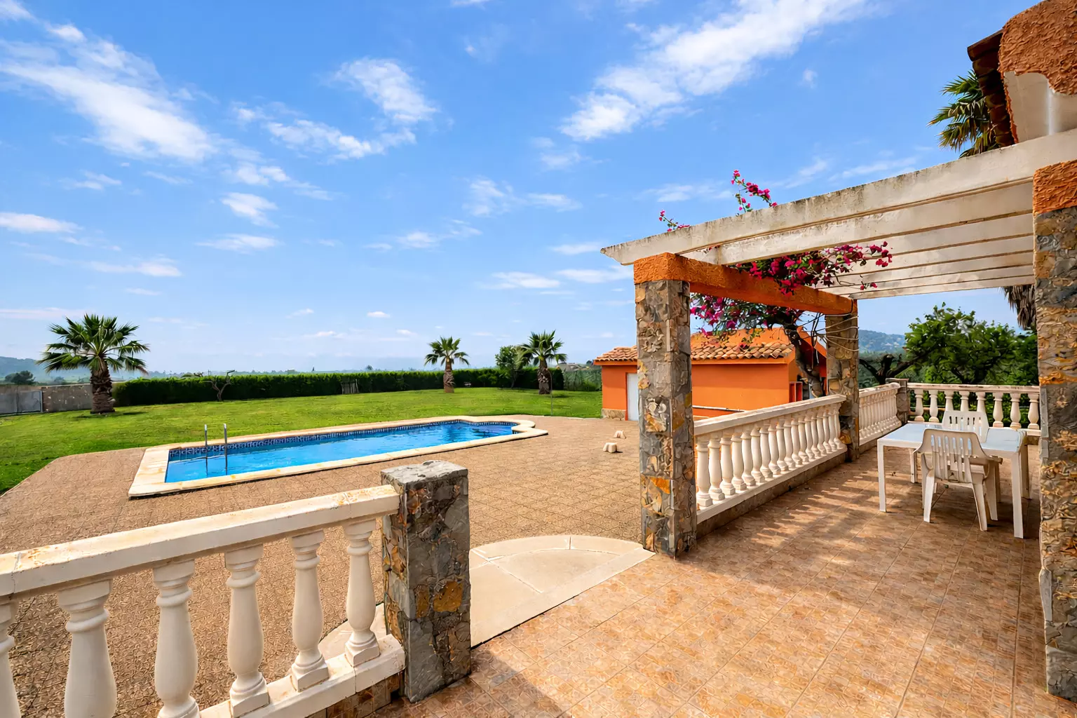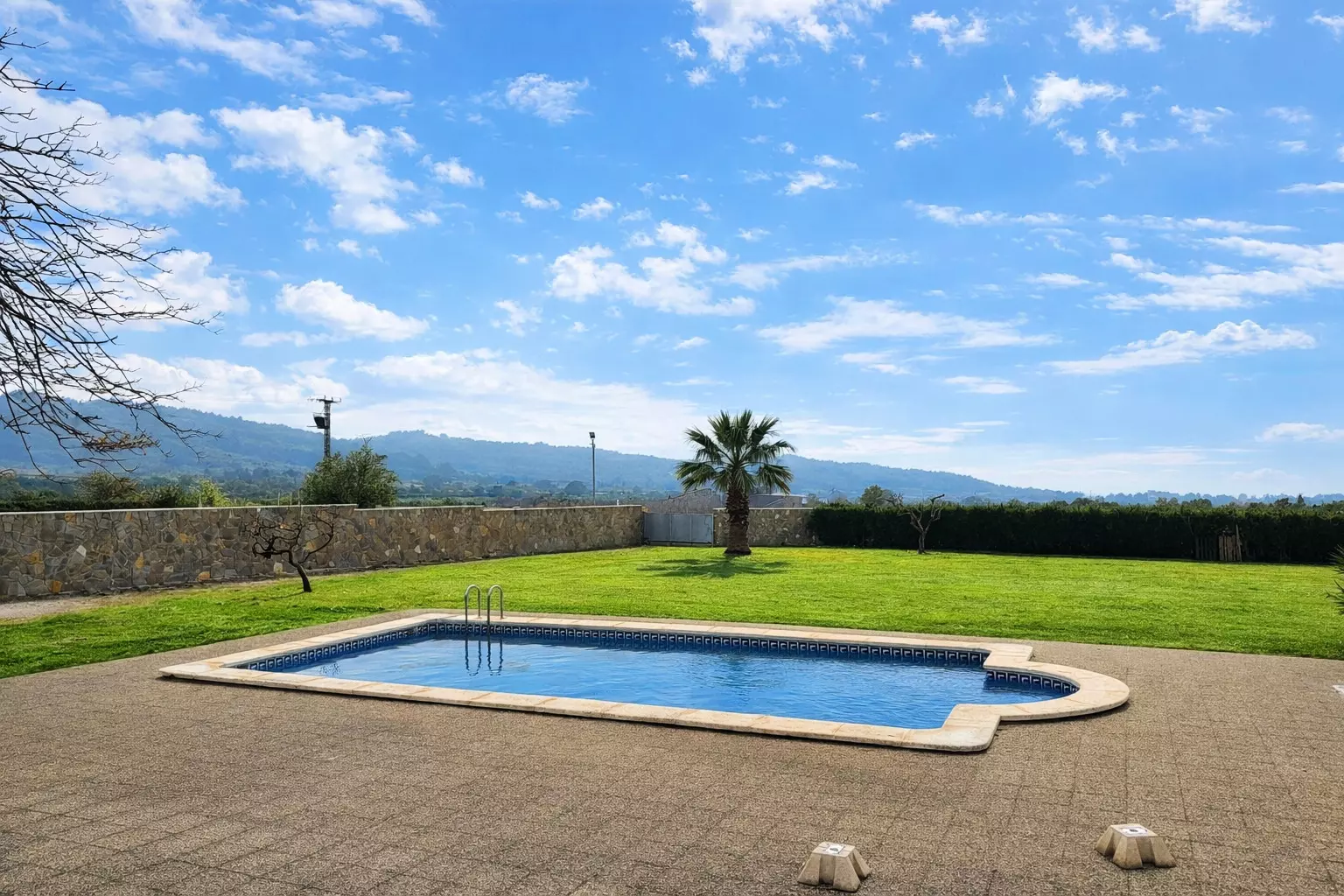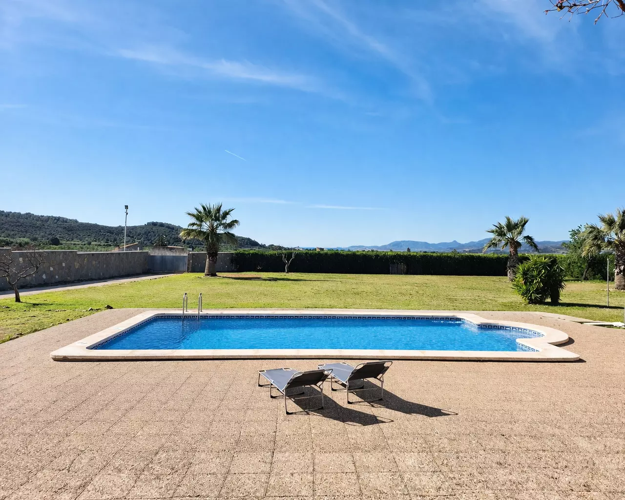 It has a garden, garden furniture, fence, terrace, washing machine, barbecue, fireplace, iron, internet access (Wifi), electric heating, private swimming pool, outdoor parking in the same building, 3 fans, 1 television, satellite TV (Languages: Spanish), radio.