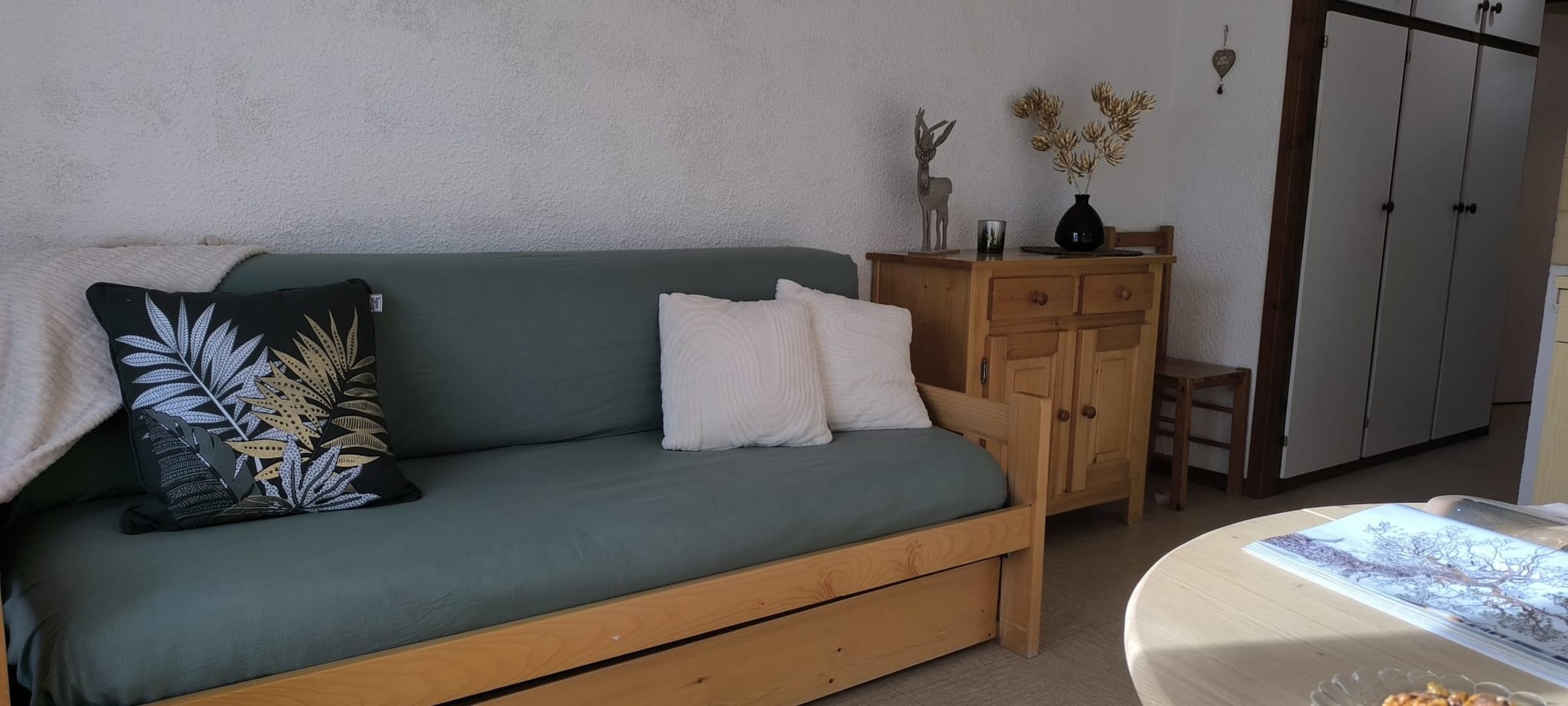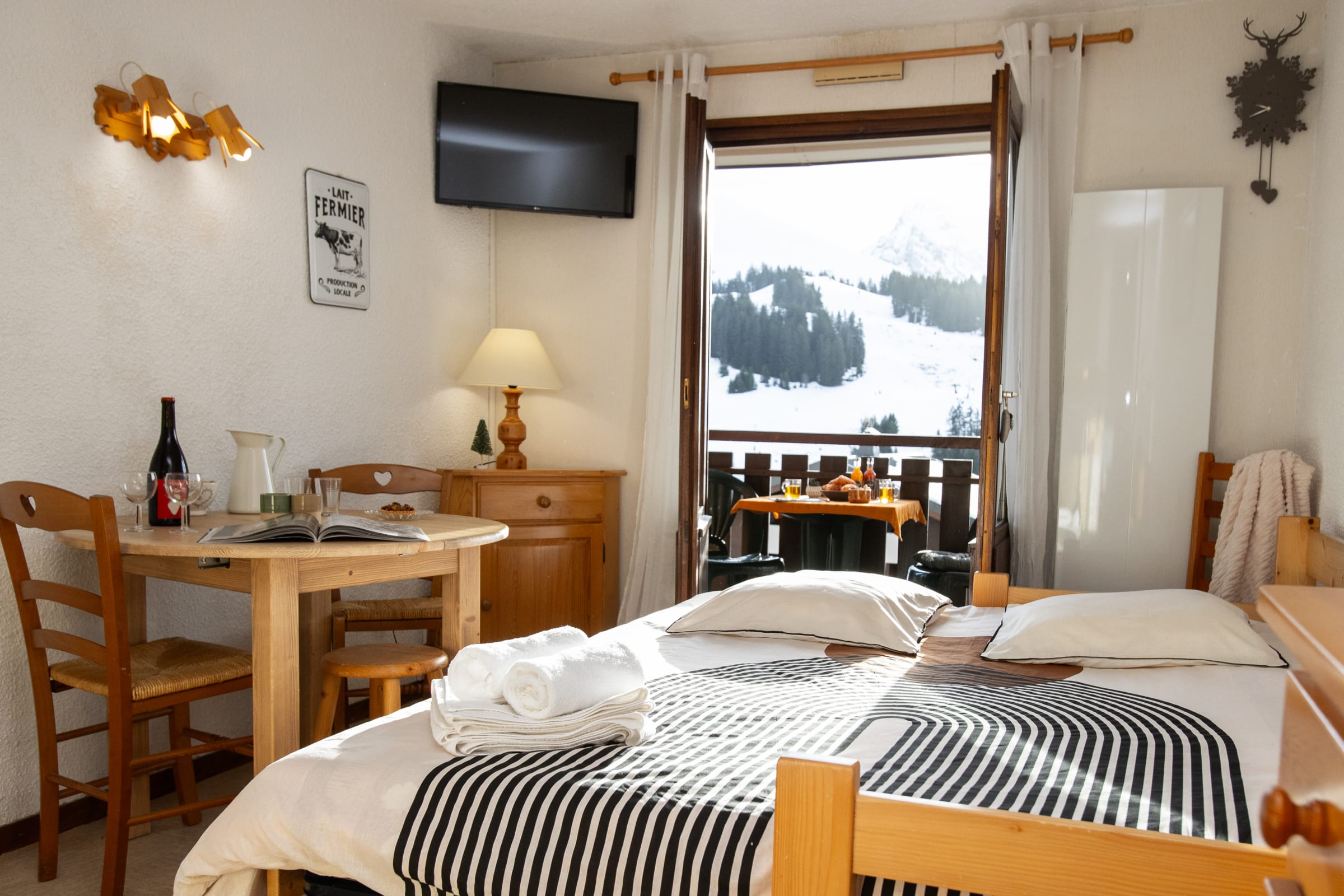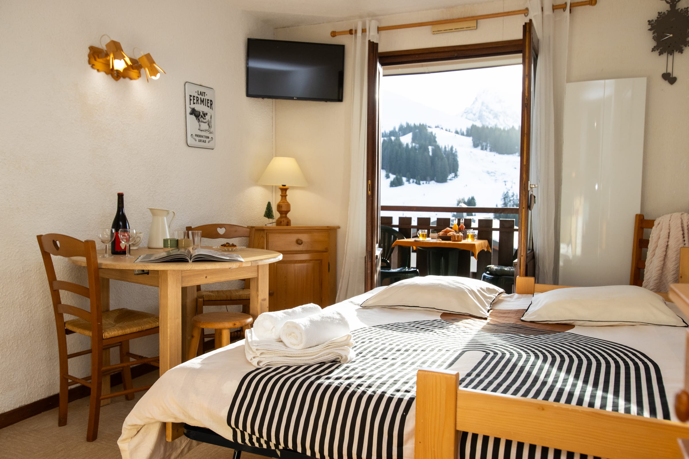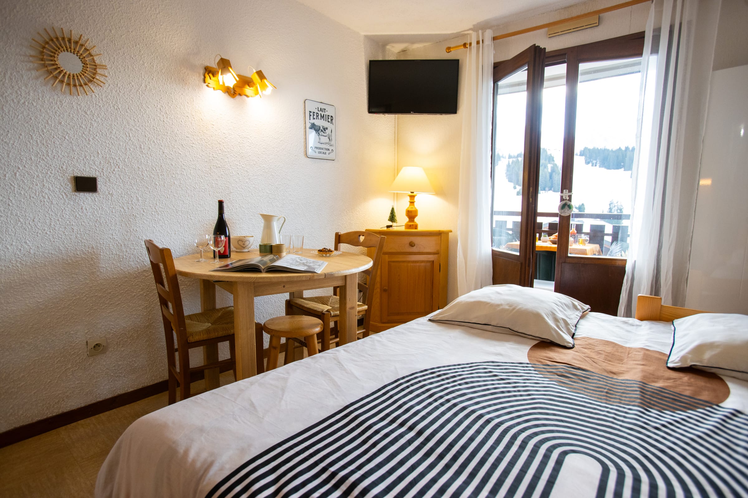 Please note before your arrival: Linen is provided for 1 double bed and 1 single bed; it is possible to rent extra linen and towels from the concierge before your arrival (38 double kits and 25 single kits). Enjoy a peaceful stay in this charming 25 m² apartment, located at Col de la Croix Fry, in the heart of the Aravis mountain range. Almost ski-in/ski-out in winter ( 7 minute walk to the alpine and Nordic slopes), it is also perfectly situated for summer hiking and outdoor activities, at the foot of the Beauregard Plateau, a protected natural area.