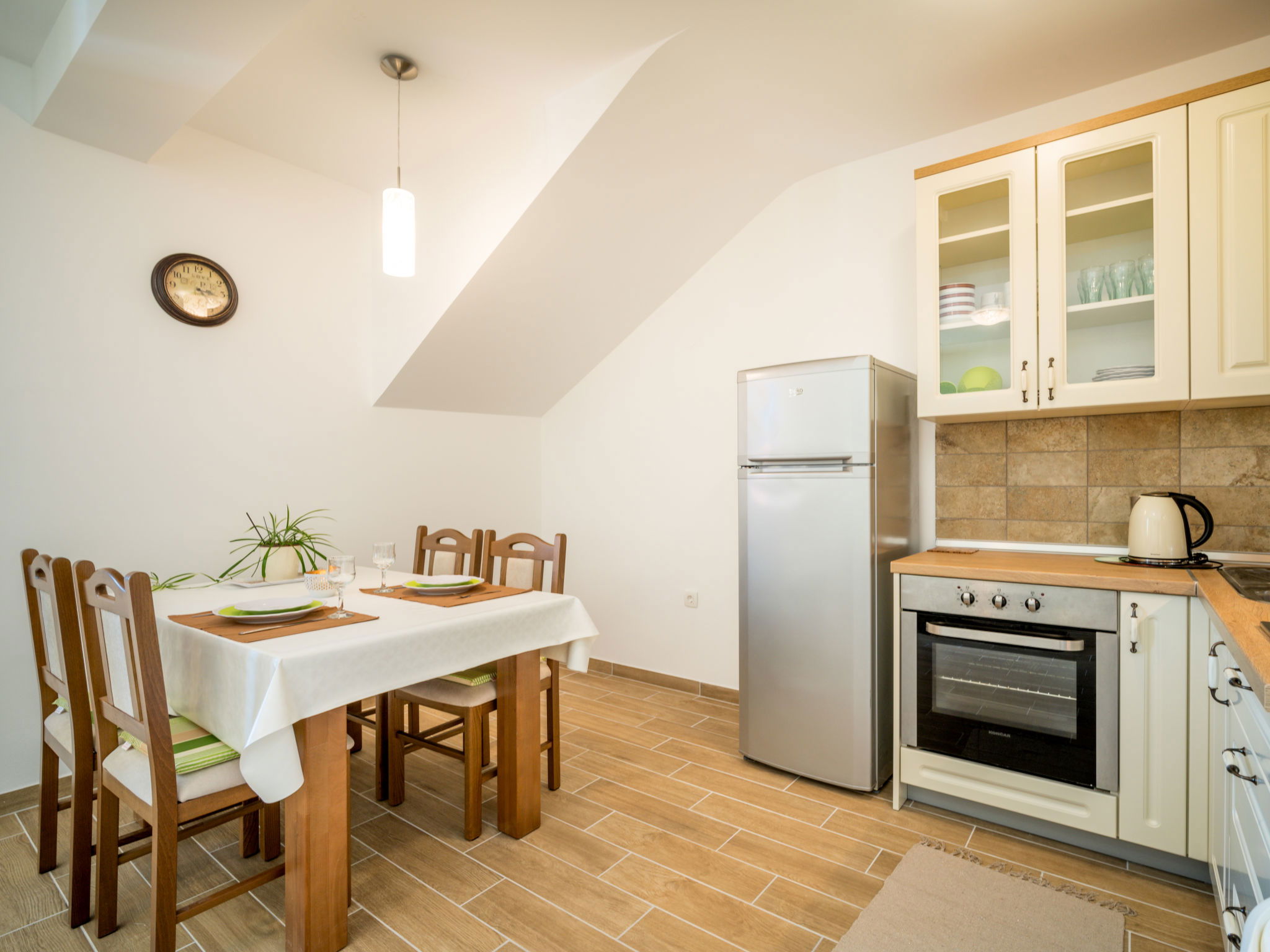 2-room apartment 44 m2 on 1st floor. Living/dining room with 1 double sofabed (150 cm, length 200 cm), satellite TV (flat screen). 1 room with sloping ceilings, ceiling height 113 - 270 cm with 1 french bed (160 cm, length 200 cm). Open kitchen (oven, 2 ceramic glass hob hotplates, freezer). Shower/WC. Heating (extra). Facilities: Internet (WiFi, free). Maximum 1 pet/ dog allowed.