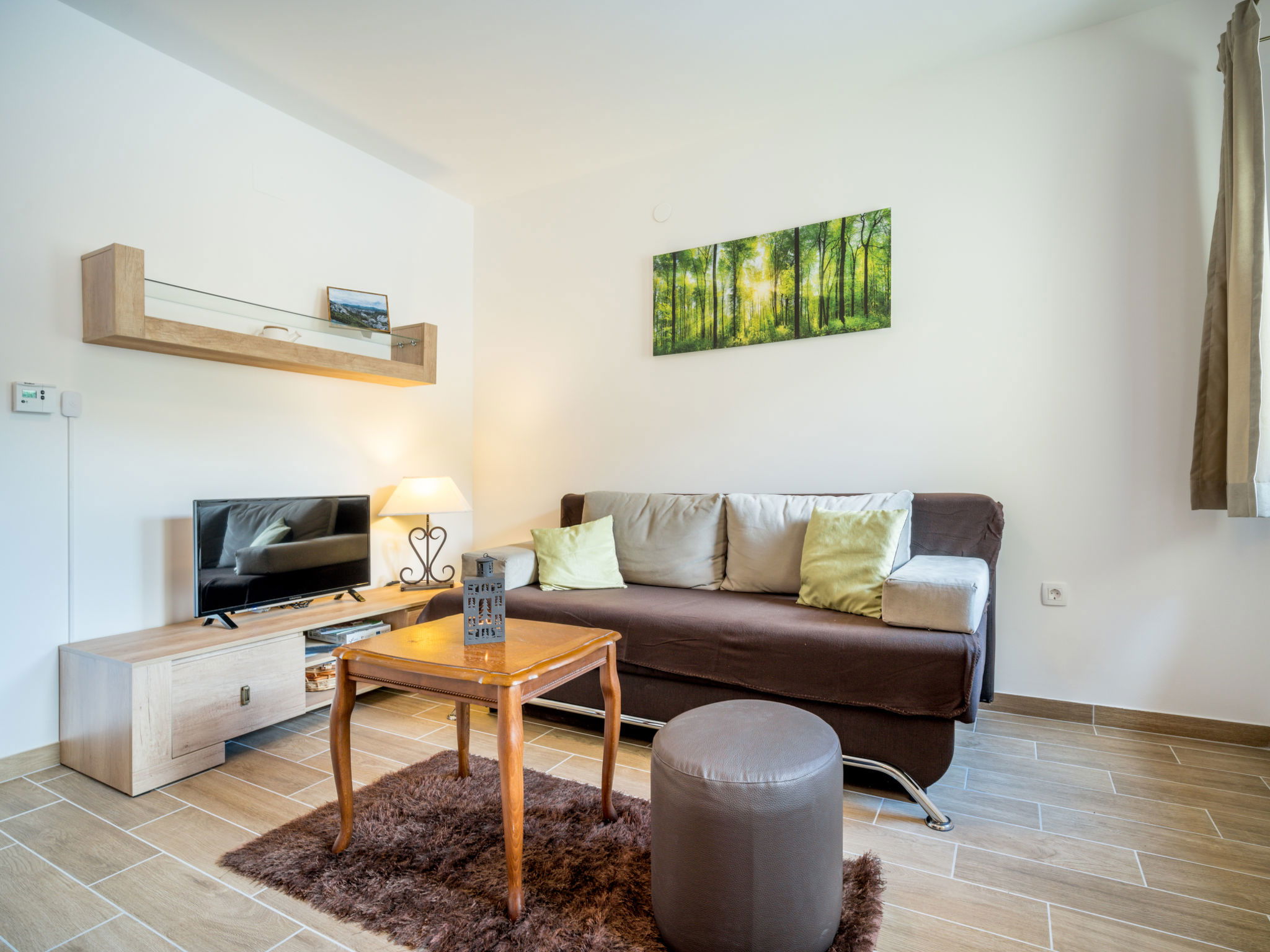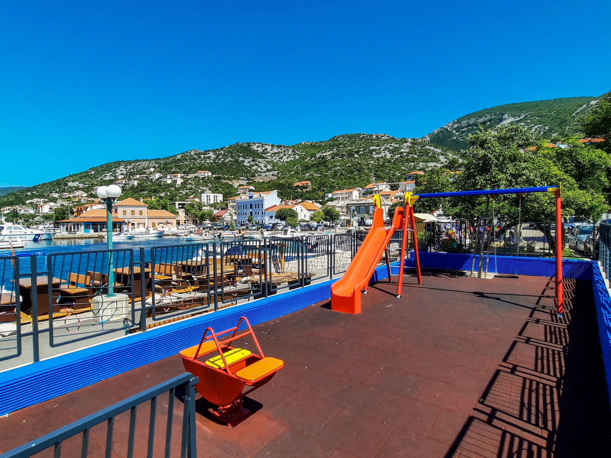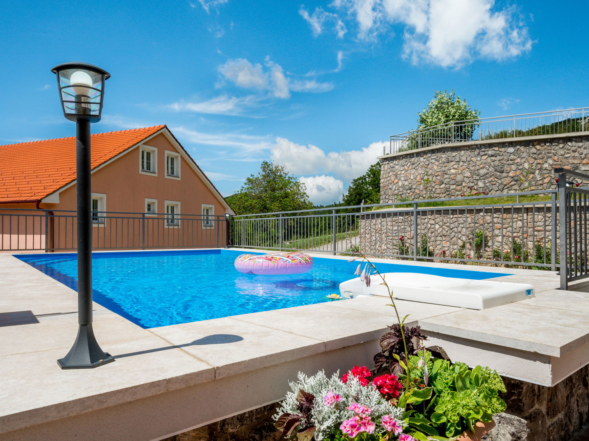 Apartment house "Oltari", 940 m a.s.l.. In the hamlet Oltari 14 km from the centre of Sveti Juraj, in a quiet, sunny, elevated position, 14 km from the sea, in the countryside. For shared use: property 630 m2, swimming pool angular (8 x 4 m, 33 m2, depth 120 - 150 cm, seasonal availability: 01.Jun. - 30.Sep.) with internal staircase. Outdoor shower, table tennis, terrace (30 m2), garden furniture, barbecue. In the house: internet access, table football, washing machine, tumble dryer (for shared use). Parking at the house on the premises. Shop 9 km, restaurant 9 km, bus stop 15.1 km, pebble beach 14 km, concrete beach 14 km. For shared use, on the ground floor: living/dining room 66 m2 with open-hearth fireplace and satellite TV (flat screen). 2 sep. WC's.
