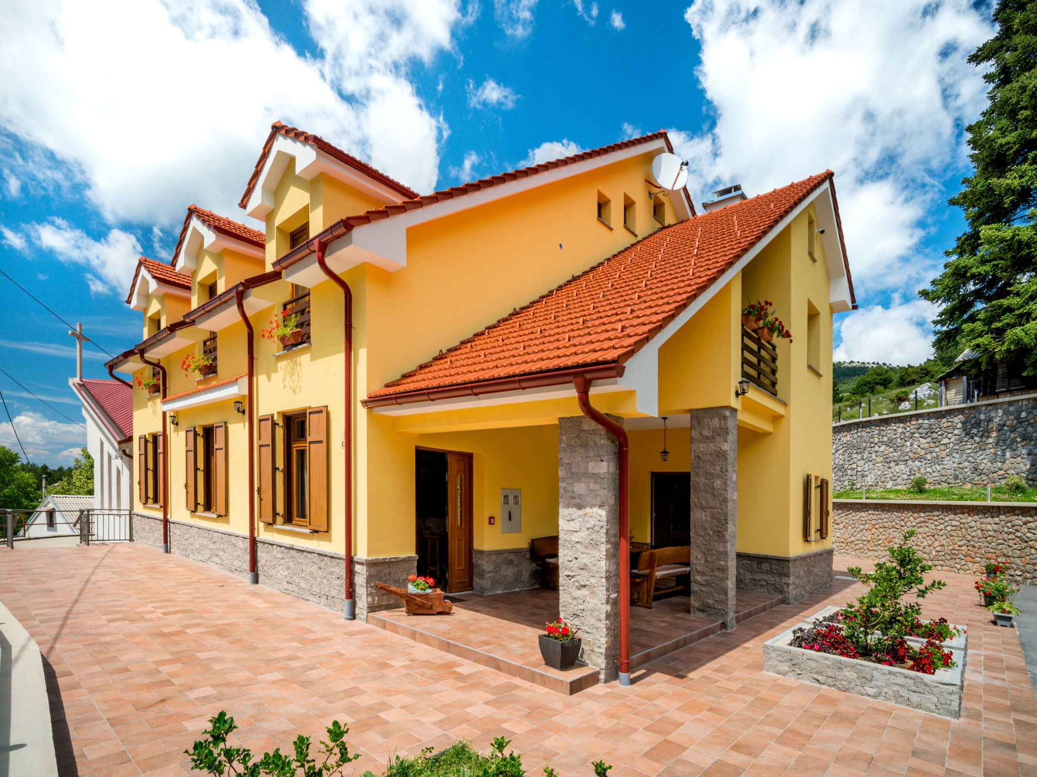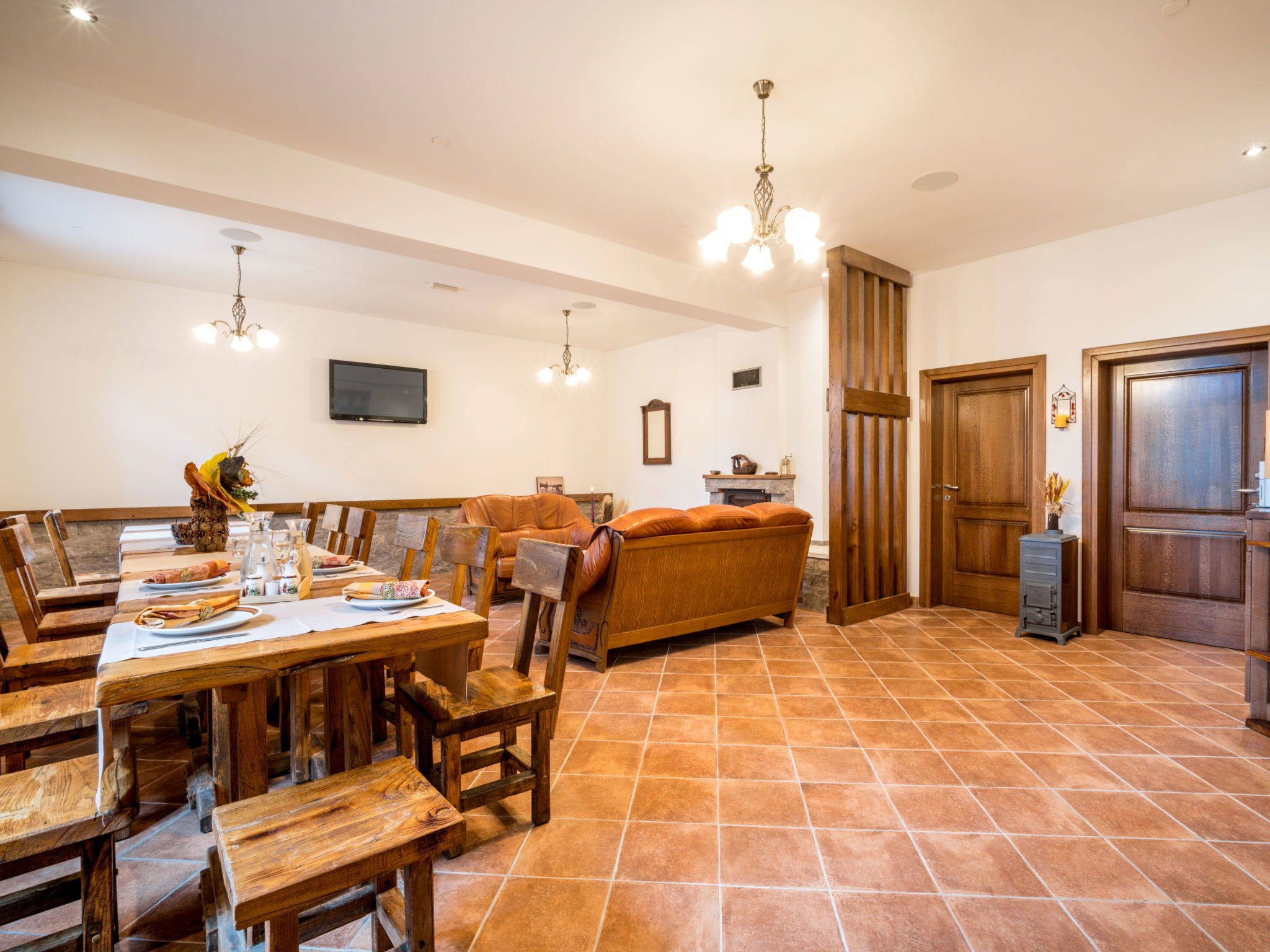 Apartment house "Oltari", 940 m a.s.l.. In the hamlet Oltari 14 km from the centre of Sveti Juraj, in a quiet, sunny, elevated position, 14 km from the sea, in the countryside. For shared use: property 630 m2, swimming pool angular (8 x 4 m, 33 m2, depth 120 - 150 cm, seasonal availability: 01.Jun. - 30.Sep.) with internal staircase. Outdoor shower, table tennis, terrace (30 m2), garden furniture, barbecue. In the house: internet access, table football, washing machine, tumble dryer (for shared use). Parking at the house on the premises. Shop 9 km, restaurant 9 km, bus stop 15.1 km, pebble beach 14 km, concrete beach 14 km. For shared use, on the ground floor: living/dining room 66 m2 with open-hearth fireplace and satellite TV (flat screen). 2 sep. WC's.
