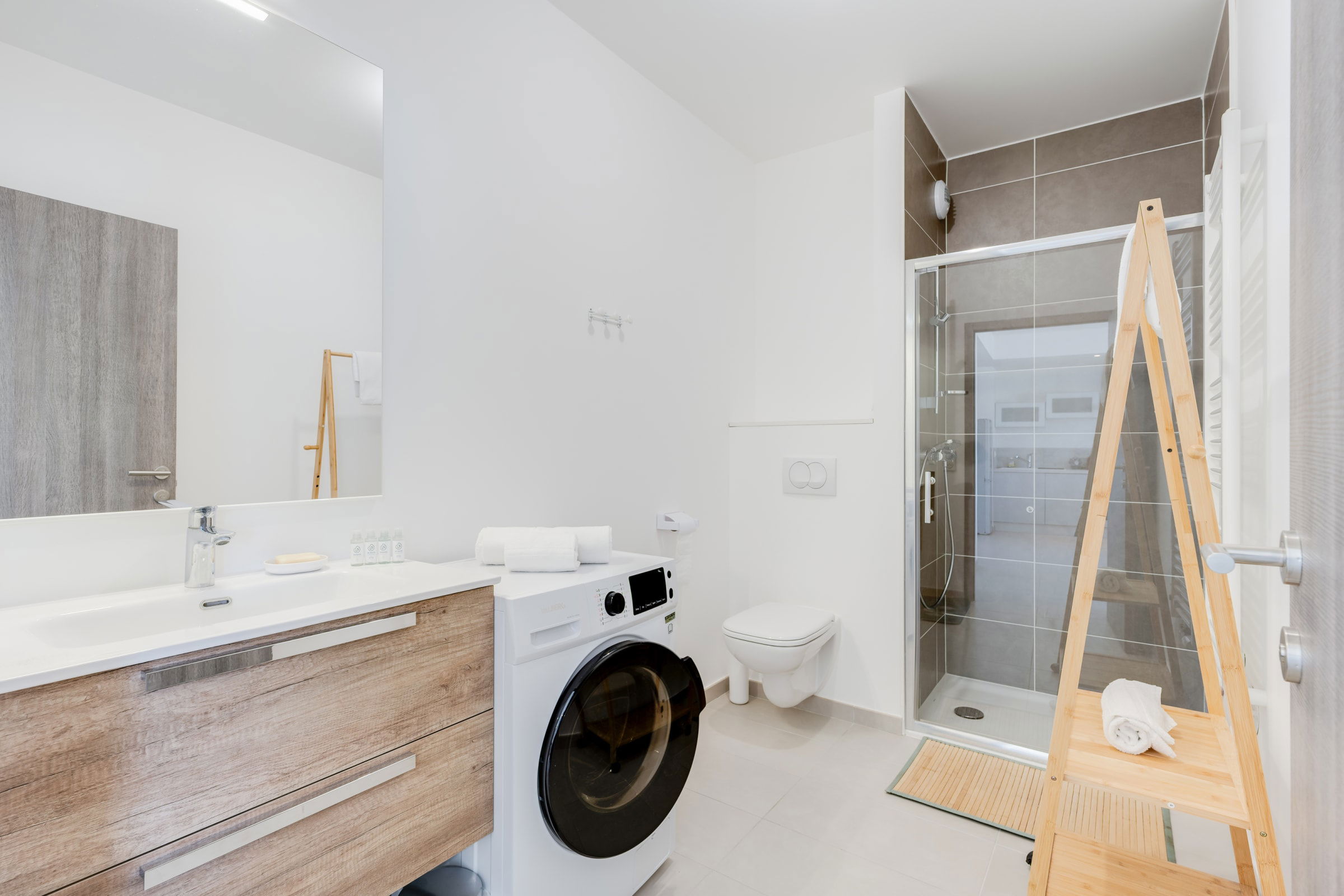 The apartment is equipped with a TV, wifi, and all the necessary equipment for a good stay such as a coffee machine, washing machine, dishwasher...