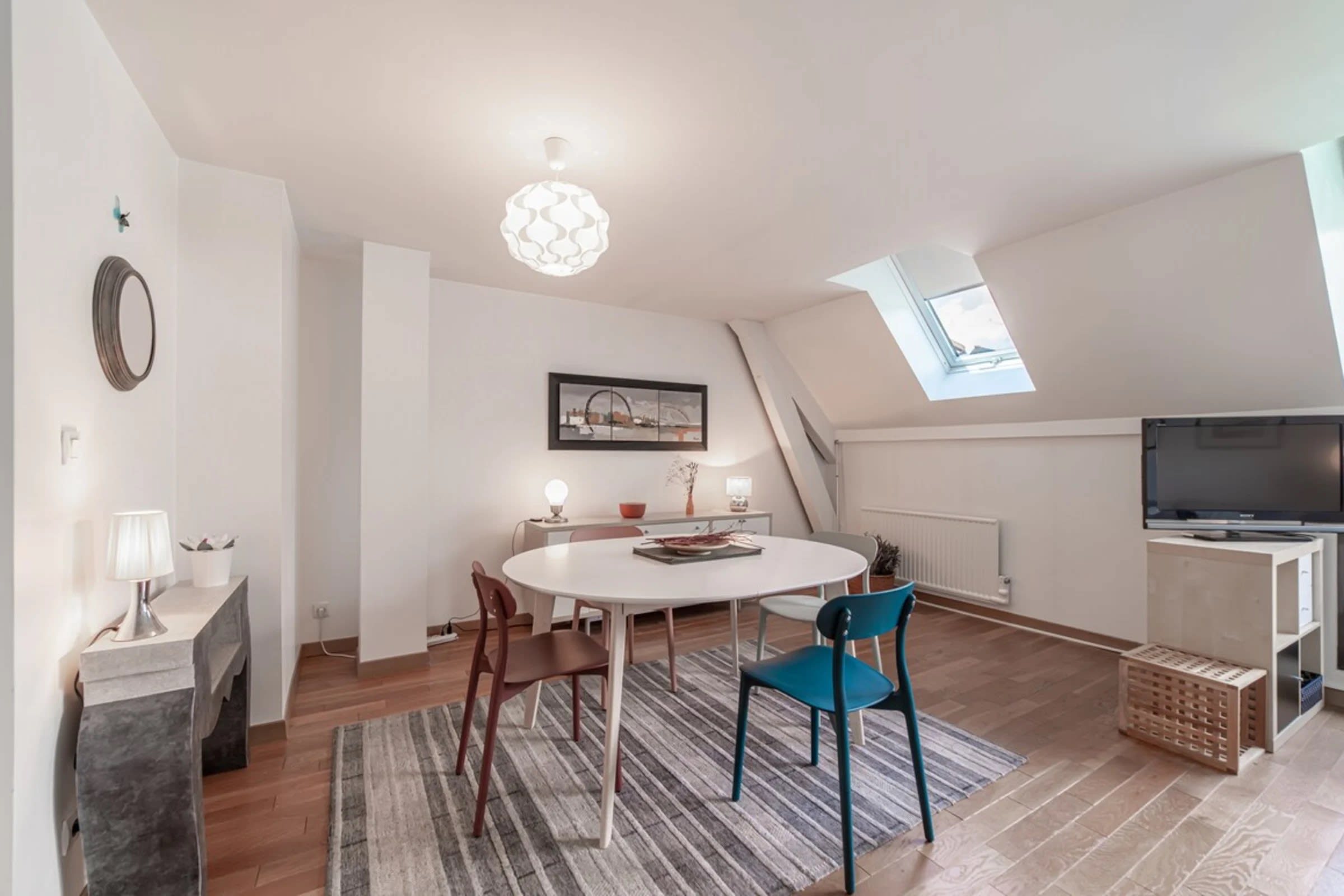 Cet appartement est un duplex, au niveau zéro vous trouverez une grand salon/séjour avec balcon sur le lac, une vaste cuisine aménagée (four, machines à café Nespresso ET filtre, grille-pain, bouilloire...) et des toilettes.