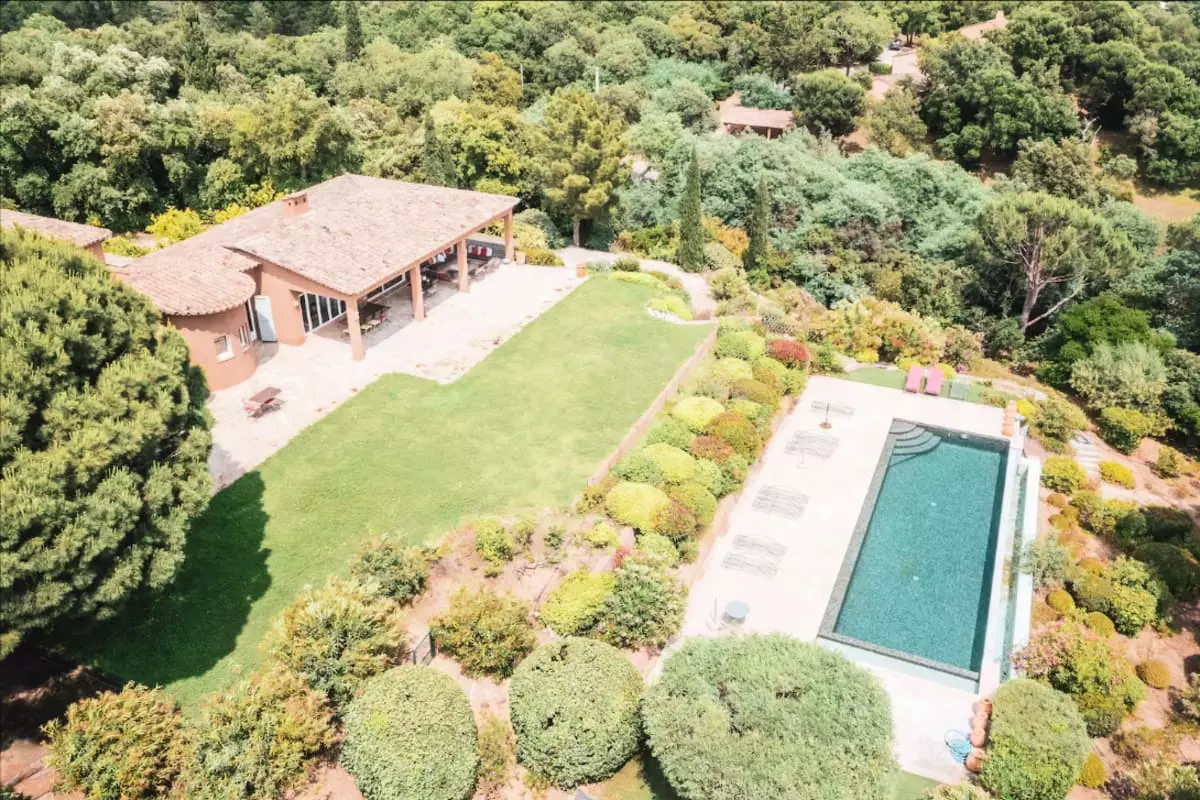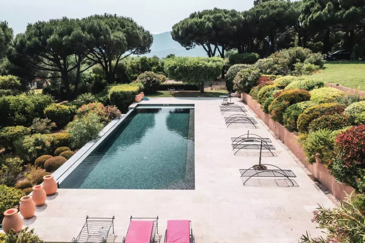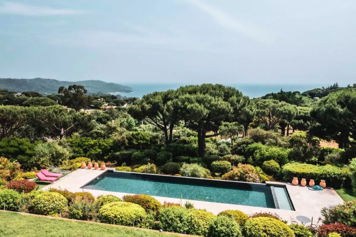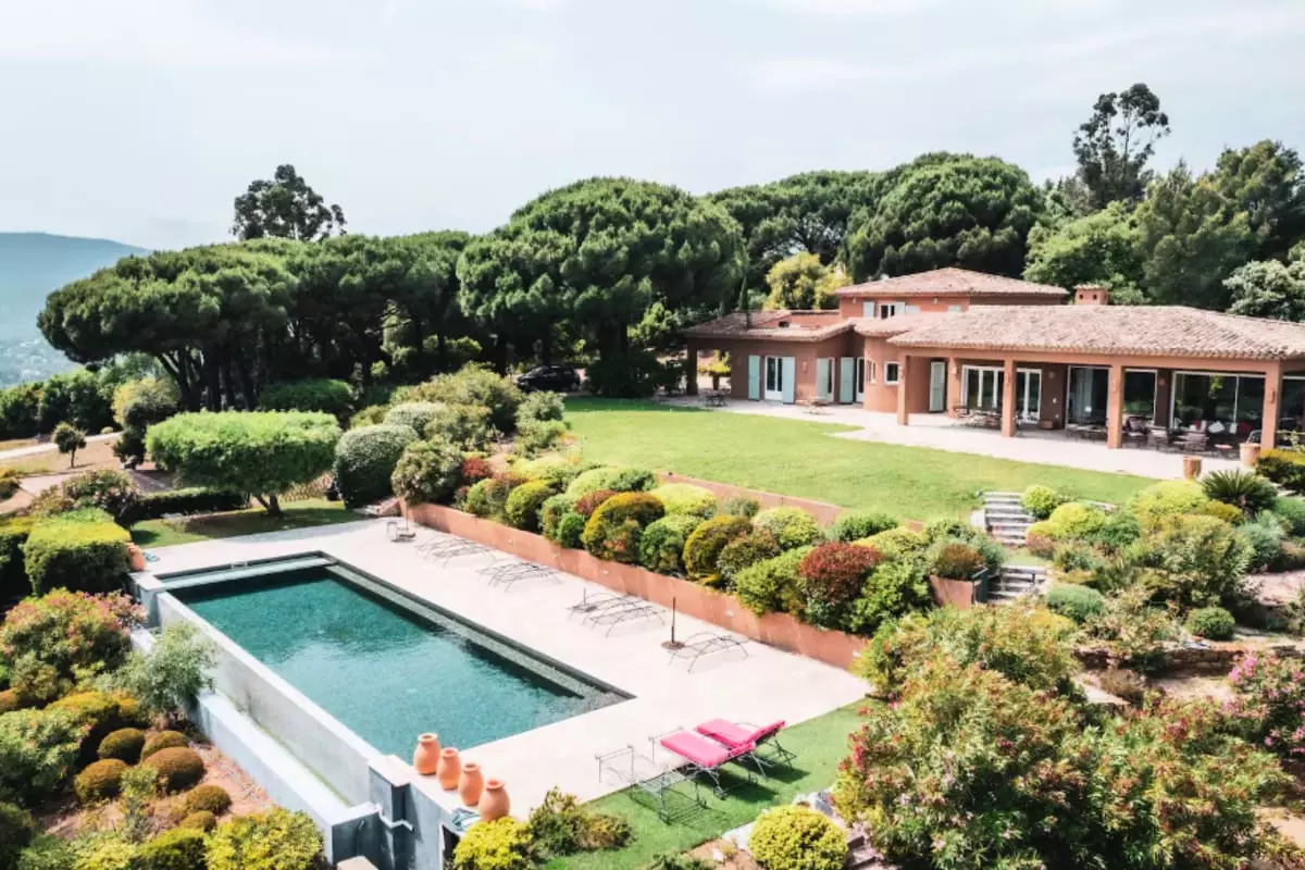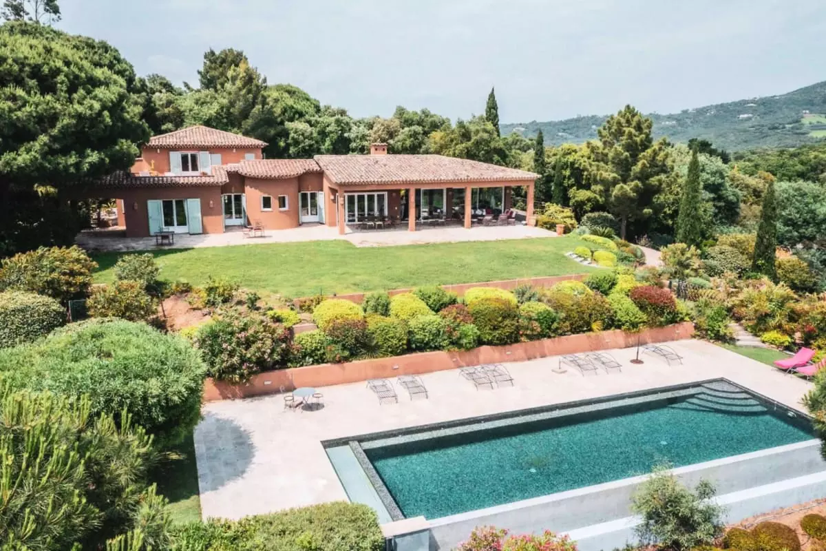 The villa is located near iconic seaside resorts of the French Riviera such as Saint-Tropez and Ramatuelle, without being directly next door.