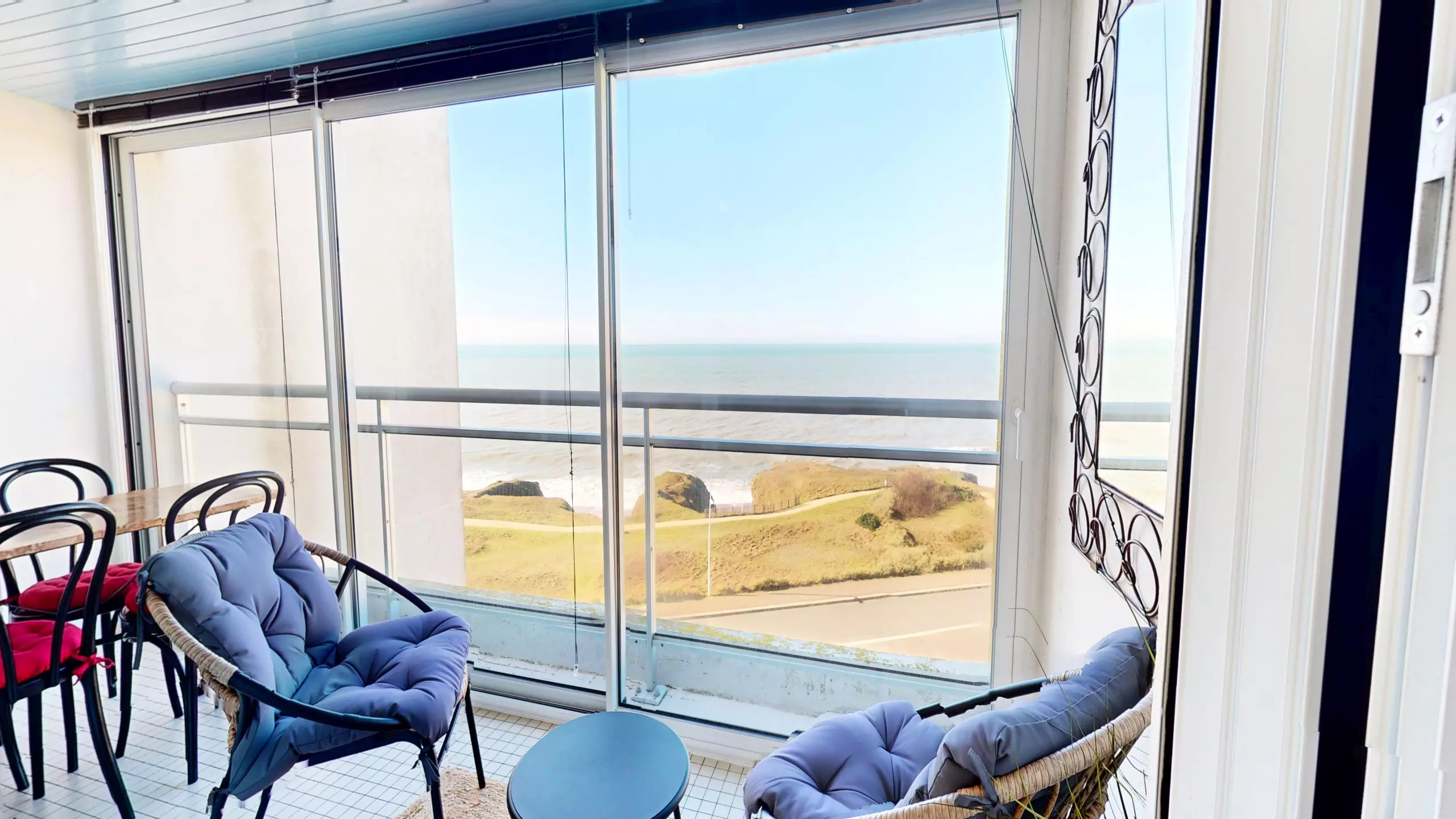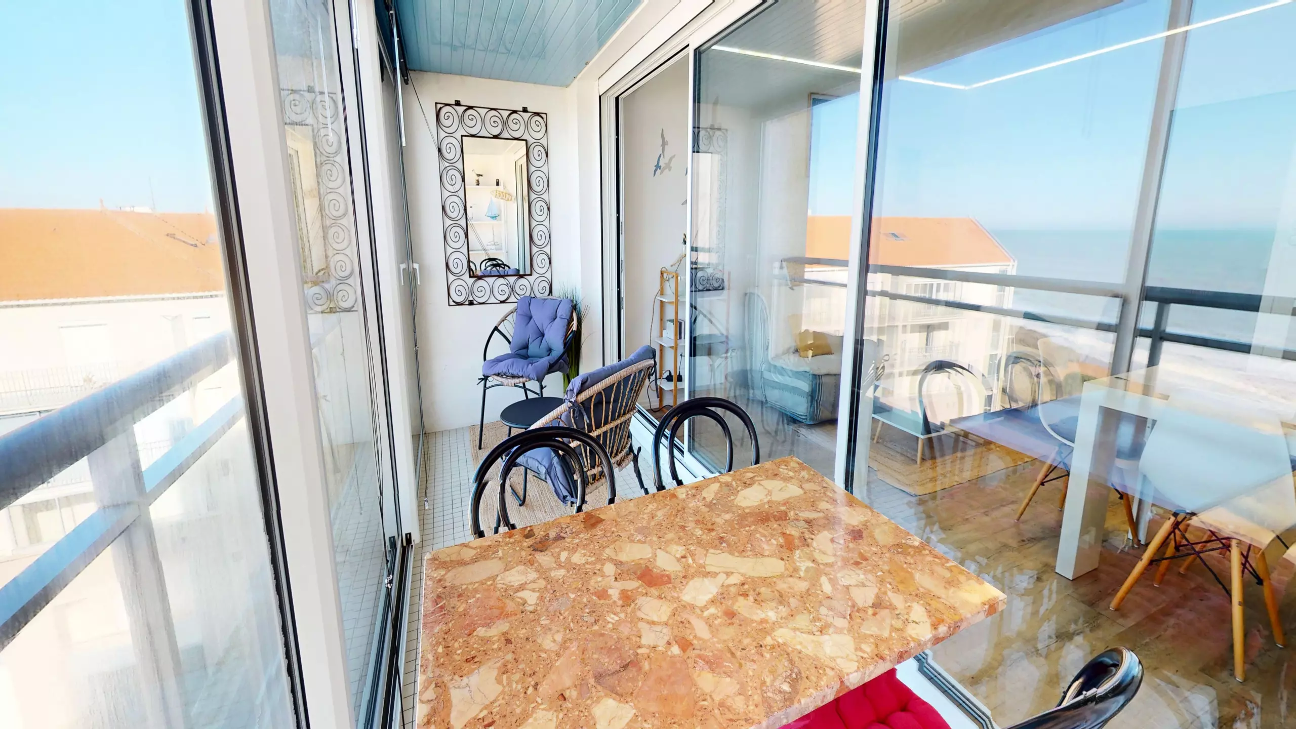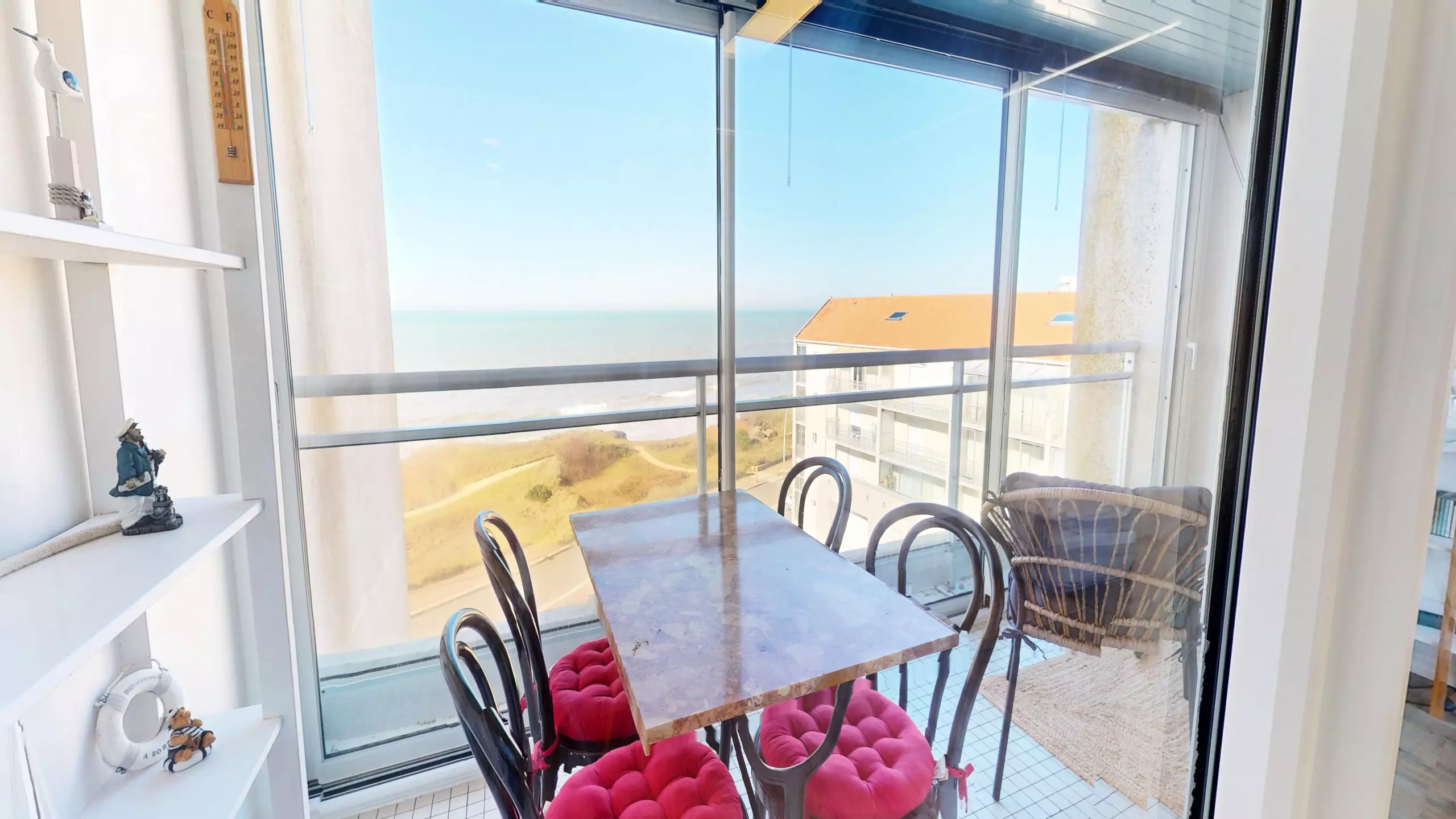 The highlight of the property remains the superb loggia. Furnished with a table for 4 people and garden furniture, it is the perfect place to admire the panoramic view and breathe in the salty air.