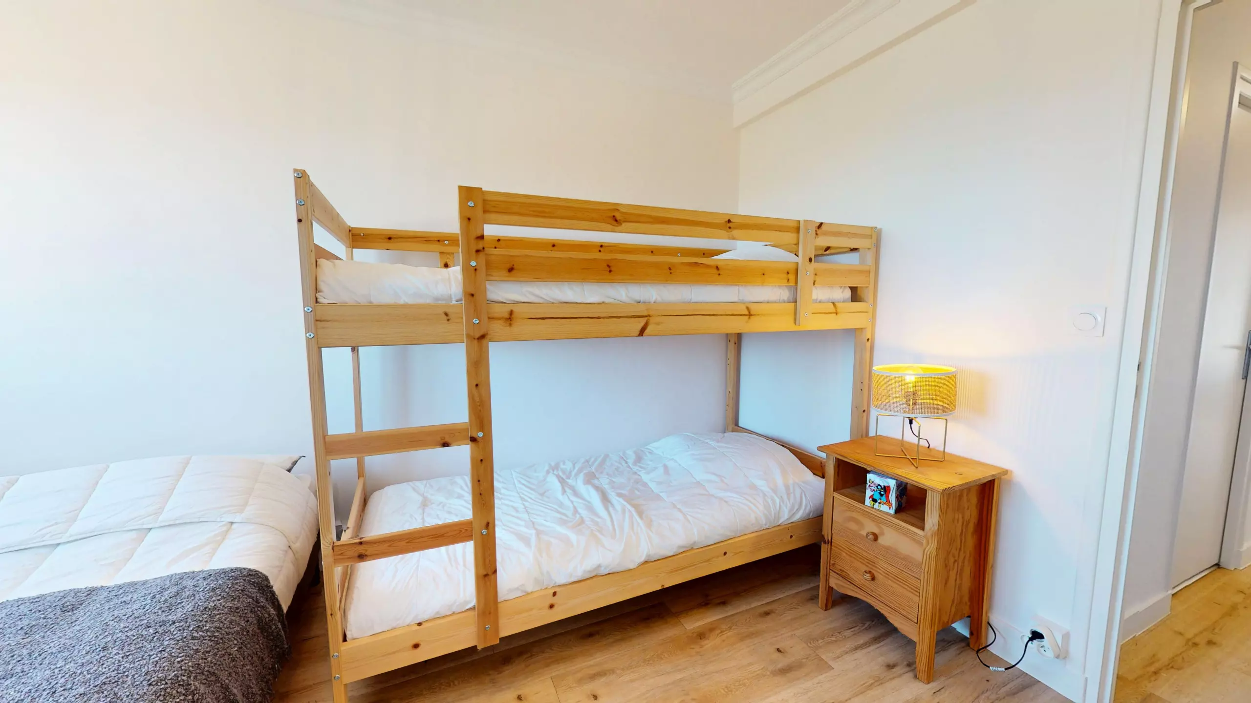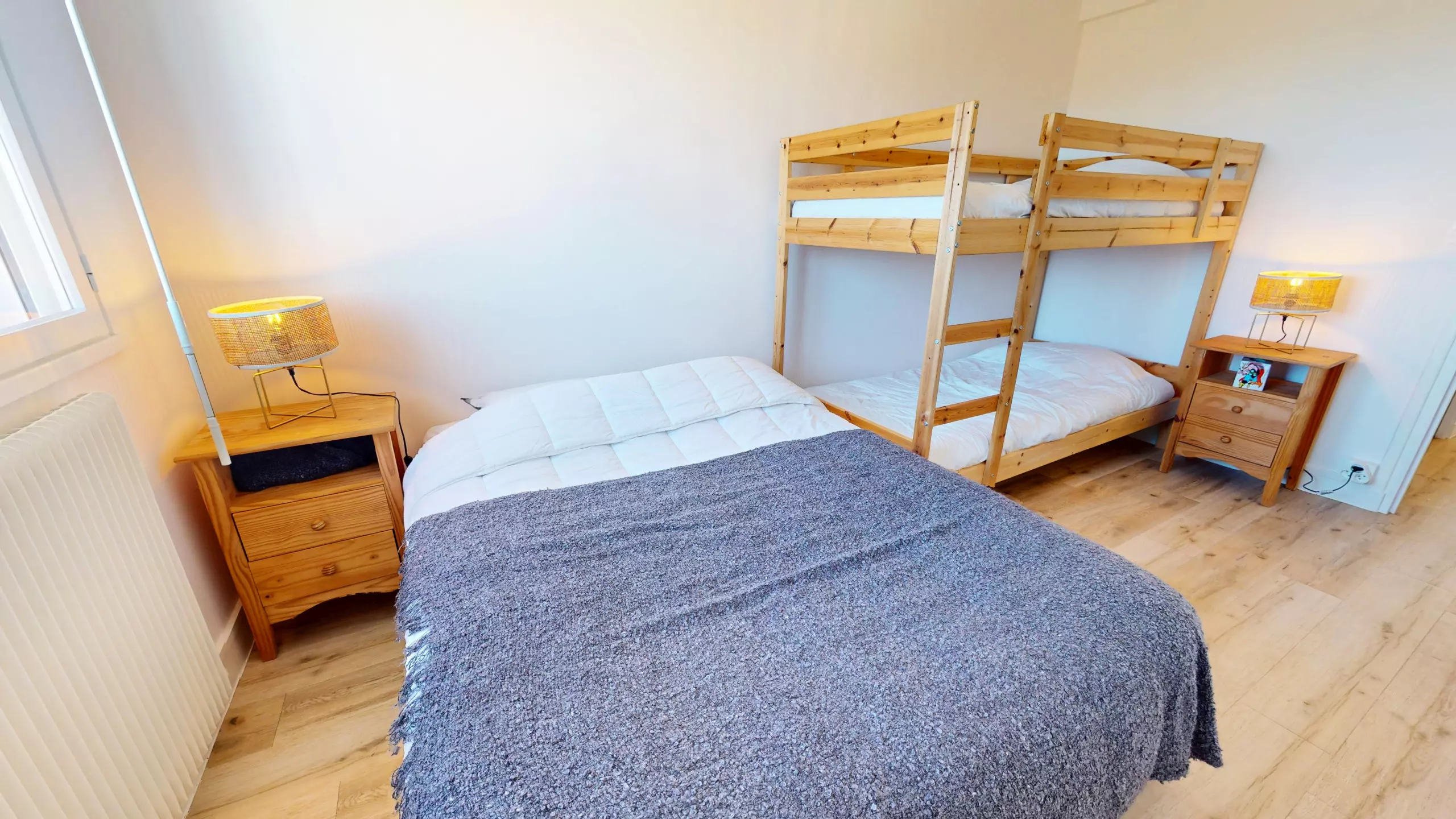Bedroom 2: One double bed (140x190) and one bunk bed (two single beds 90x200).