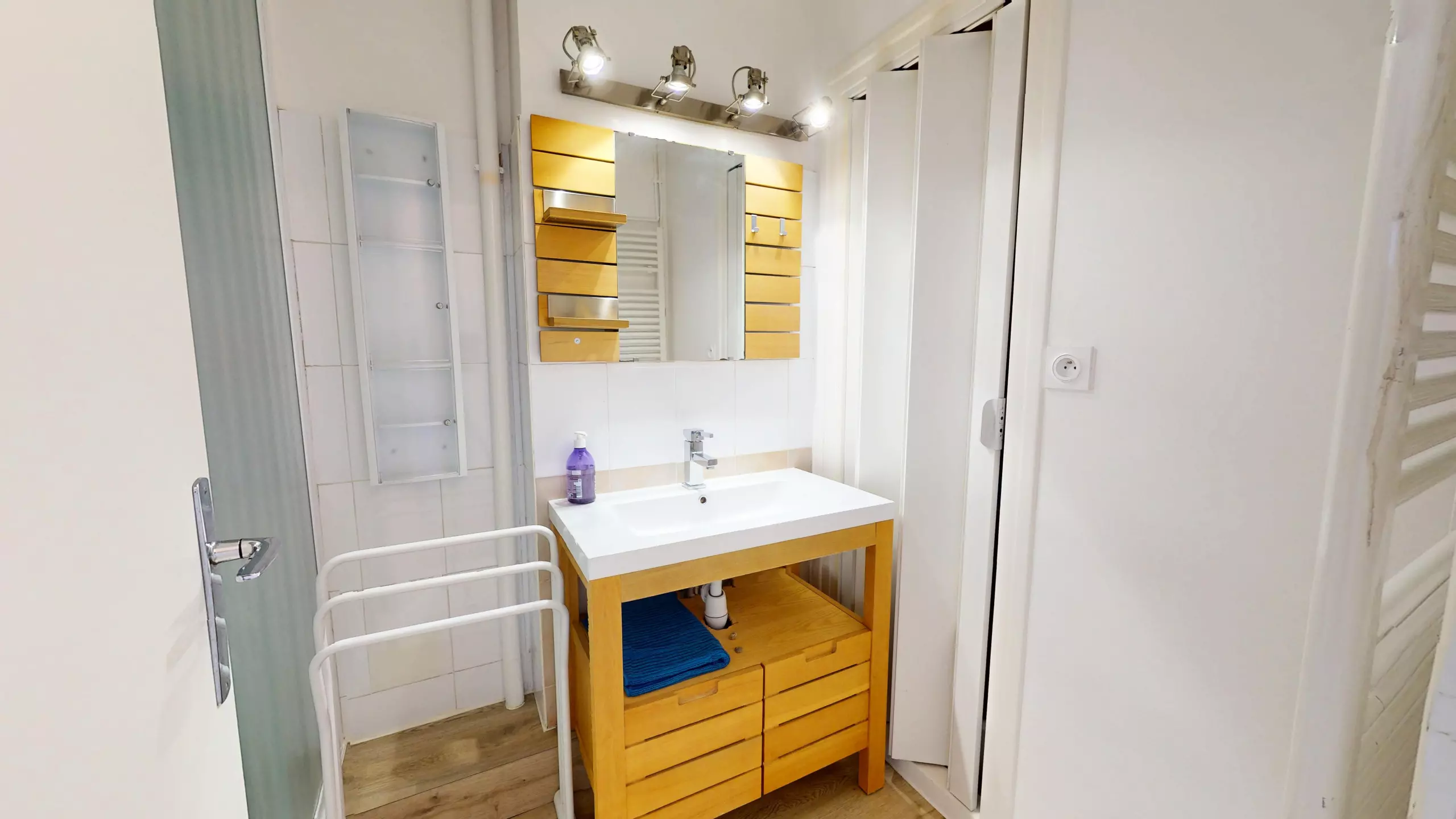 Bathroom & WC: A cozy bathroom with a large shower. The WC is separate.