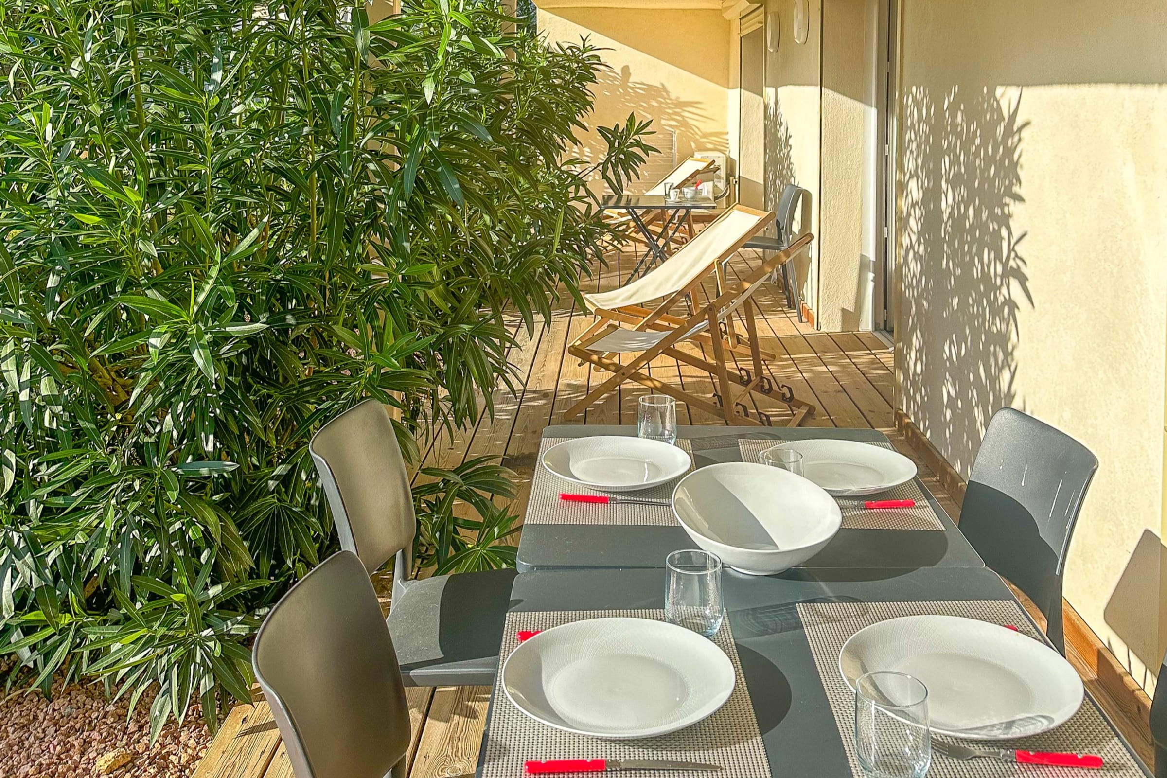 Terrace of 24 m2 with garden furniture (table, chairs and deckchairs)