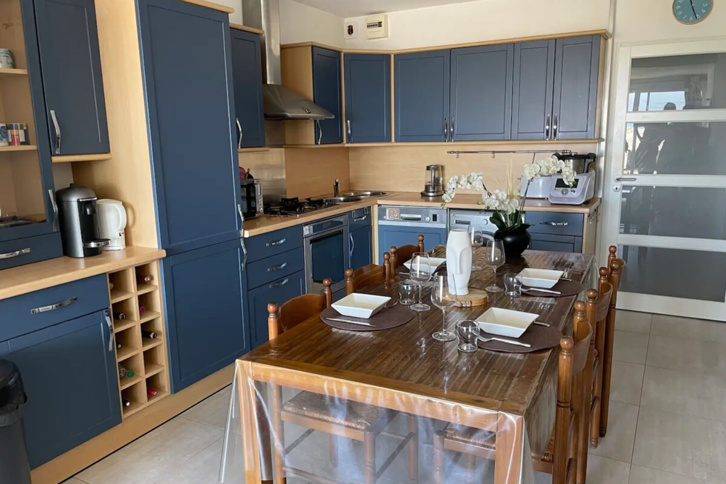 • A large air-conditioned and very bright living room, overlooking the outdoor space. The air-conditioned room includes a living room with a sofa bed (140x190cm) and an open kitchen, fully equipped: dishwasher, washing machine, food processor, kettle, toaster, Nespresso coffee machine, 4-burner hob, oven, fridge/freezer combination, microwave ... and a table for dining that can accommodate 6 people.